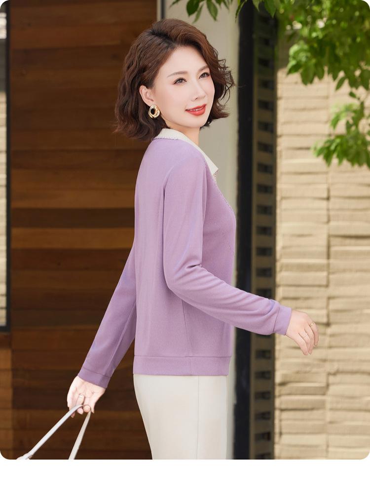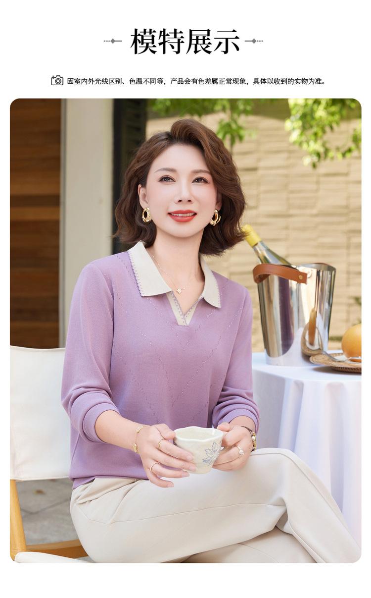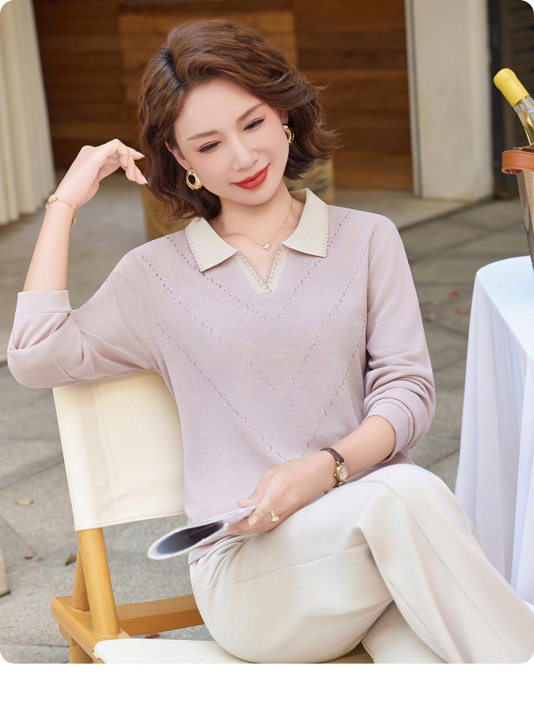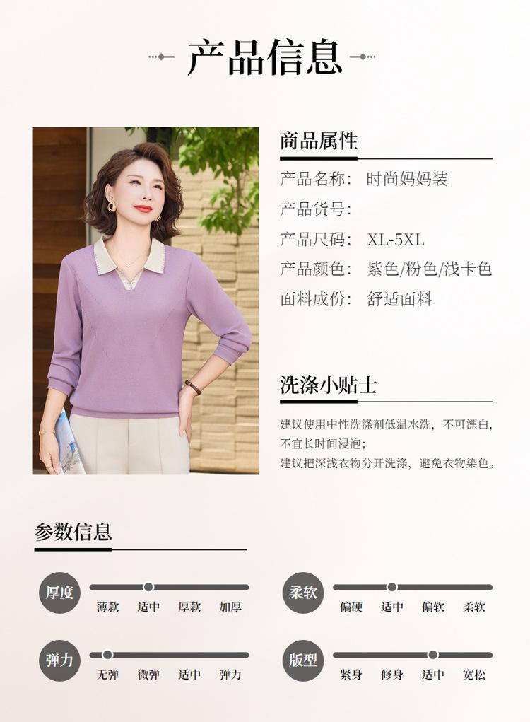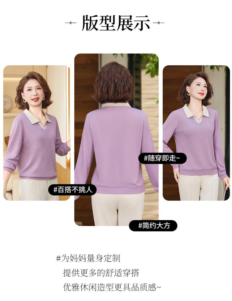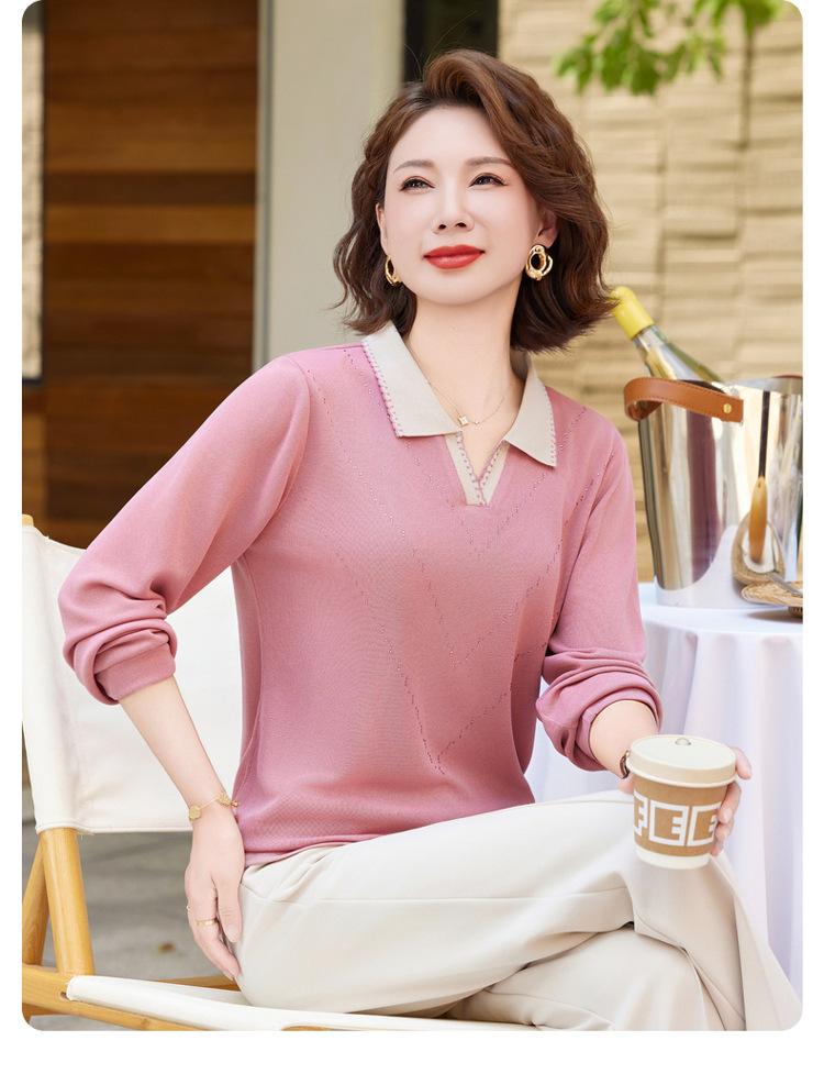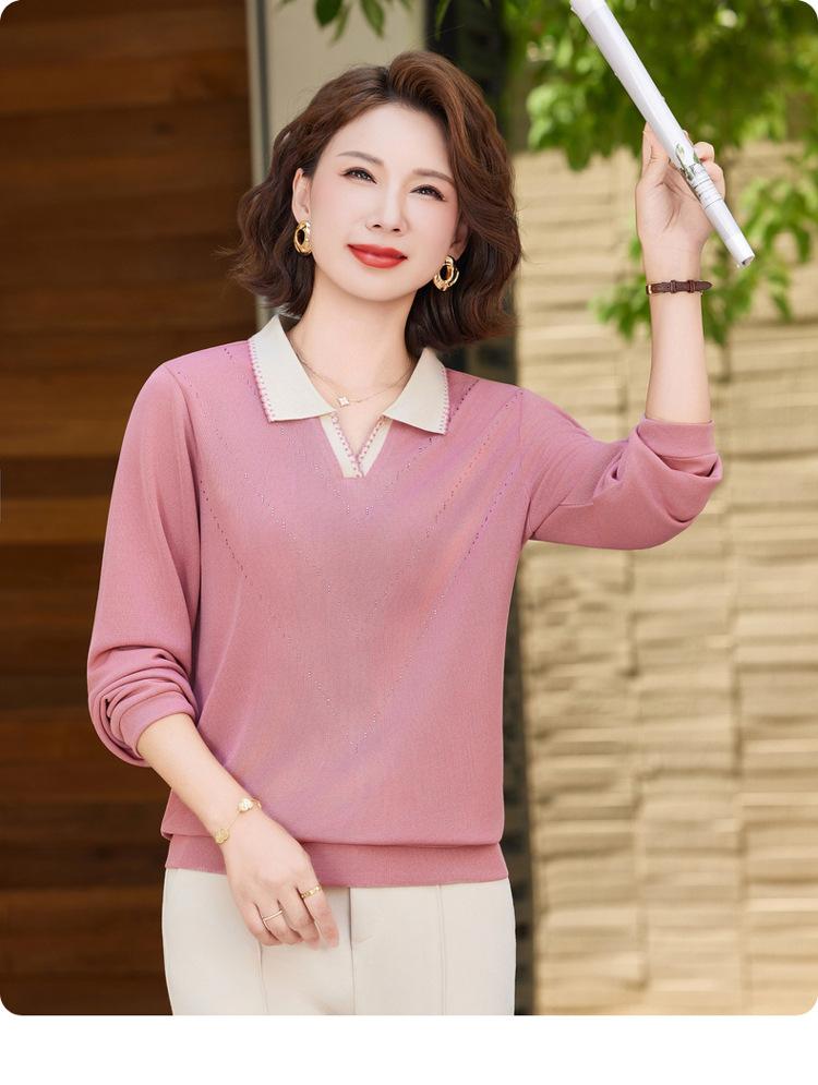 Otoño Ropa Nueva para Madres Manga Larga Cuello Vuelto Top de Punto Estilo Extranjero Talla Grande Ropa para Mujeres de Mediana Edad y Mayores Camiseta Base