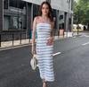 Vestido ajustado sin tirantes a rayas europeo y americano transfronterizo Playa Bohemio Casual Falda ajustada de verano para mujer