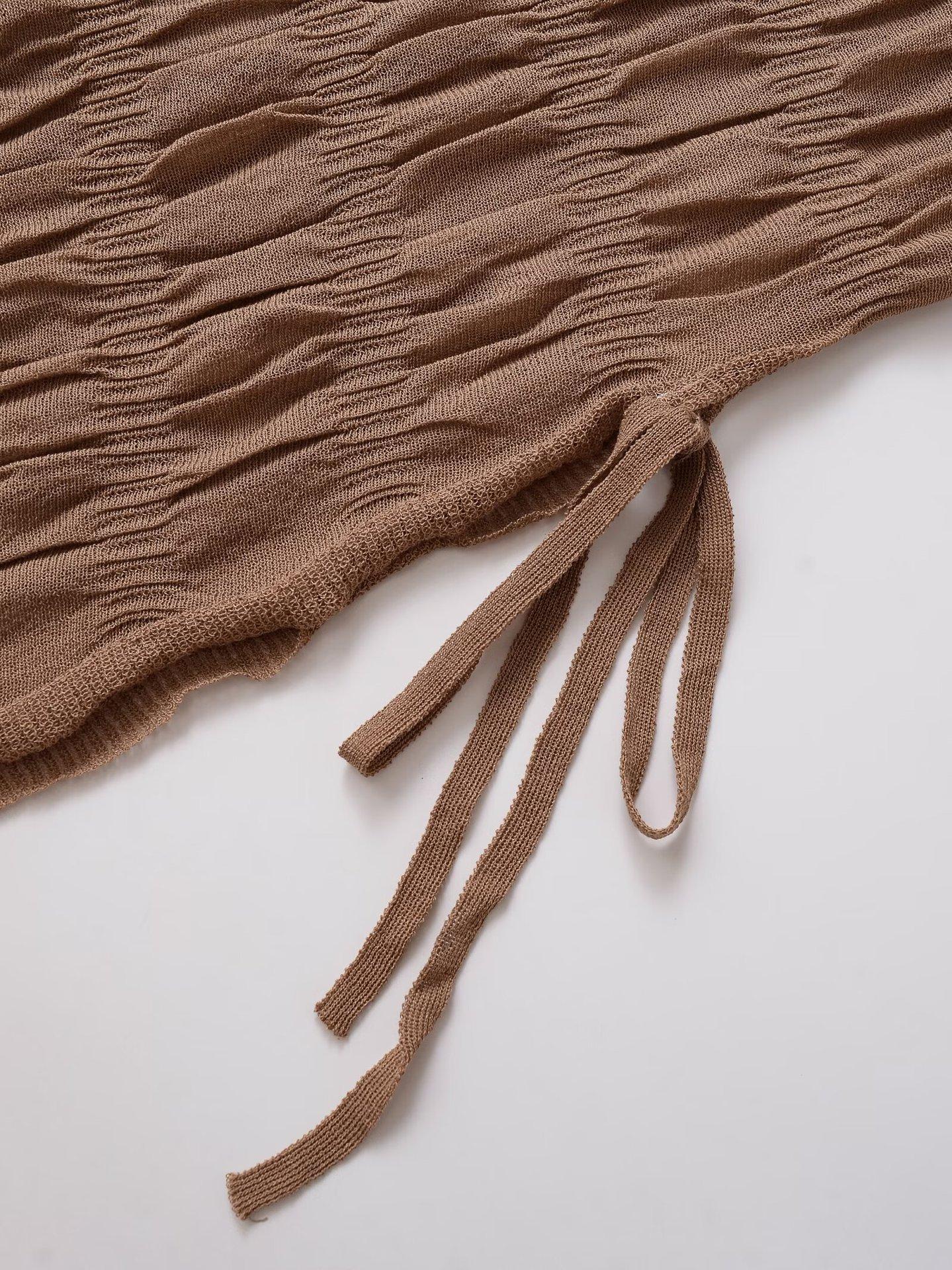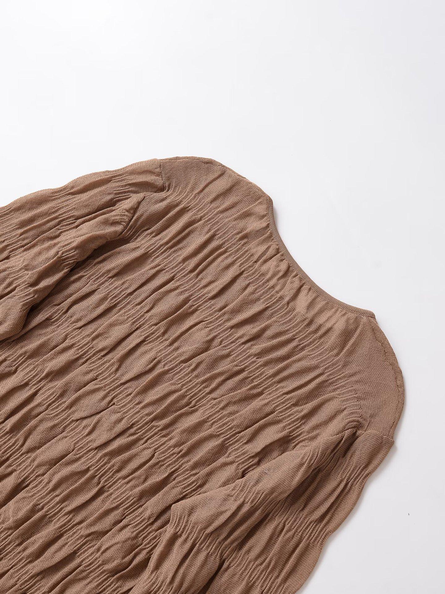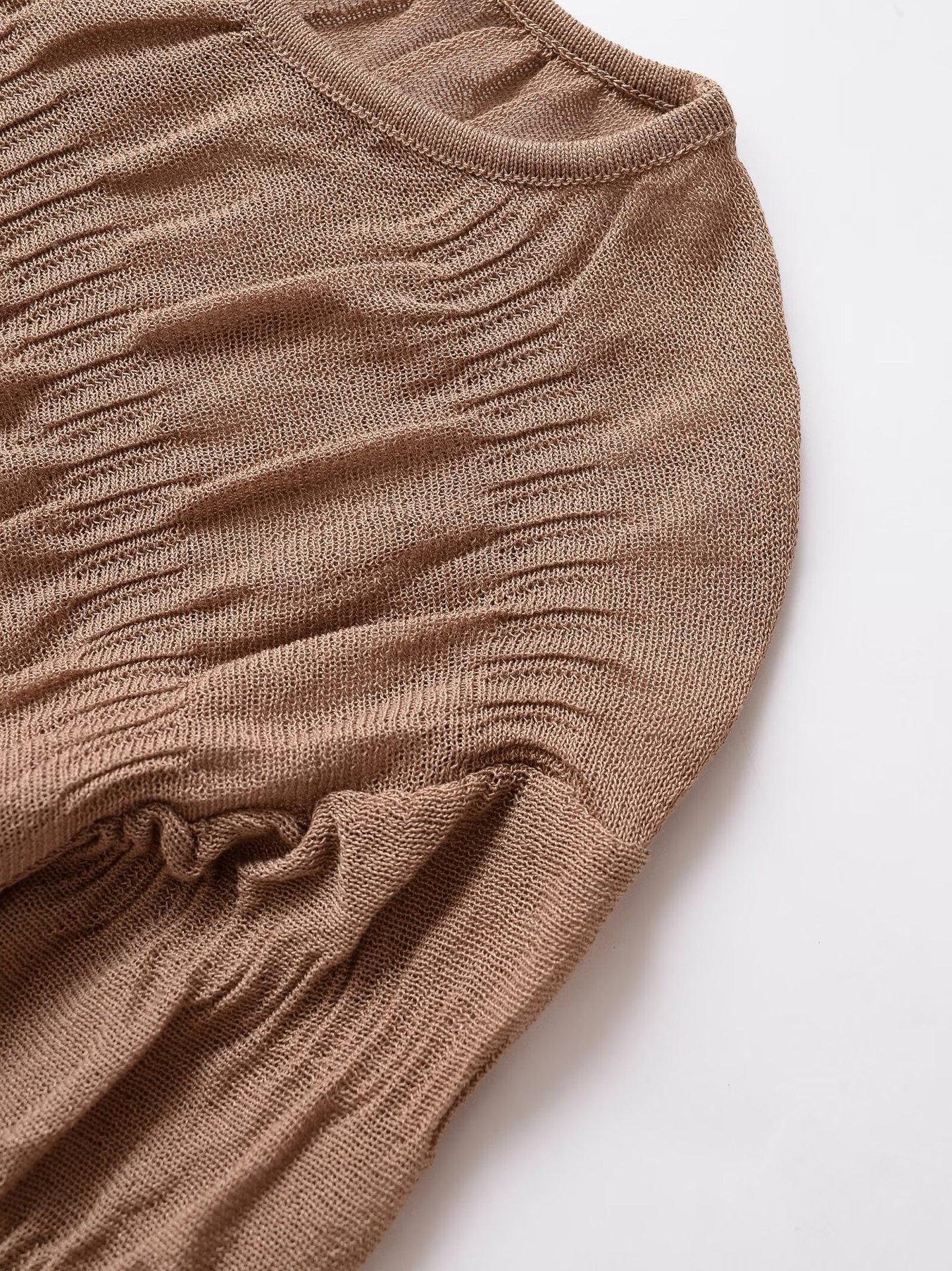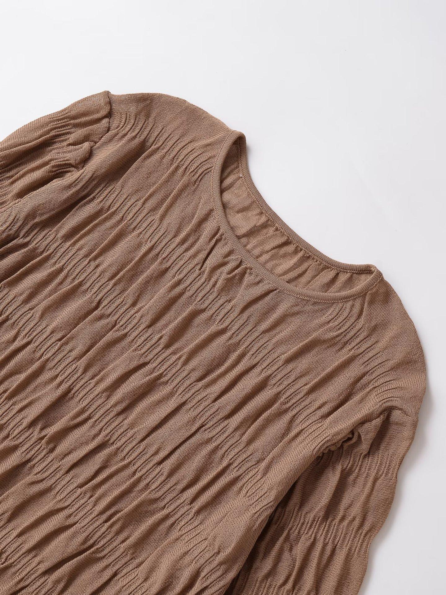 Estilo Caliente Transfronterizo AliExpress Moda Europea y Americana Casual con Cordones Fruncido Cuello Redondo Manga Larga Tejido