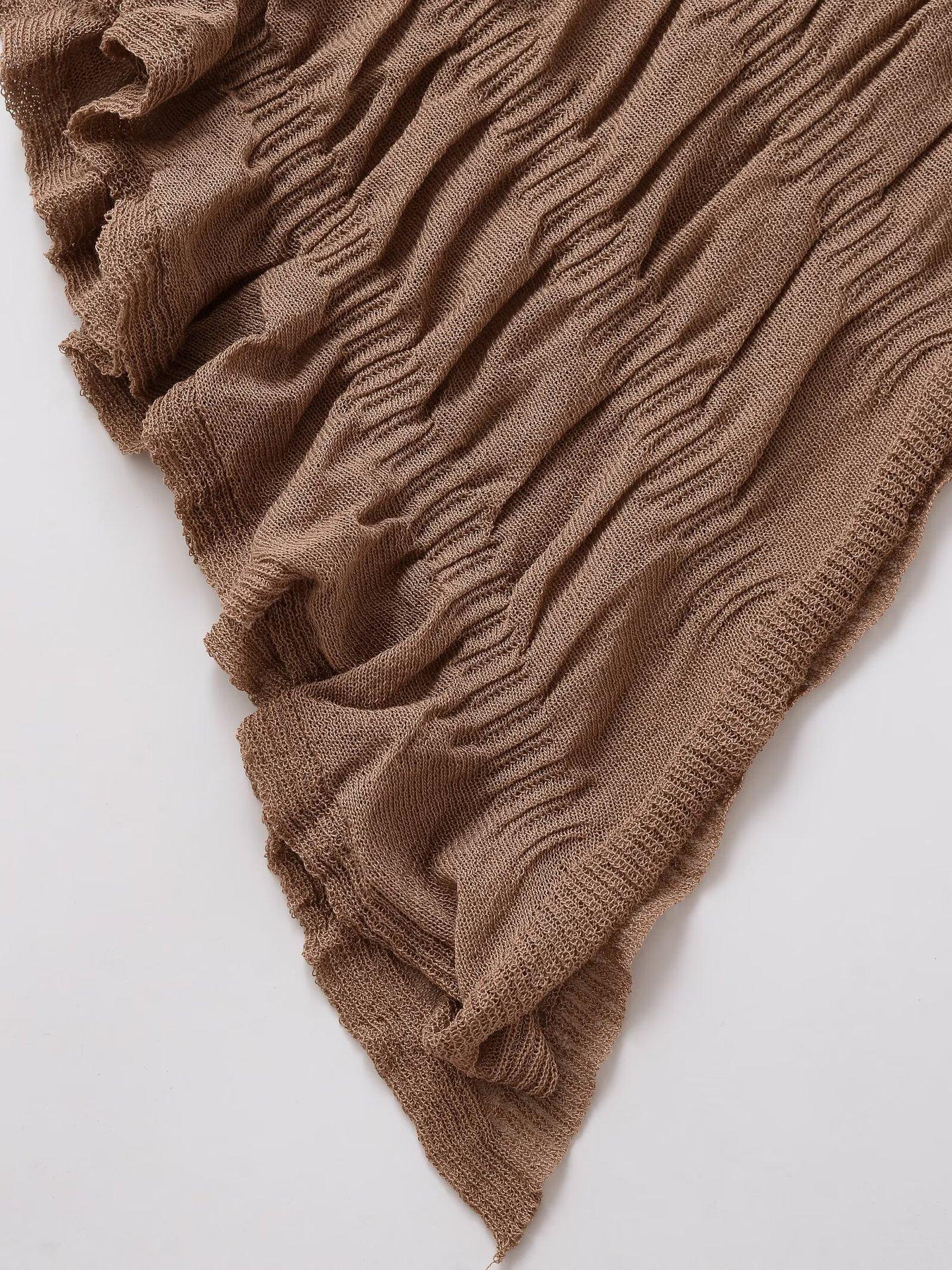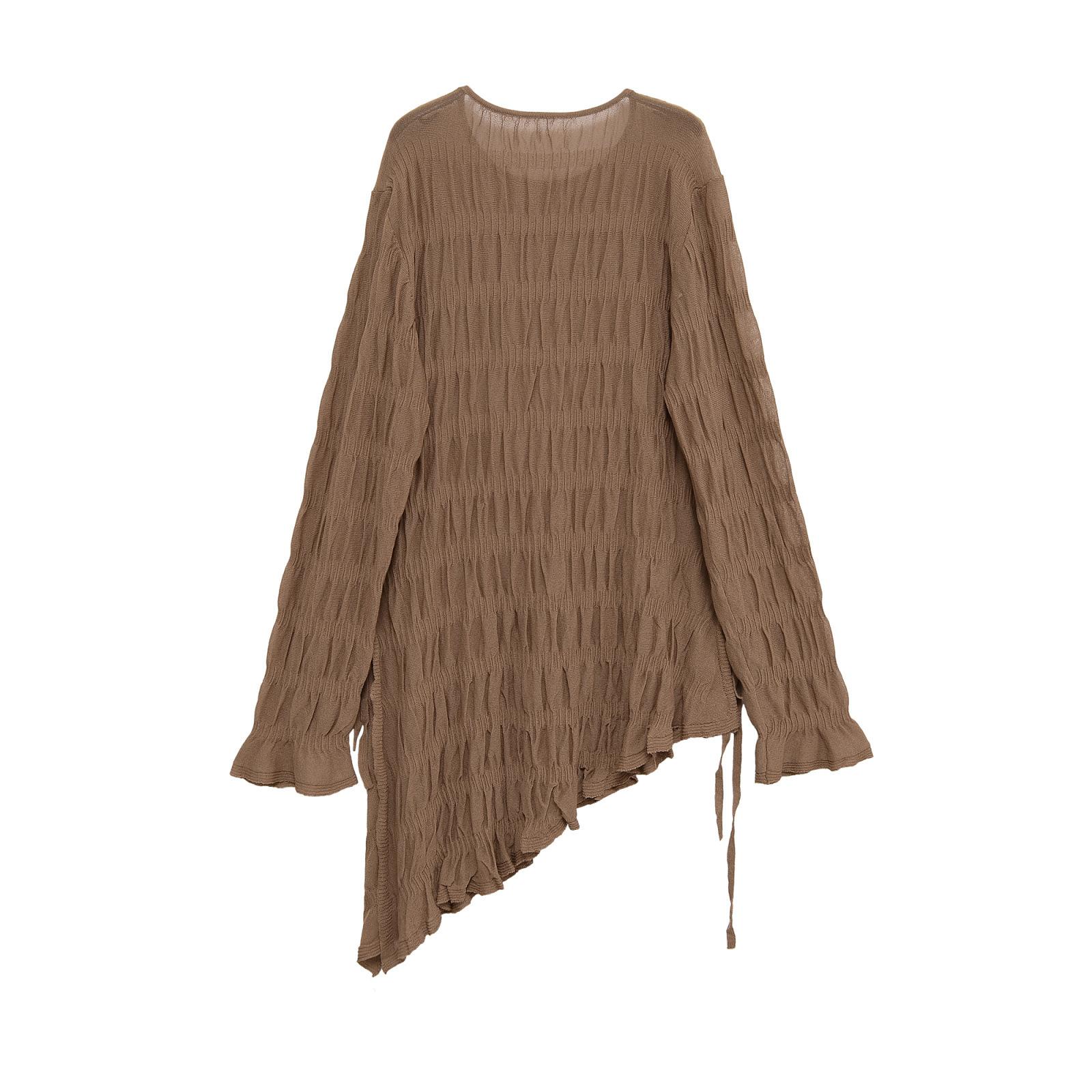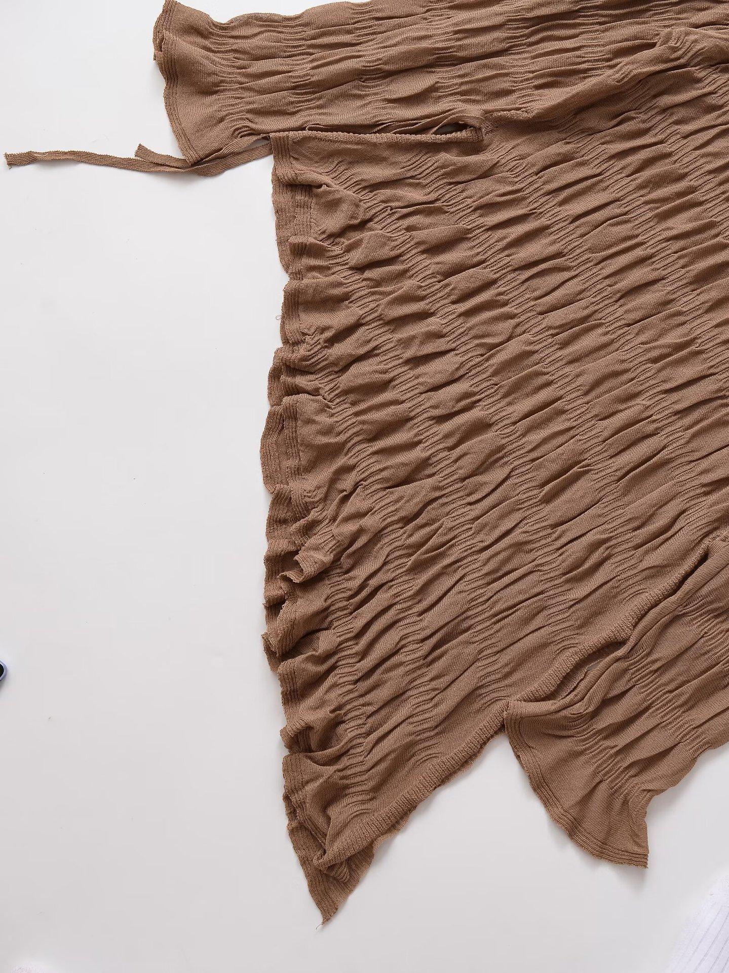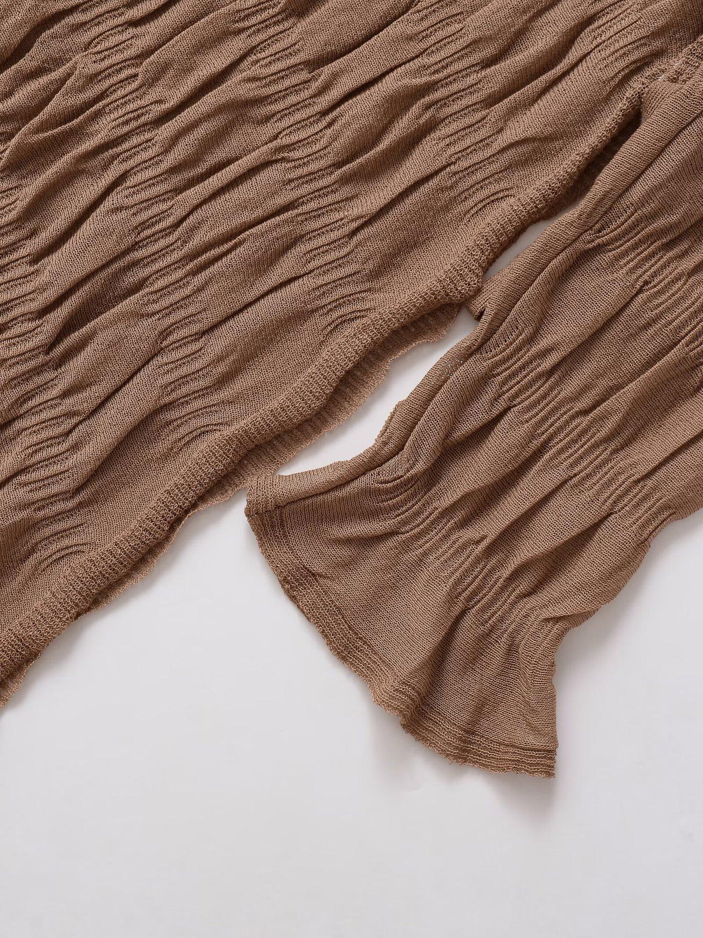Estilo Caliente Transfronterizo AliExpress Moda Europea y Americana Casual con Cordones Fruncido Cuello Redondo Manga Larga Tejido