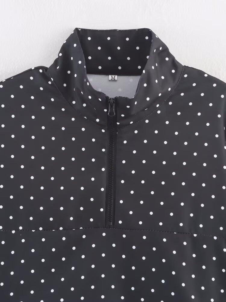 Z Estilo Europeo y Americano Transfronterizo 2025 Nueva Moda Temperamento Ropa de Mujer al por Mayor Estilo Simple Lunares Media Cremallera Chaqueta Holgada