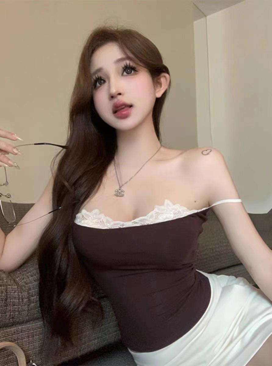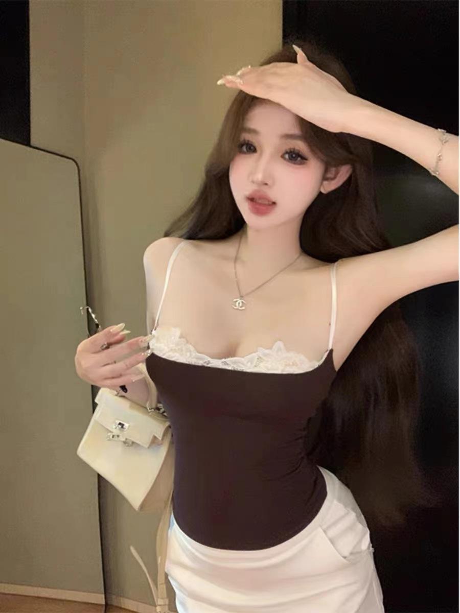 Top Camisola de Encaje de Moda para Mujer, Verano Deseo Puro Sexy Ropa Interior Exterior Hermosa Camiseta de Espalda