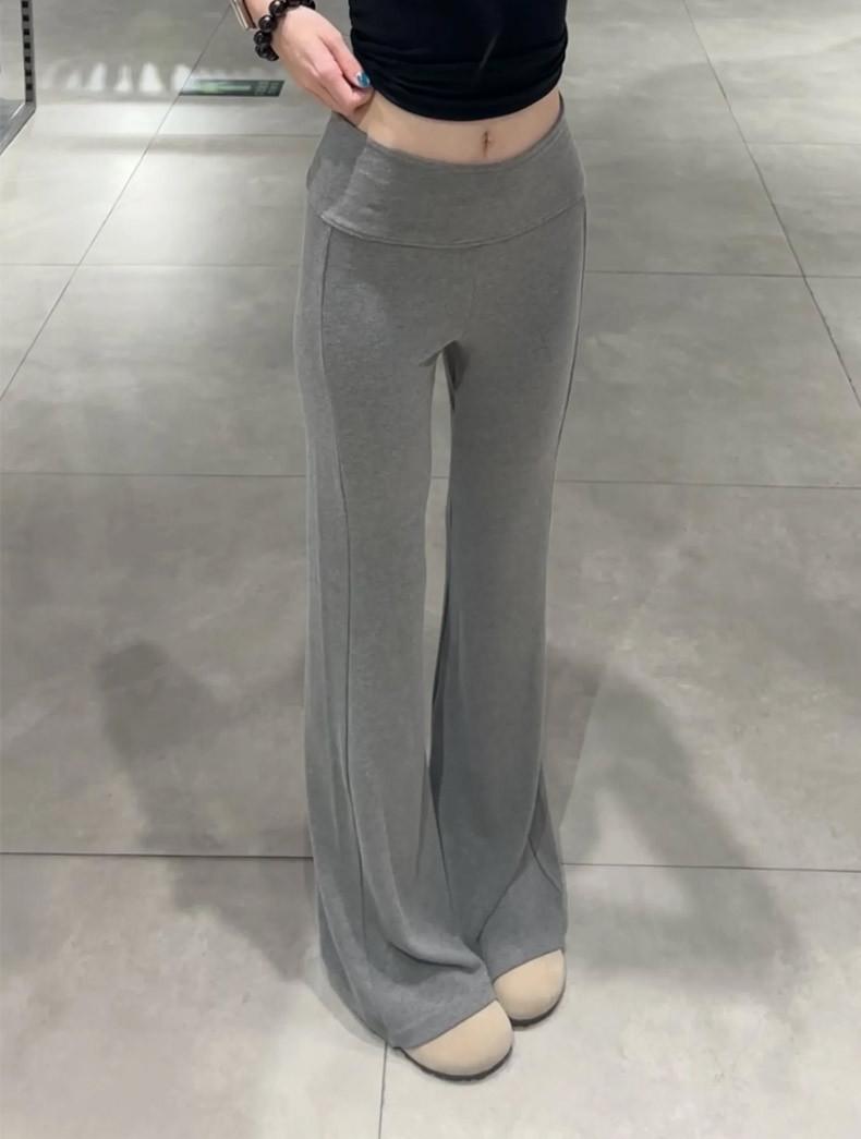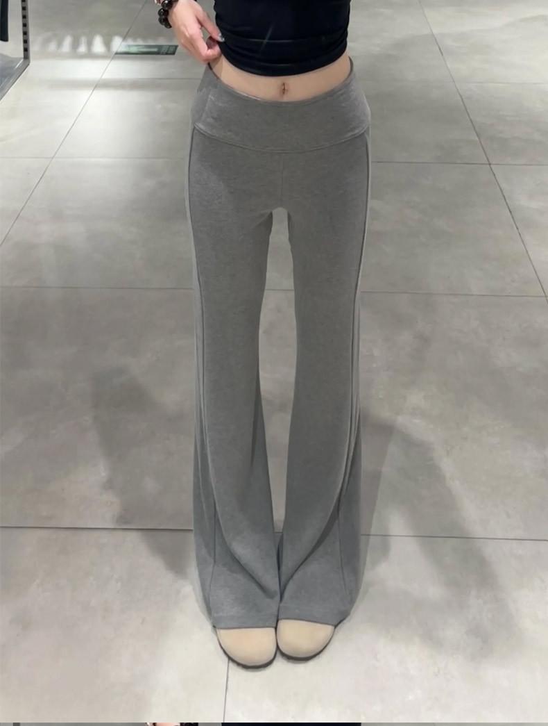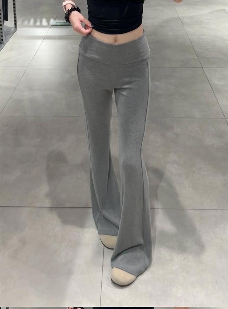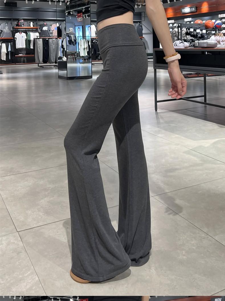 Pantalones Acampanados Micro Deportivos Grises para Mujer Primavera y Otoño Cintura Alta Caída Chica Hot Petite Adelgazantes Yoga Acampanados