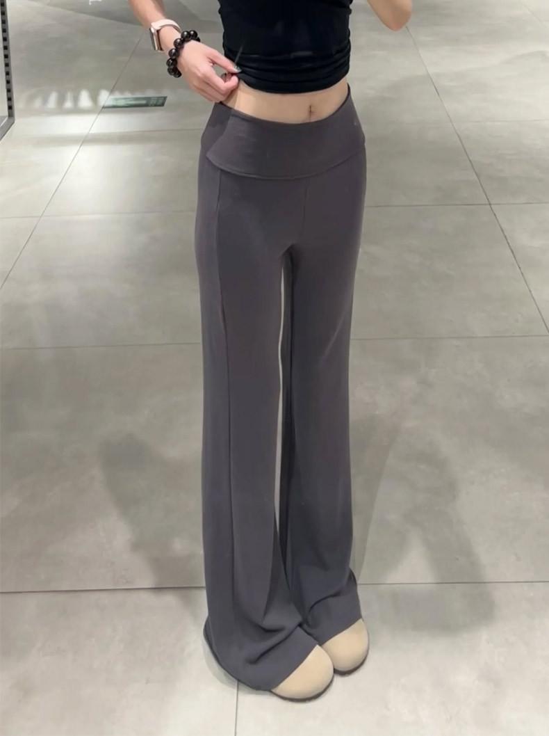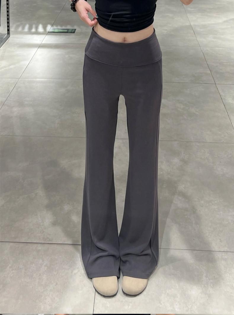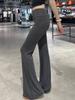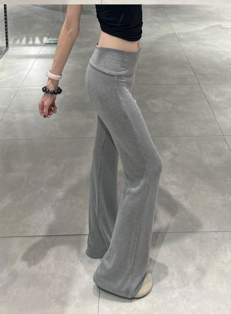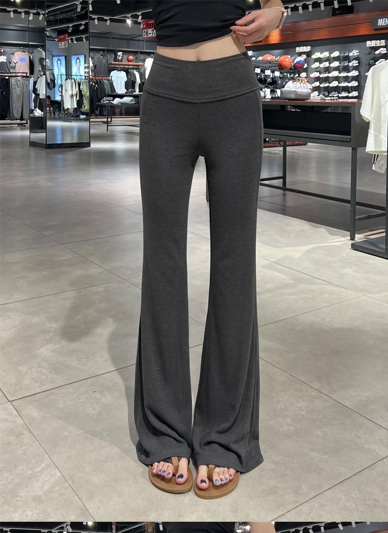 Pantalones Acampanados Micro Deportivos Grises para Mujer Primavera y Otoño Cintura Alta Caída Chica Hot Petite Adelgazantes Yoga Acampanados