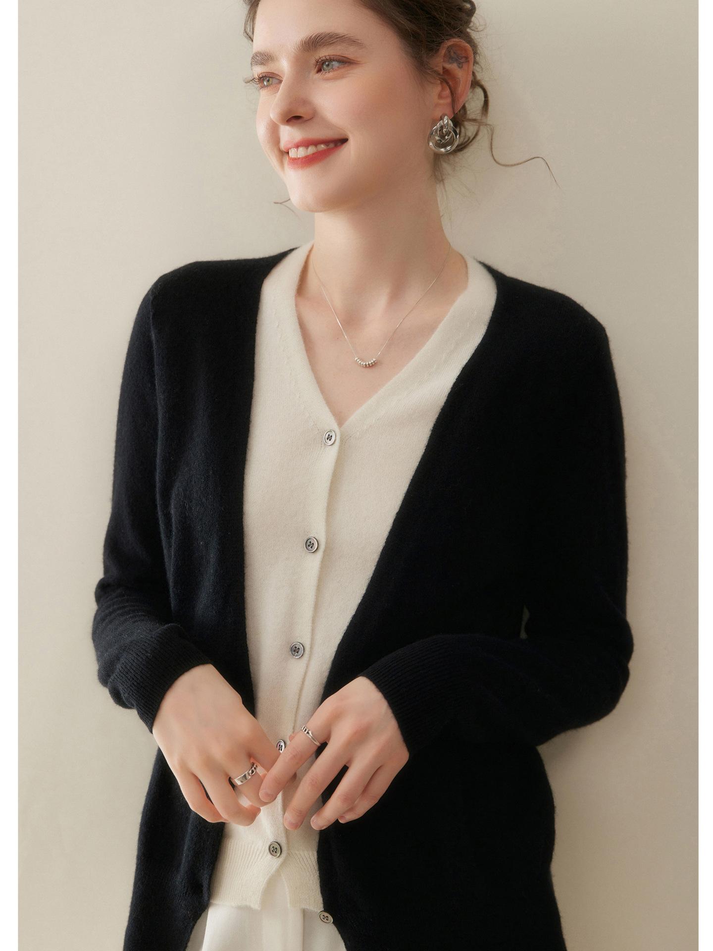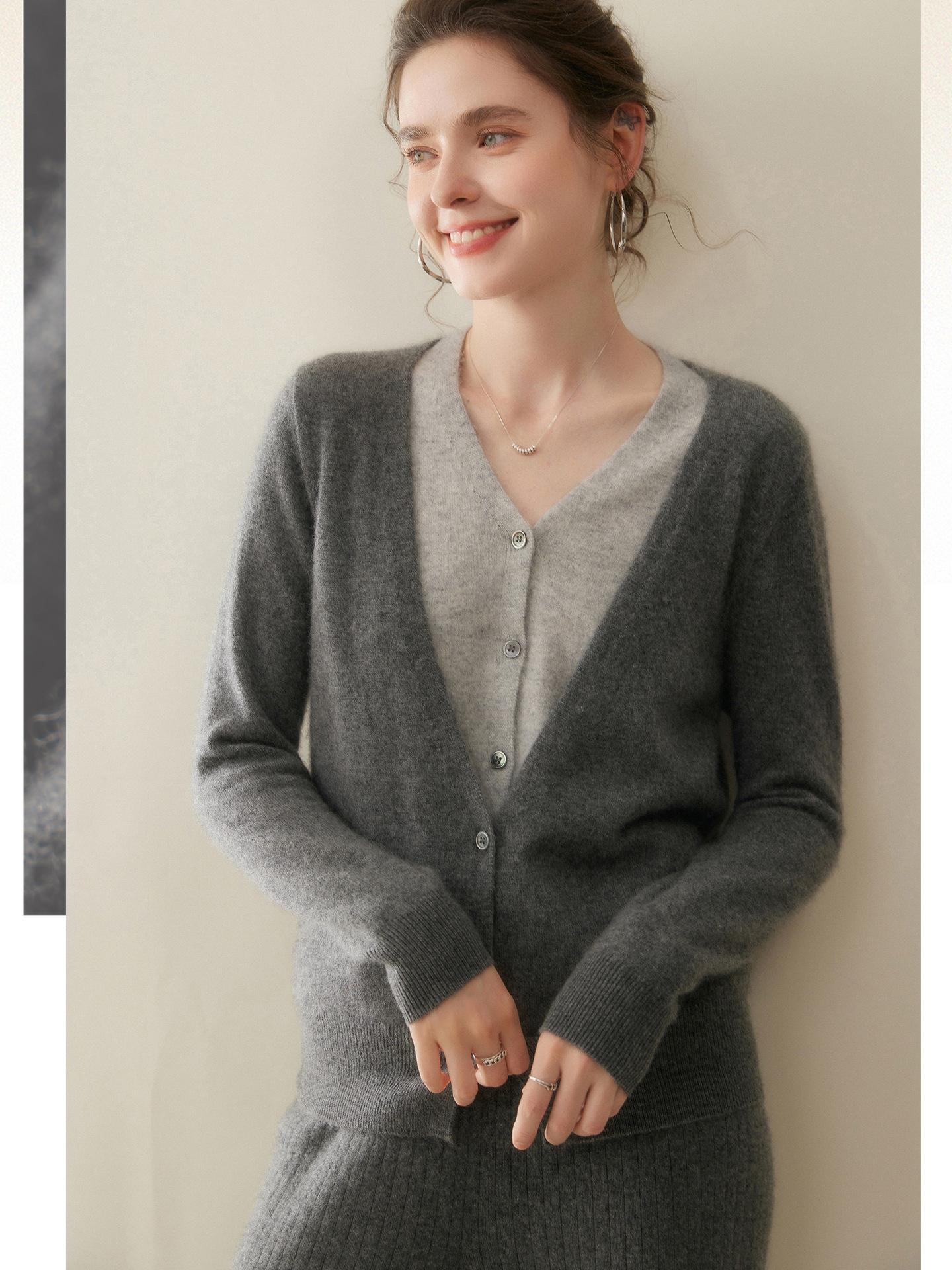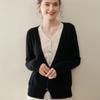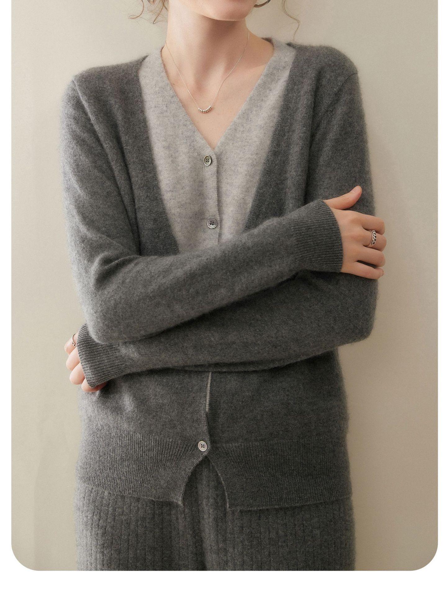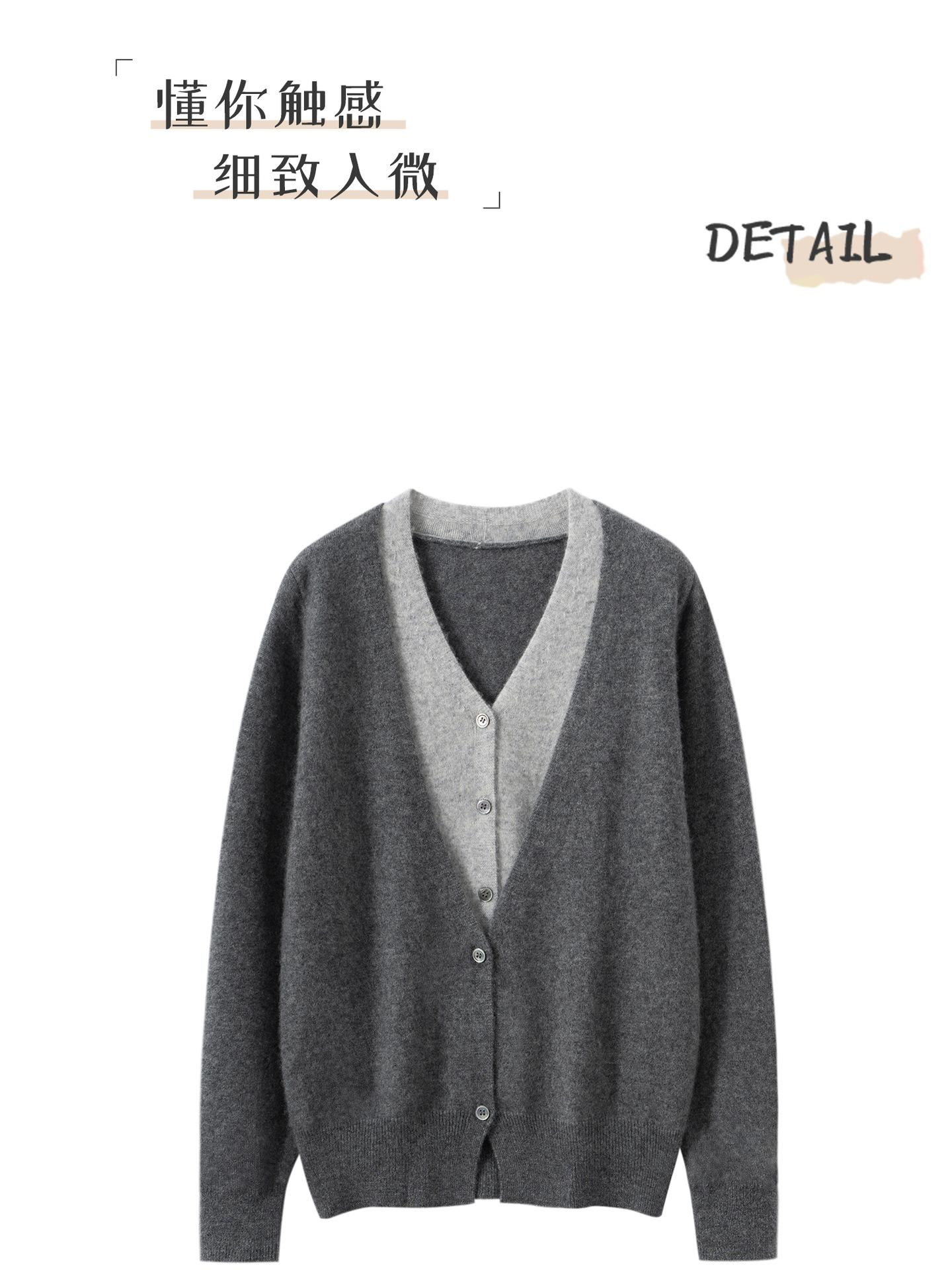 Cárdigan de Punto Versátil Retro de Moda para Mujer de Cachemira Suave de Dos Piezas Falsas Otoño e Invierno Nuevo Abrigo Casual Holgado