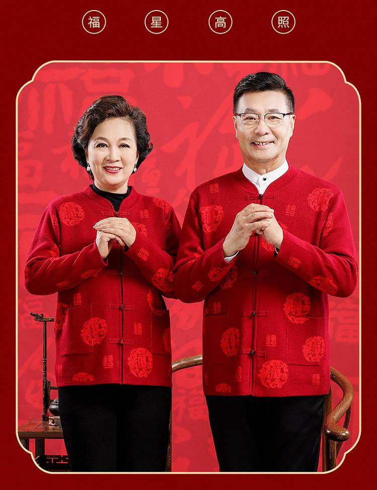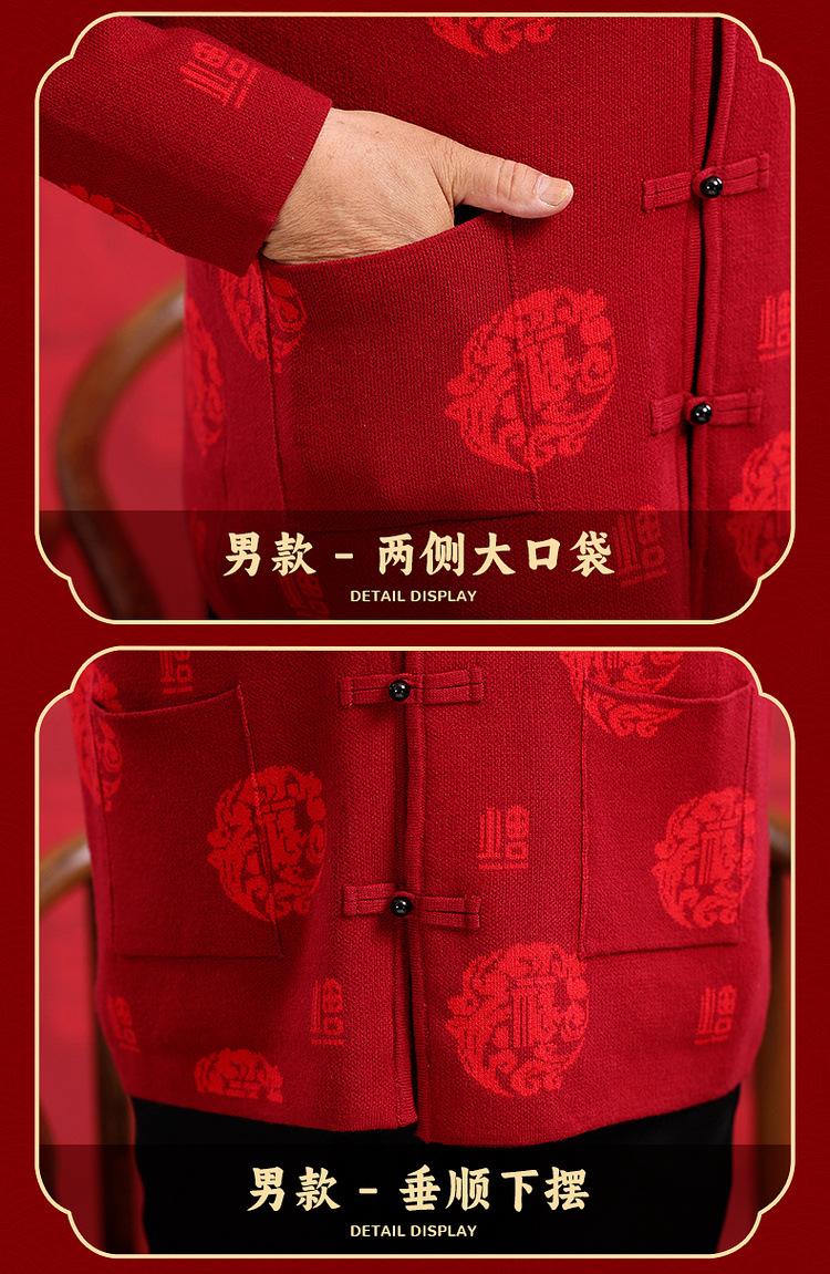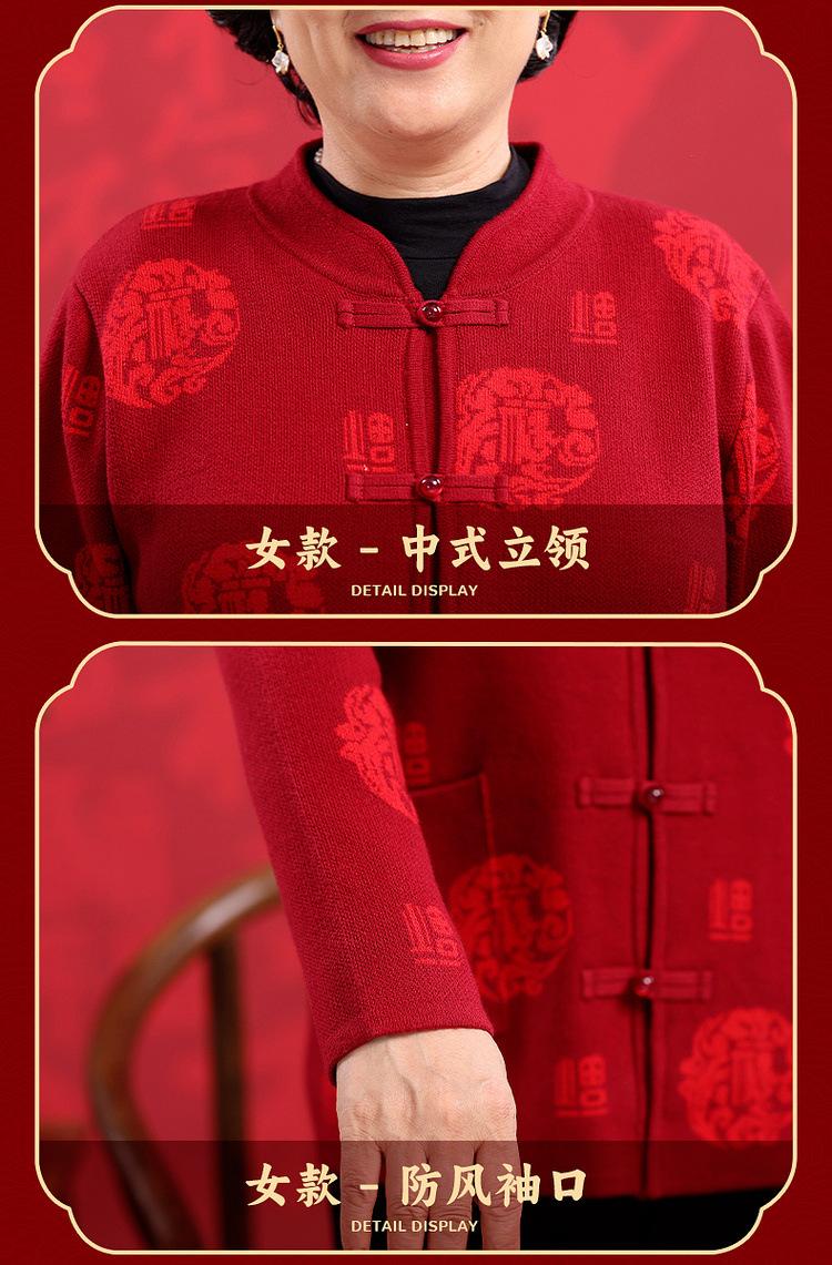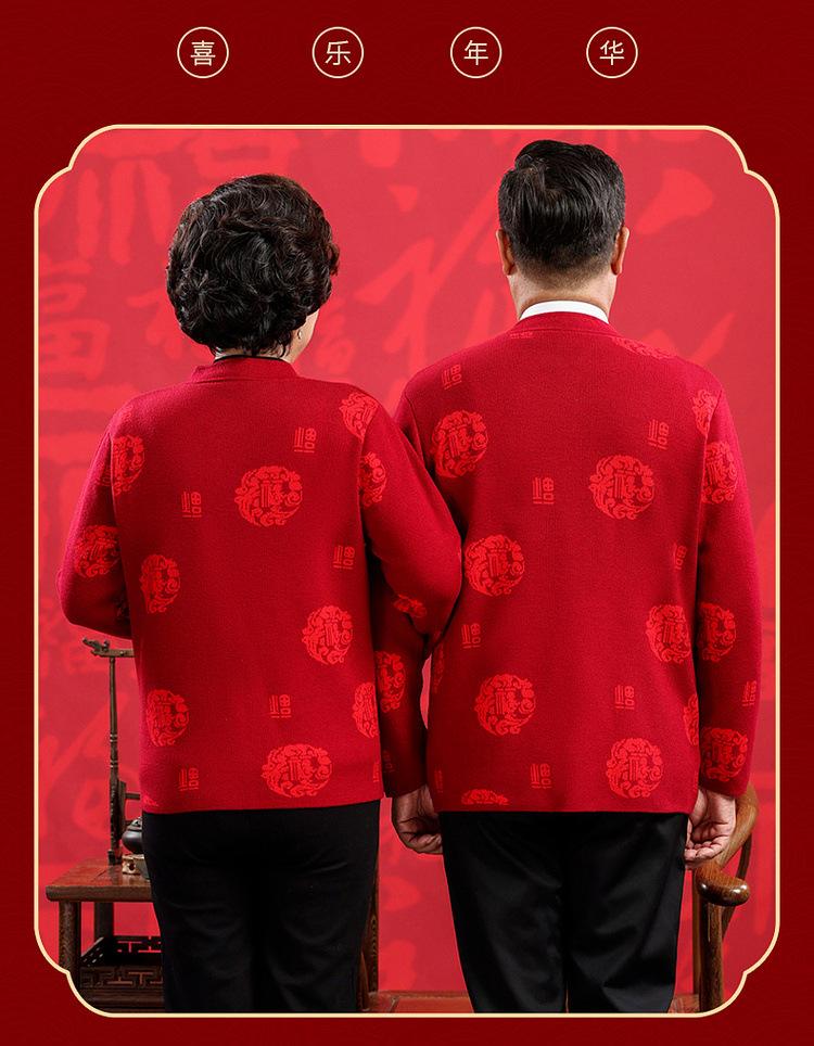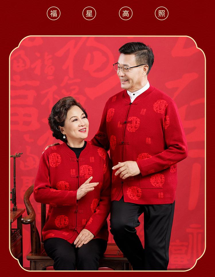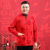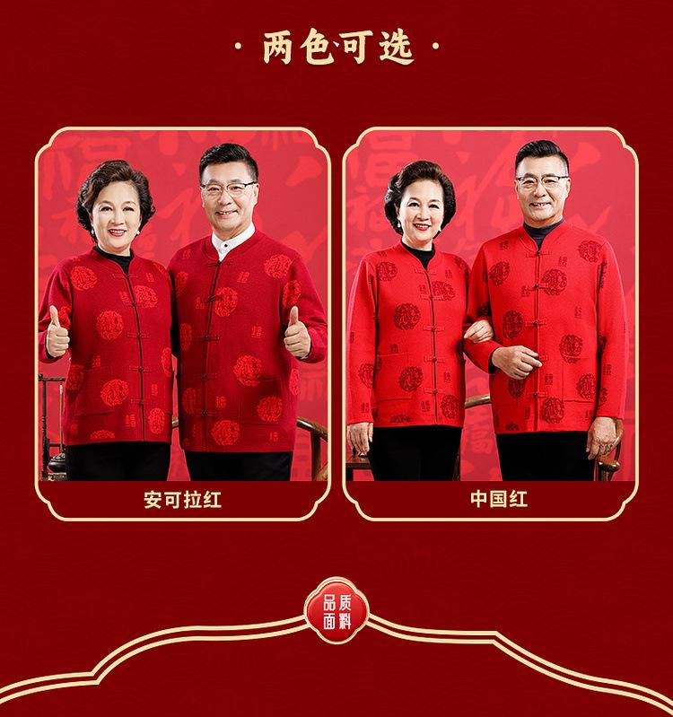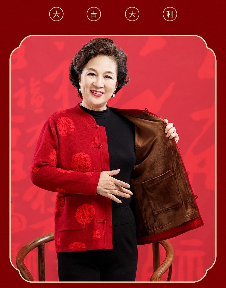 Benmingnian Hombres y Mujeres de Mediana Edad y Mayores Carácter Fu Cárdigan de Lana Traje Tang Atuendo de Papá Chaqueta con Forro Polar Atuendo de Mamá Cárdigan Rojo