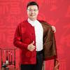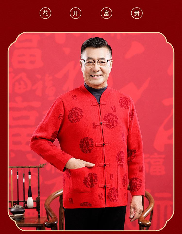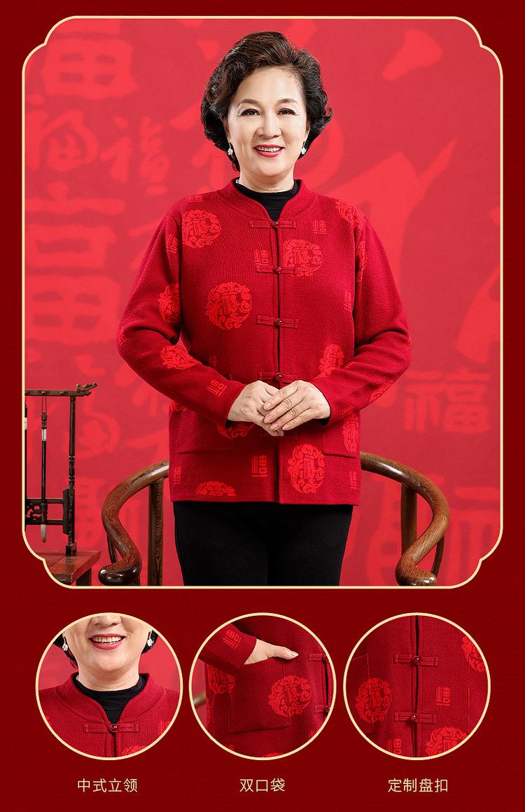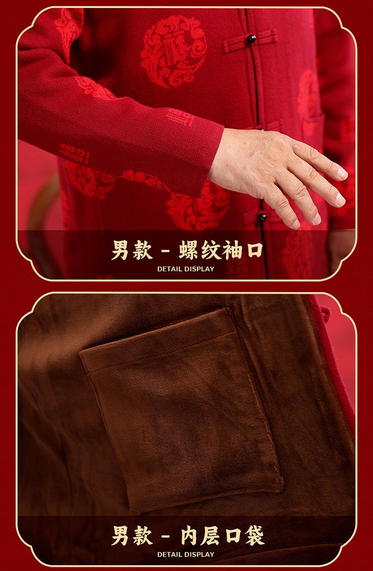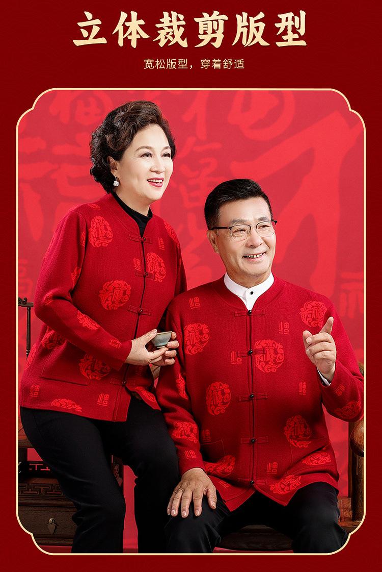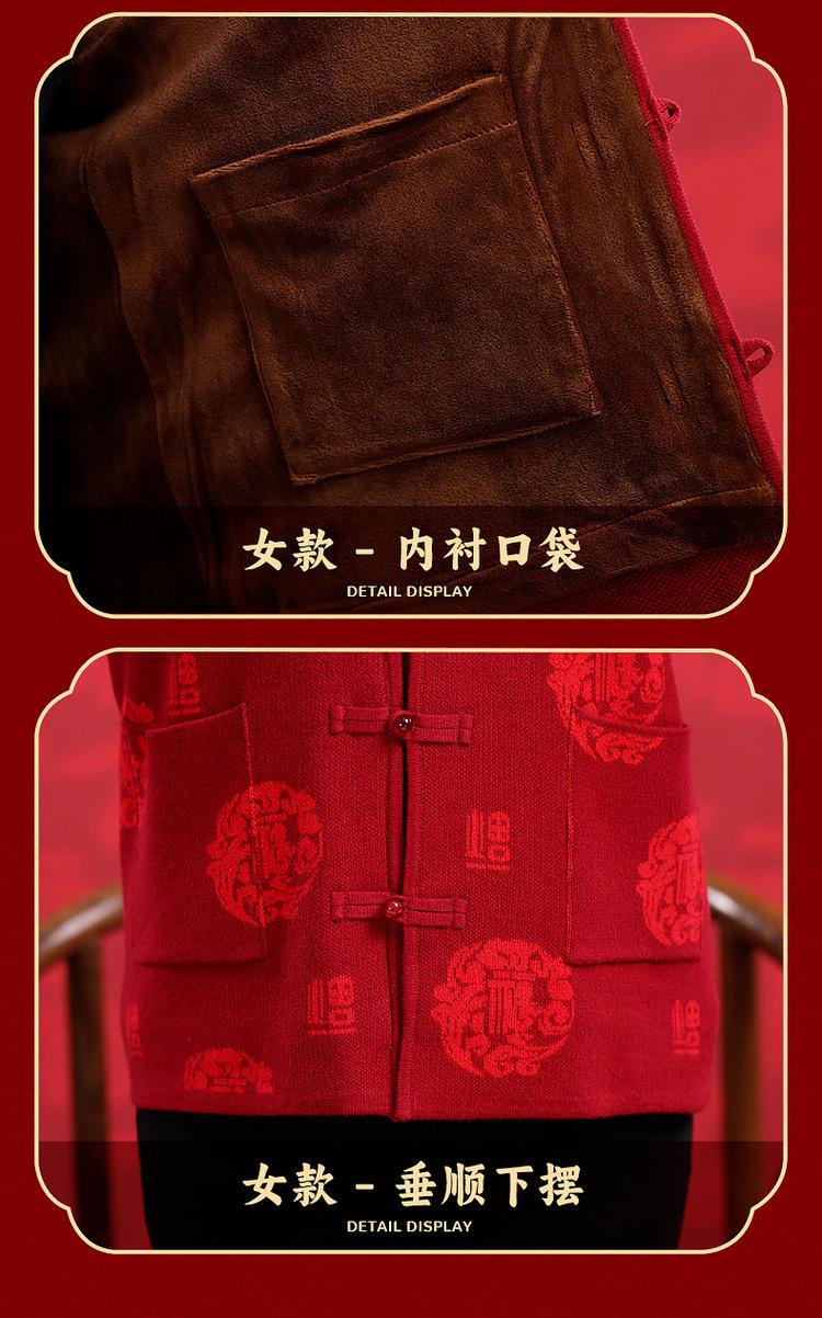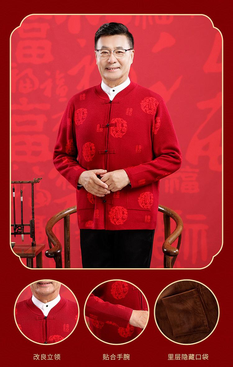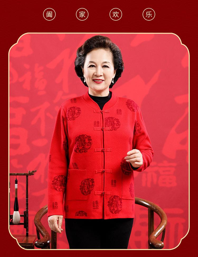 Benmingnian Hombres y Mujeres de Mediana Edad y Mayores Carácter Fu Cárdigan de Lana Traje Tang Atuendo de Papá Chaqueta con Forro Polar Atuendo de Mamá Cárdigan Rojo