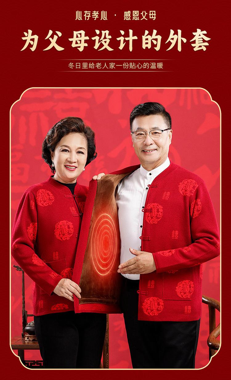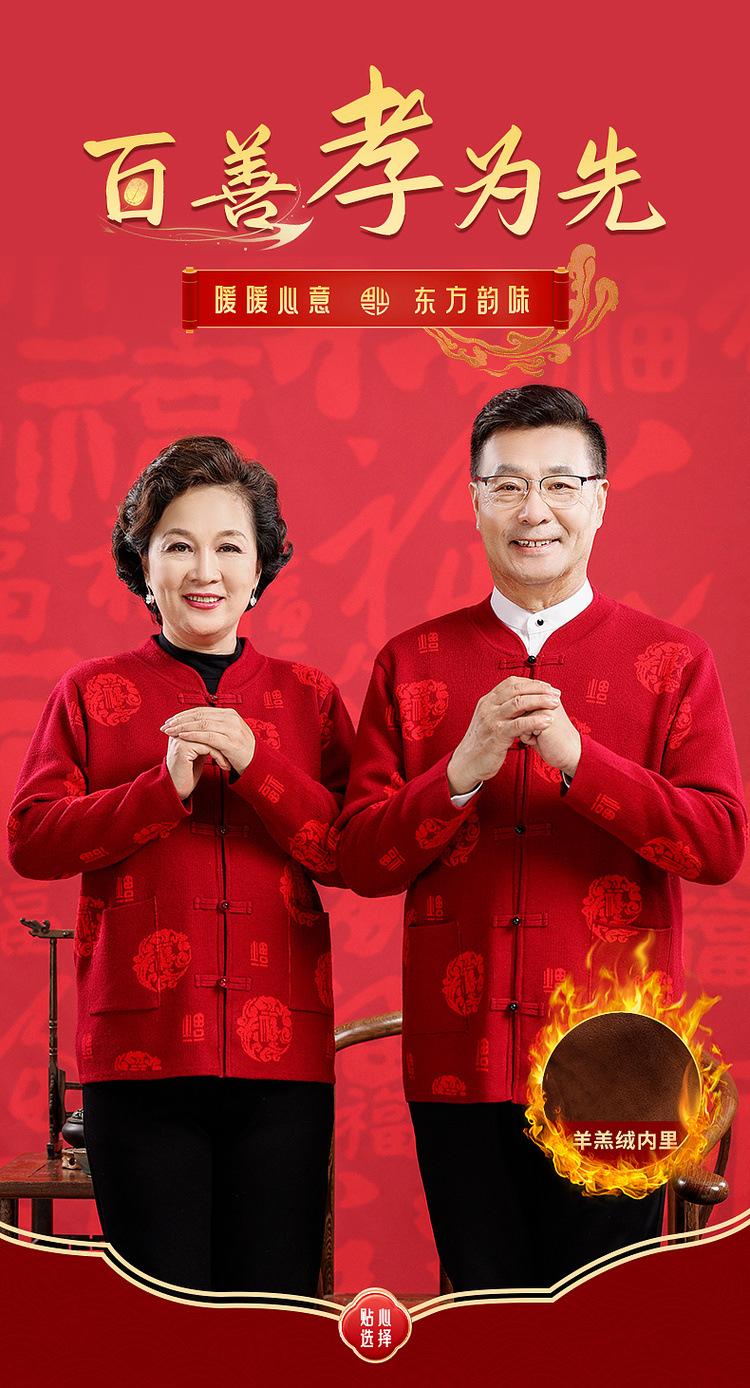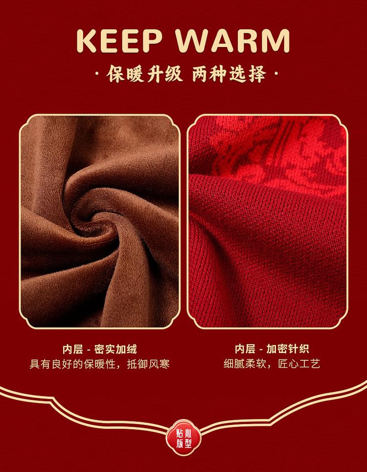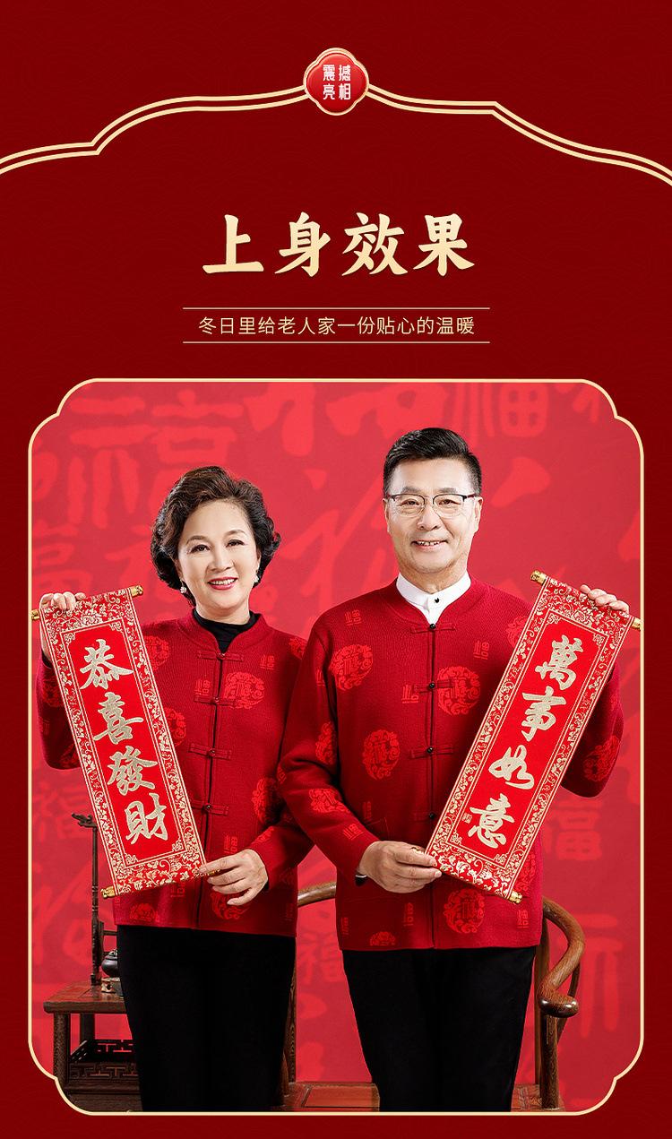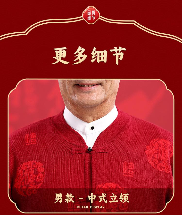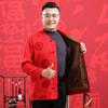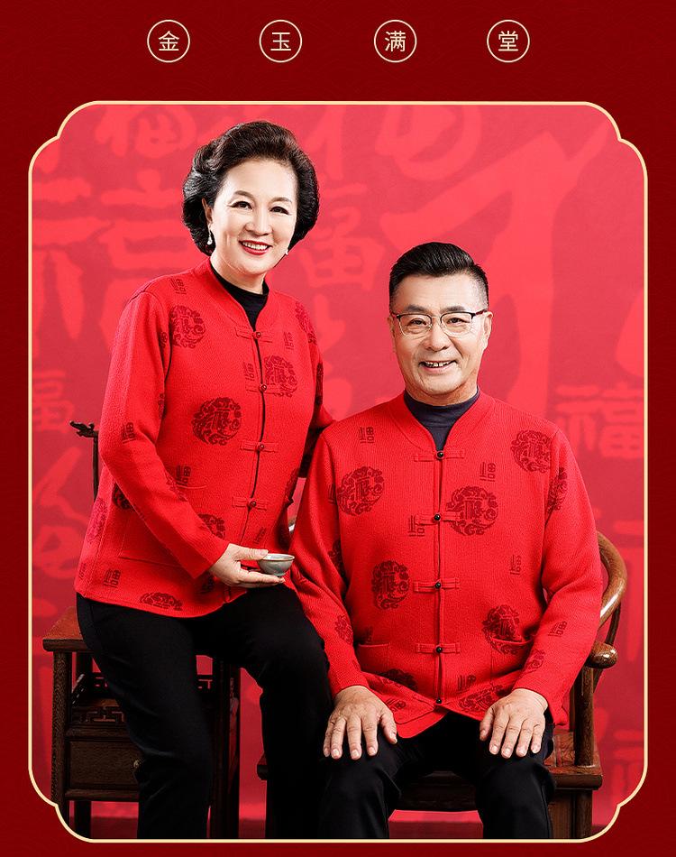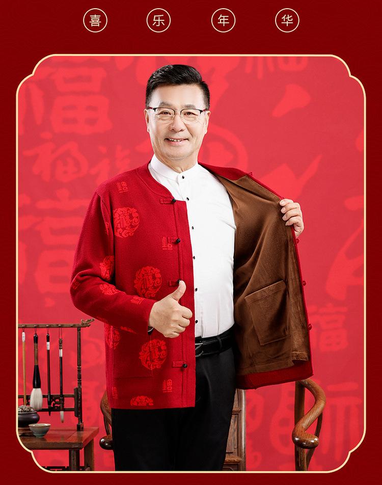 Benmingnian Hombres y Mujeres de Mediana Edad y Mayores Carácter Fu Cárdigan de Lana Traje Tang Atuendo de Papá Chaqueta con Forro Polar Atuendo de Mamá Cárdigan Rojo