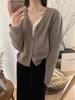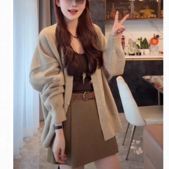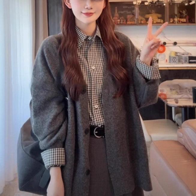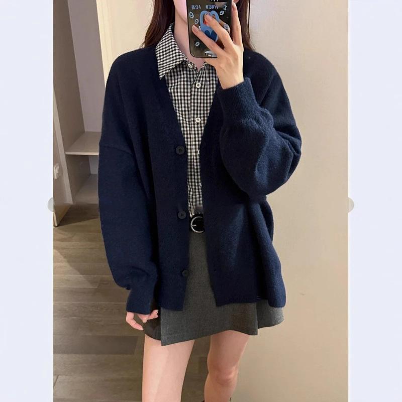 Cárdigan de punto holgado de color sólido con cuello en V de estilo perezoso para mujer, otoño e invierno, de un solo botón, suéter holgado, abrigo, top