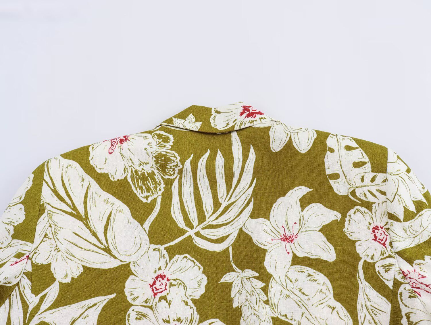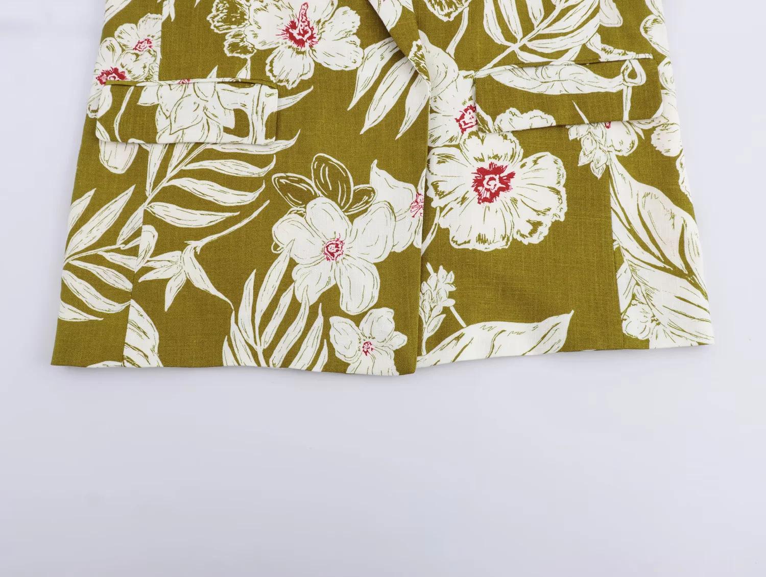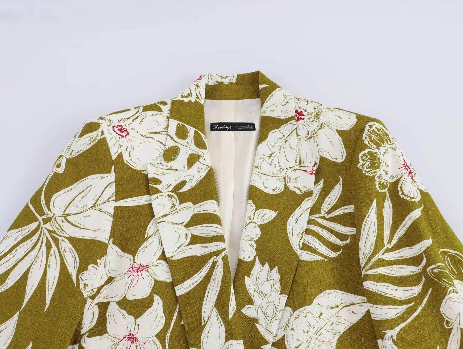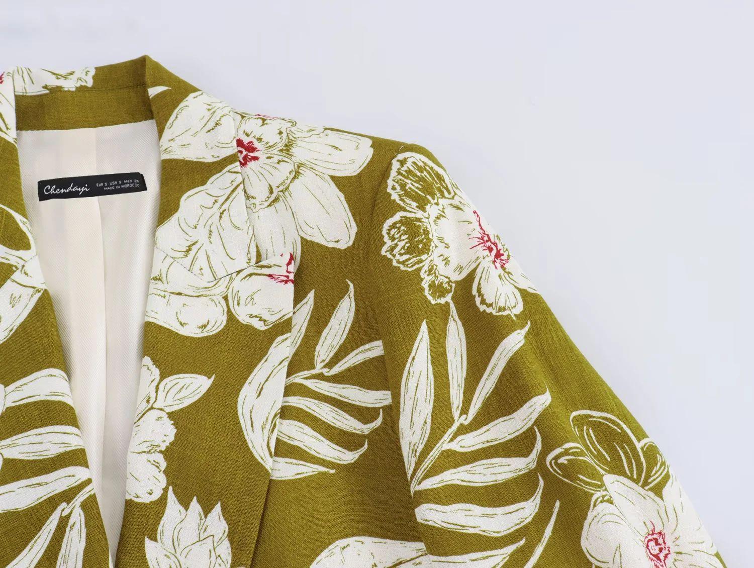 ZA AliExpress Chaqueta de Traje de Mezcla de Lino para Mujer con Estampado Floral Estilo Europeo y Americano de Venta Caliente para Comercio Exterior Transfronterizo