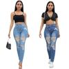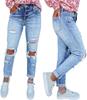 Amazon Más Vendido 2021 Ajustado Adelgazante Lavado Roto Rodilla Flecos Pantalones Jeans Lápiz Pantalones Largos