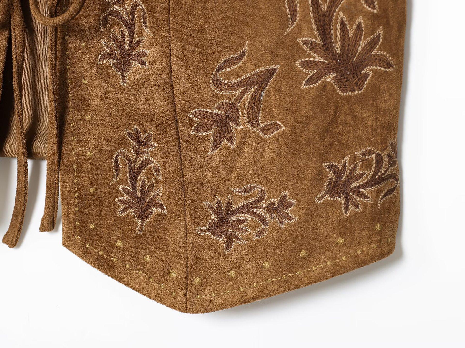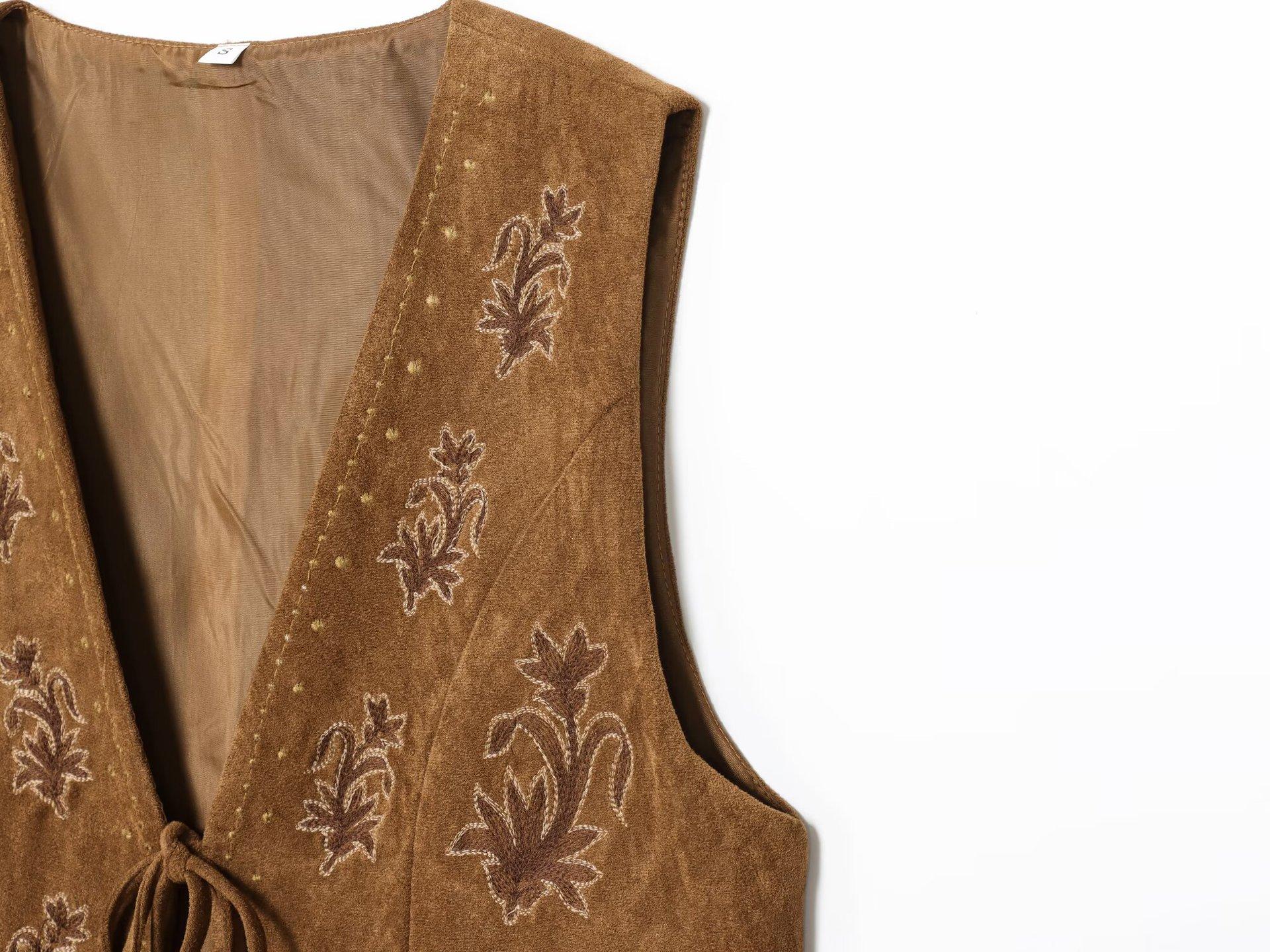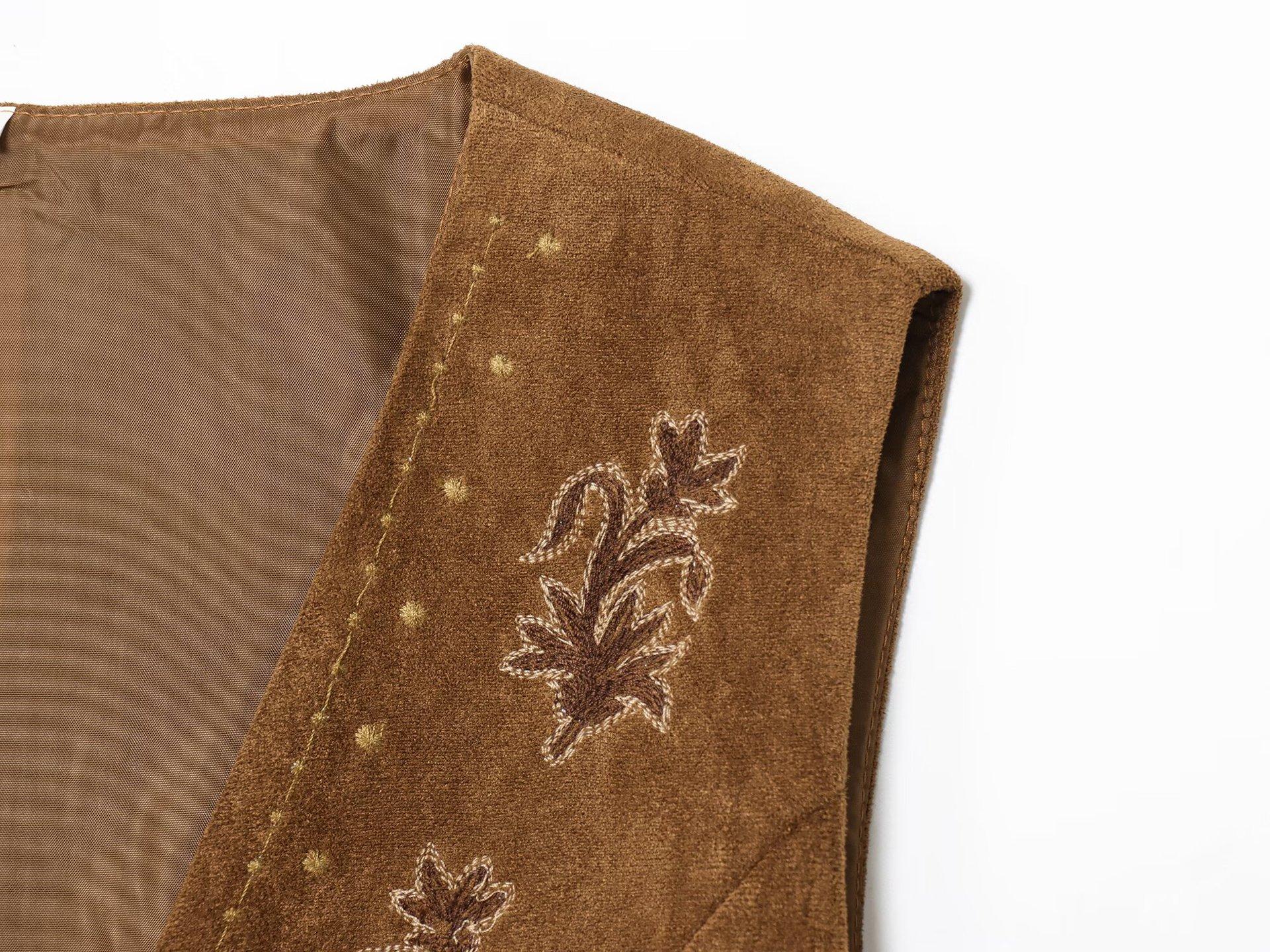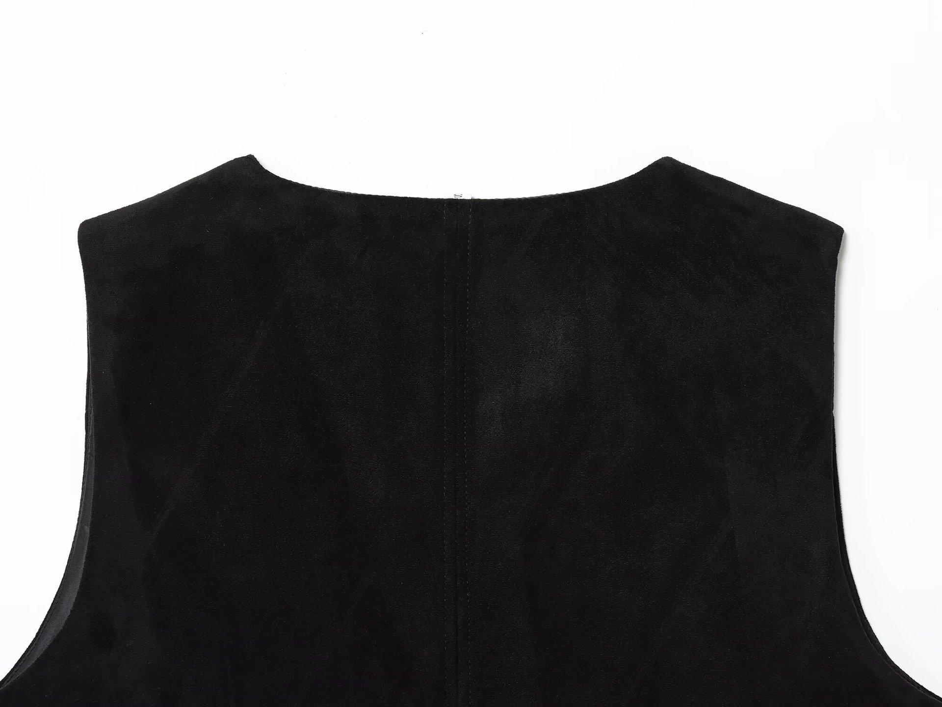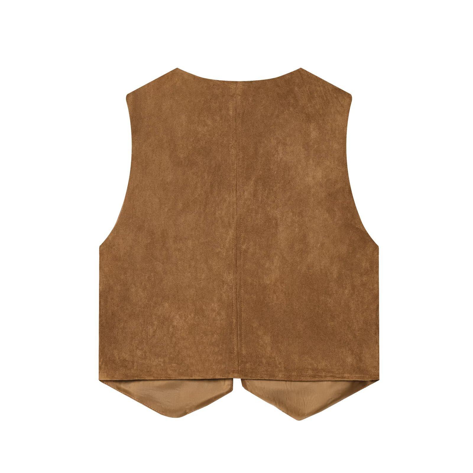 Transfronterizo Europa y América 2025 Otoño Estilo Caliente Moda Versátil Jacquard Textura Gamuza Retro Chaleco