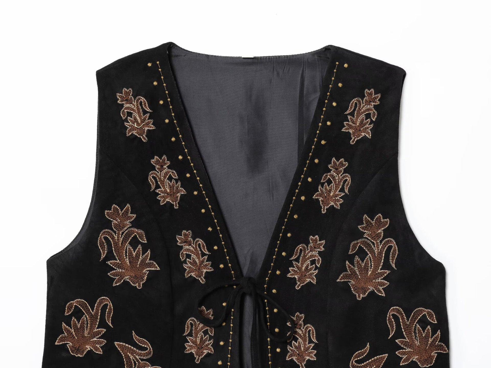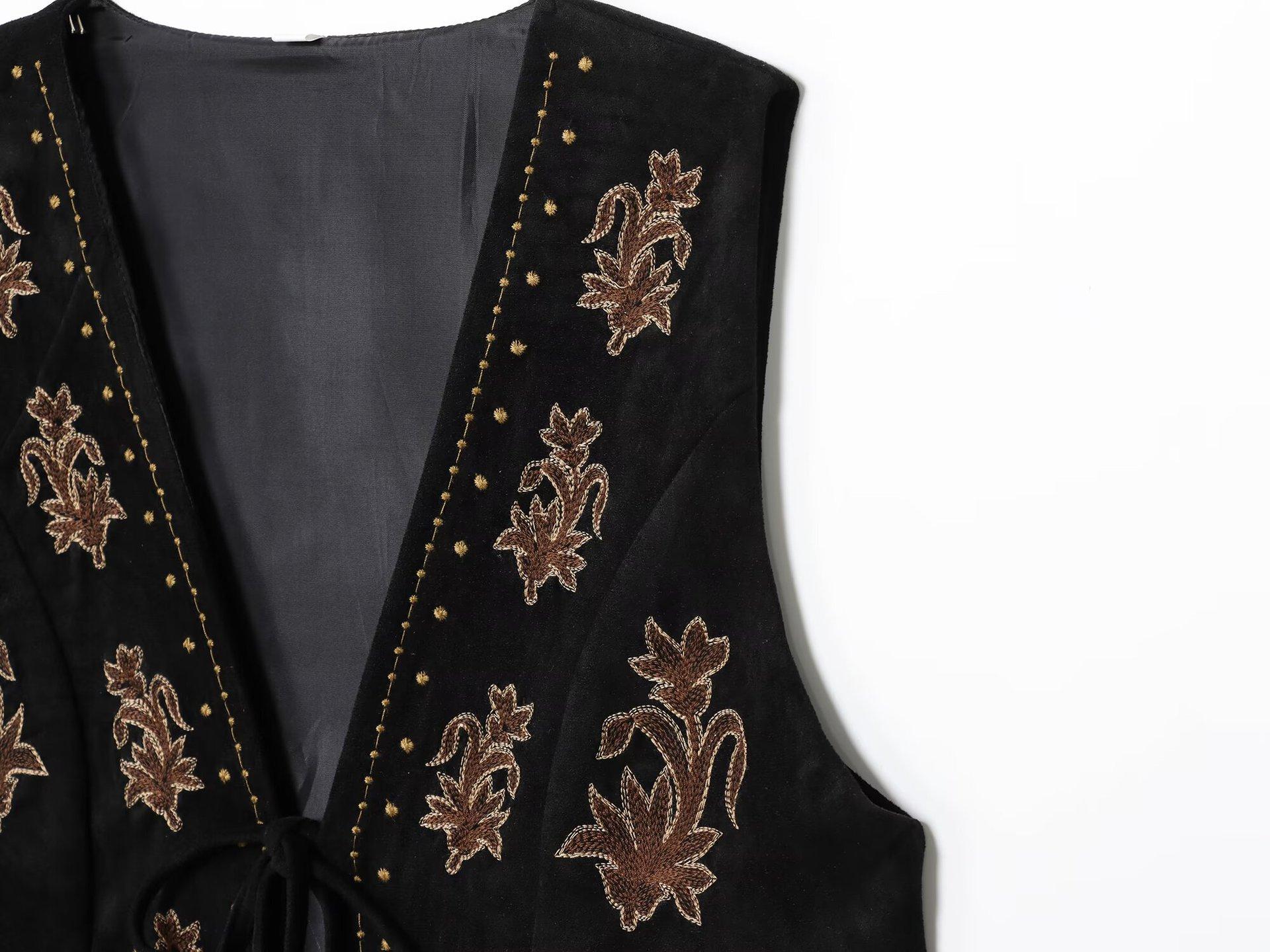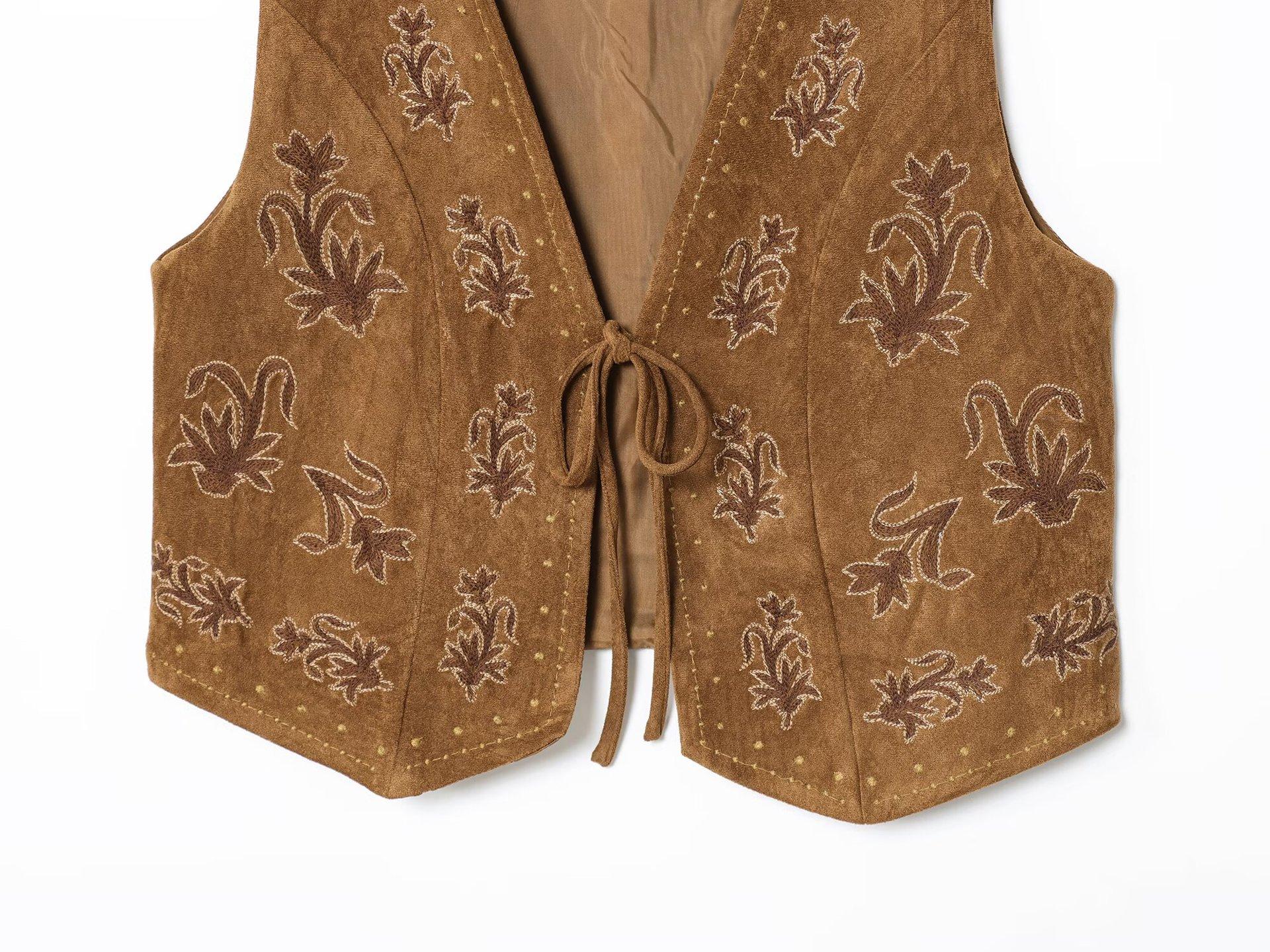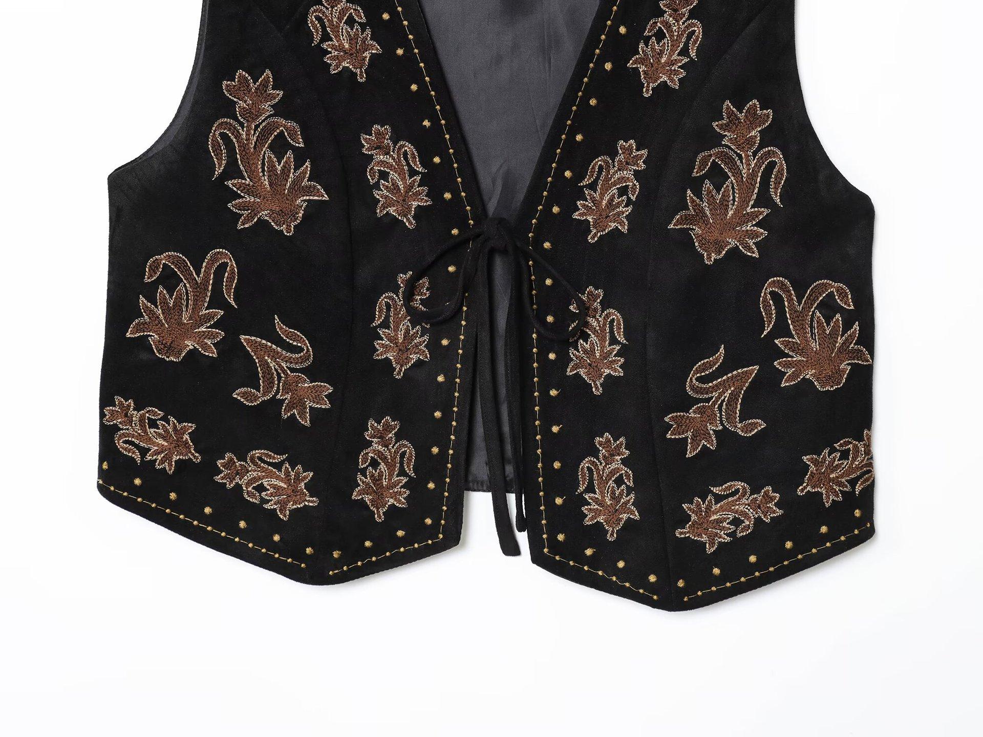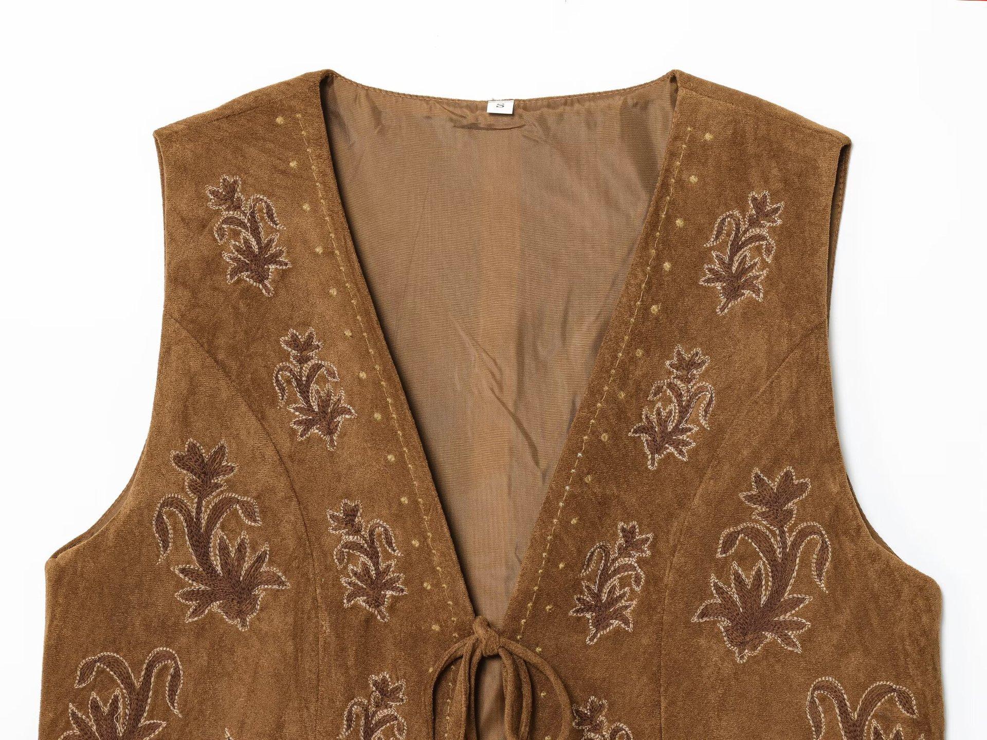 Transfronterizo Europa y América 2025 Otoño Estilo Caliente Moda Versátil Jacquard Textura Gamuza Retro Chaleco