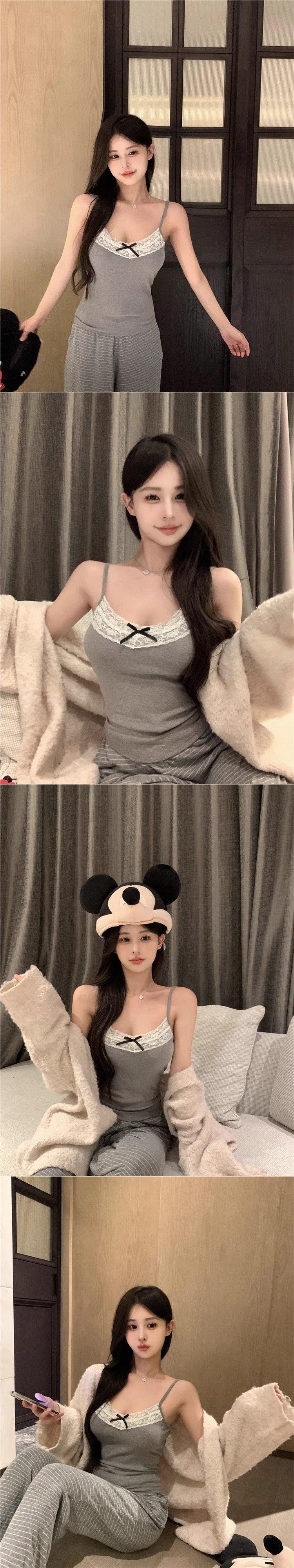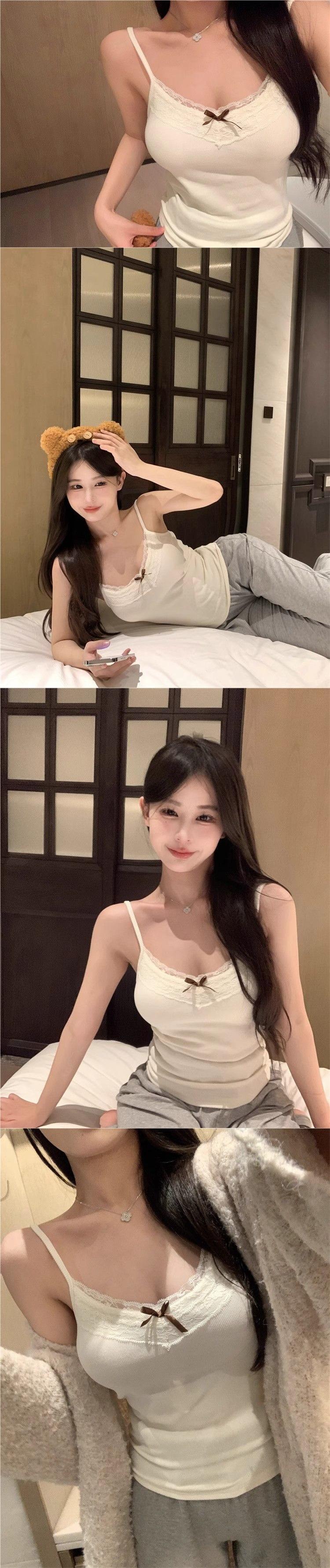 Camisola de Encaje con Adorno de Encaje para Comercio Exterior Transfronterizo, para Mujer, Dulce y Picante, Ajustada, Ropa Interior, Top Corto