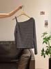 Otoño Temprano 2025 Nueva Moda Diseño Coreano Hombros Descubiertos Adelgazante Rayada Manga Larga Camiseta Base para Mujer
