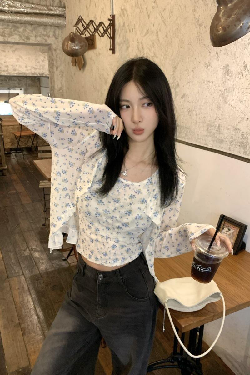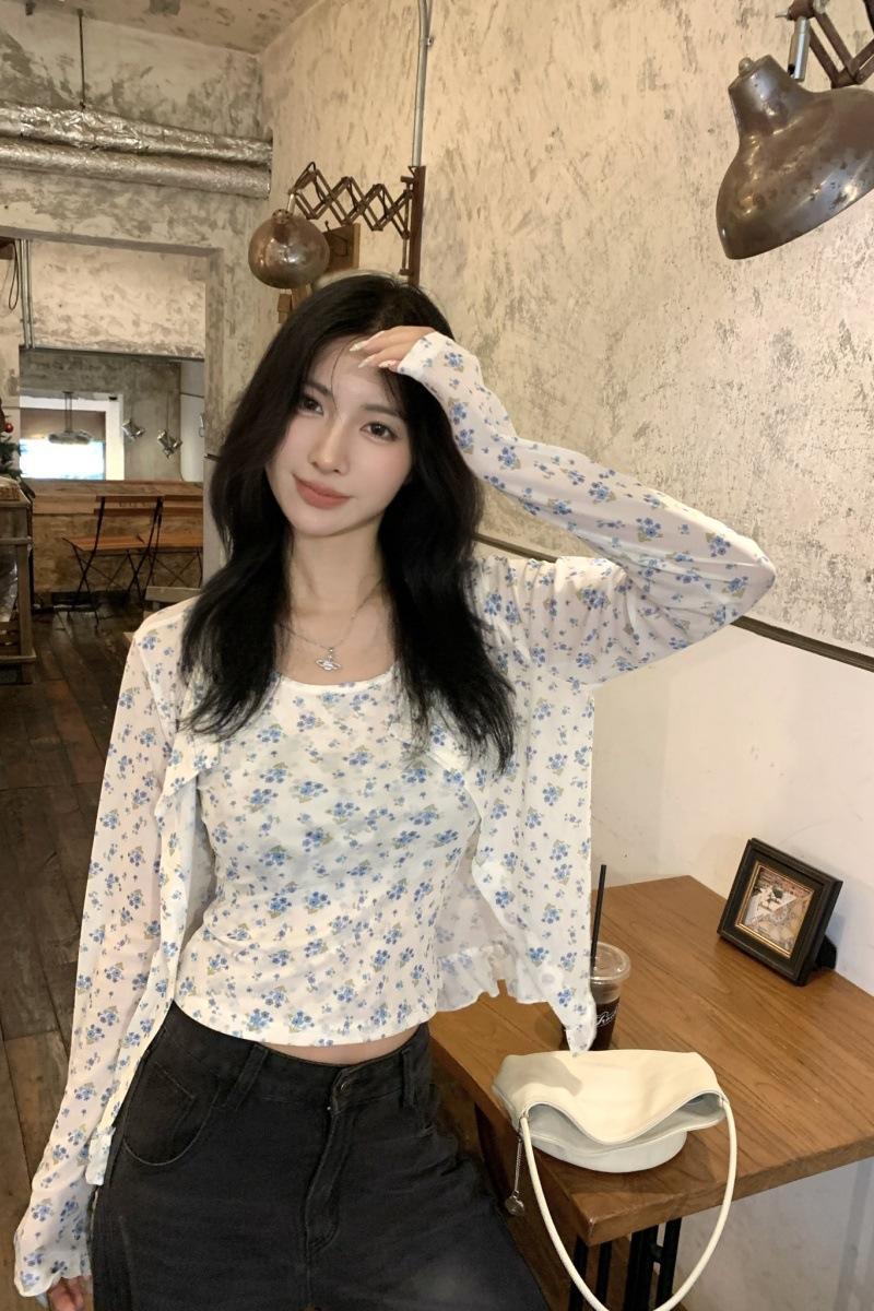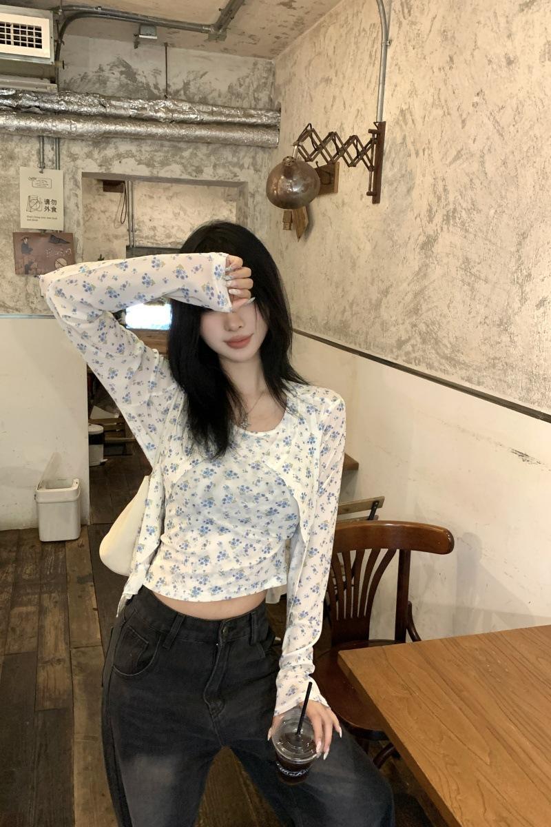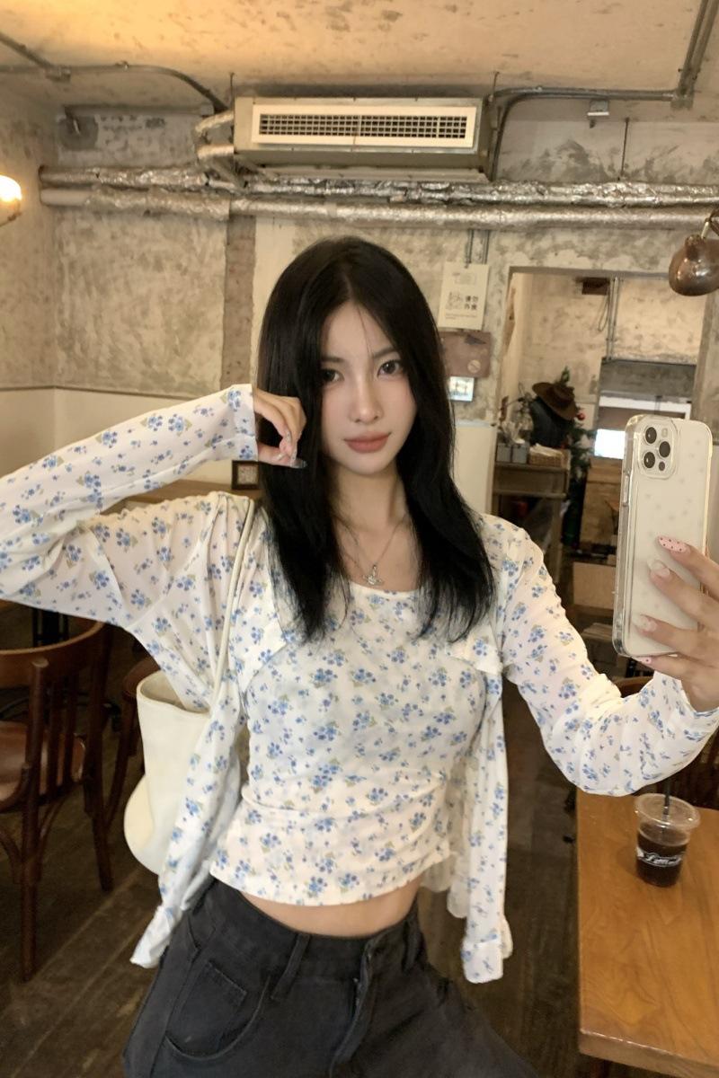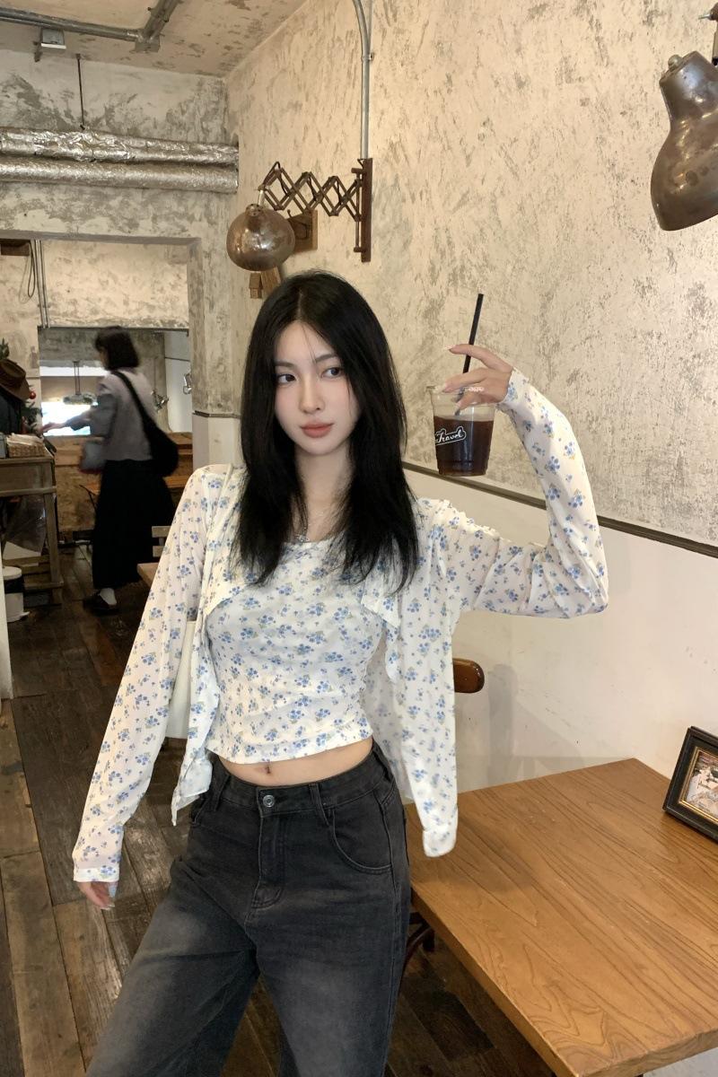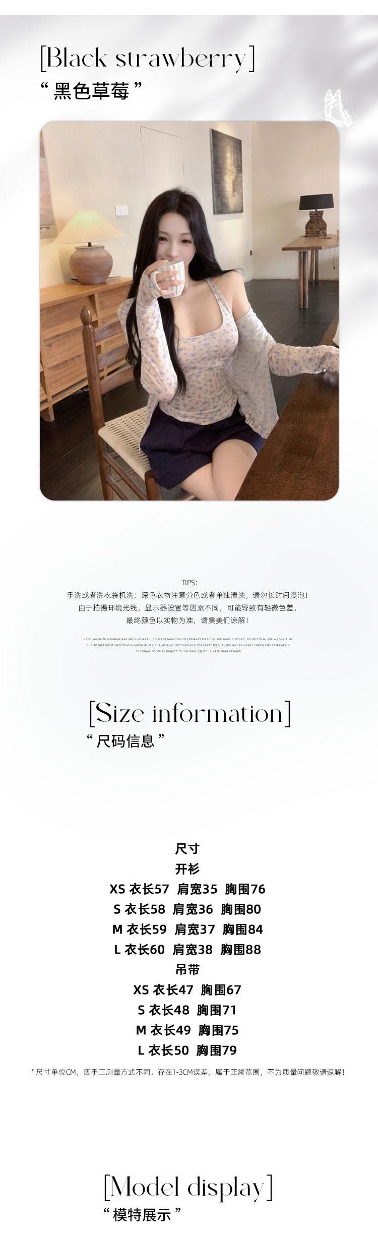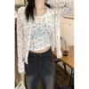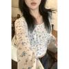 Primavera y Otoño Nuevo Diseño Nicho Versátil Camisola Chaleco Conjunto de Dos Piezas Dulce Cárdigan de Manga Larga Floral Francés Abrigo Mujer