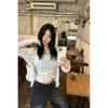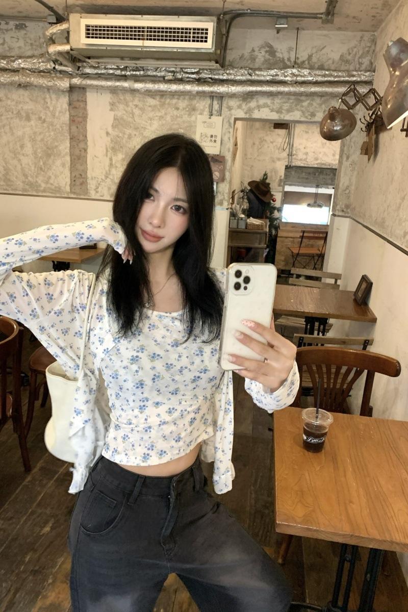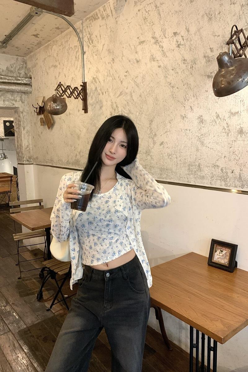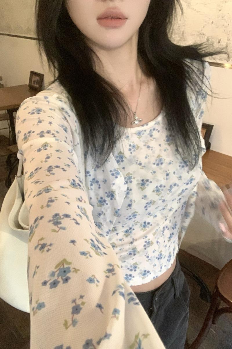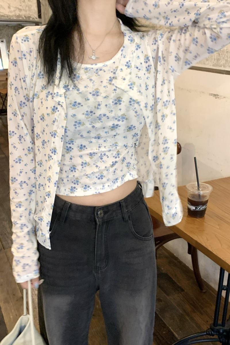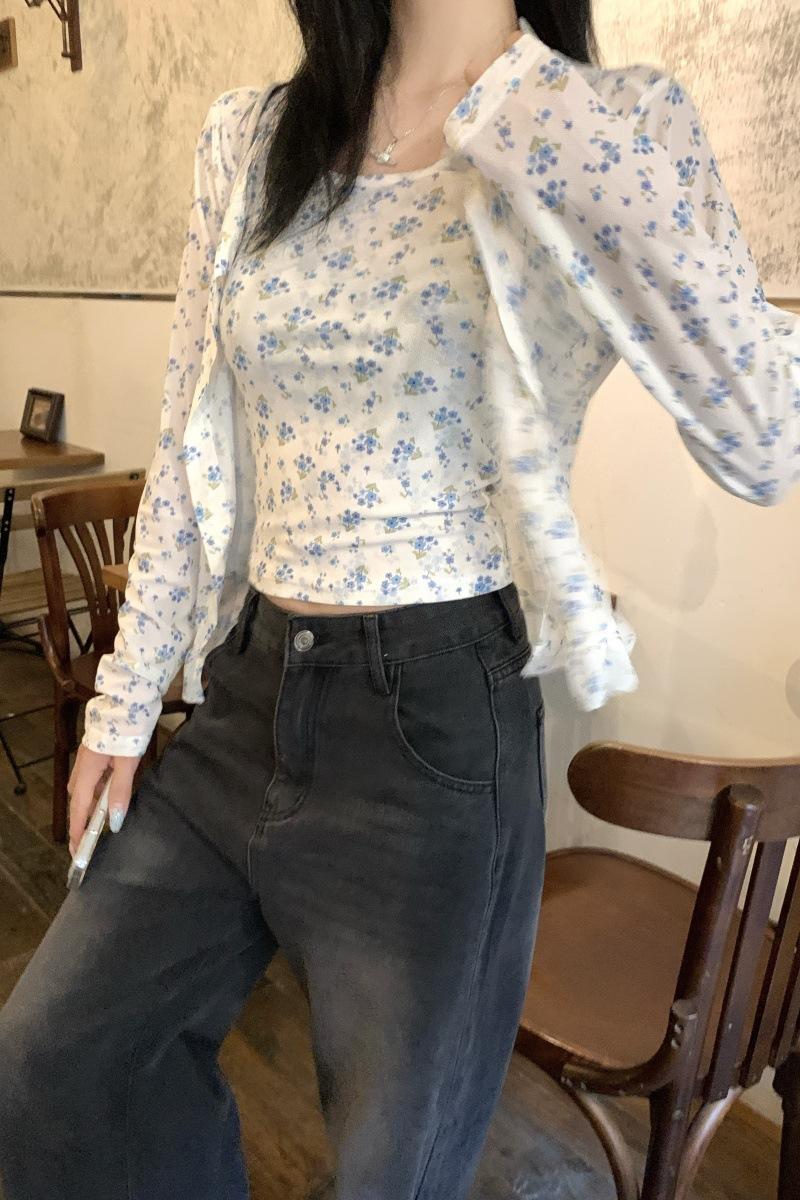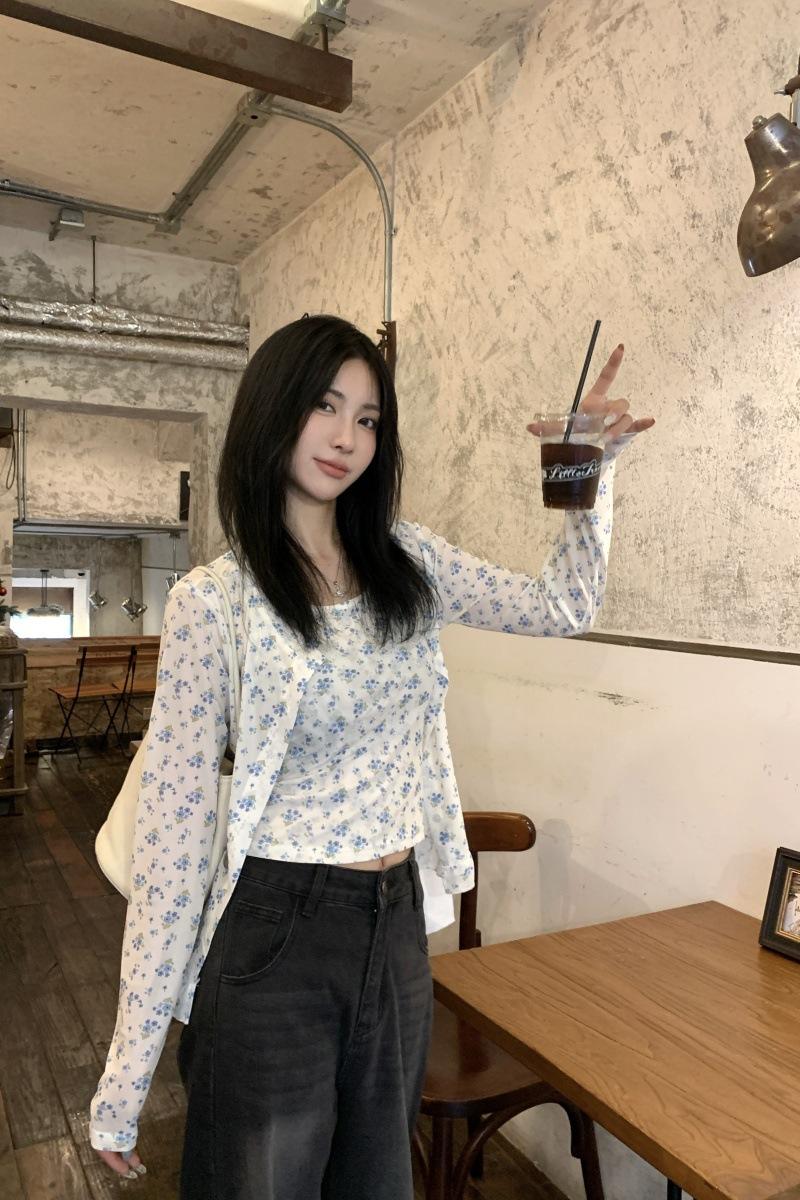 Primavera y Otoño Nuevo Diseño Nicho Versátil Camisola Chaleco Conjunto de Dos Piezas Dulce Cárdigan de Manga Larga Floral Francés Abrigo Mujer