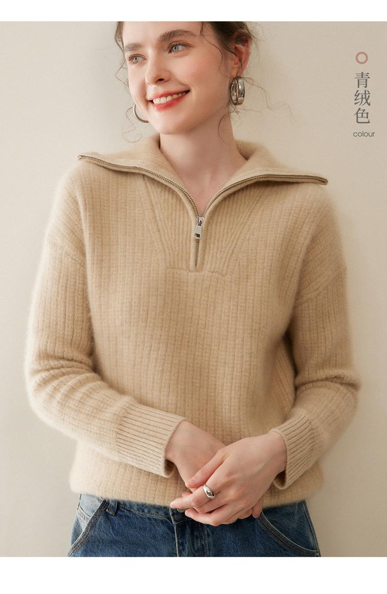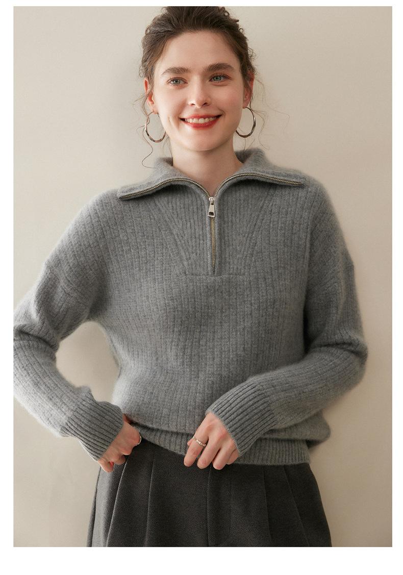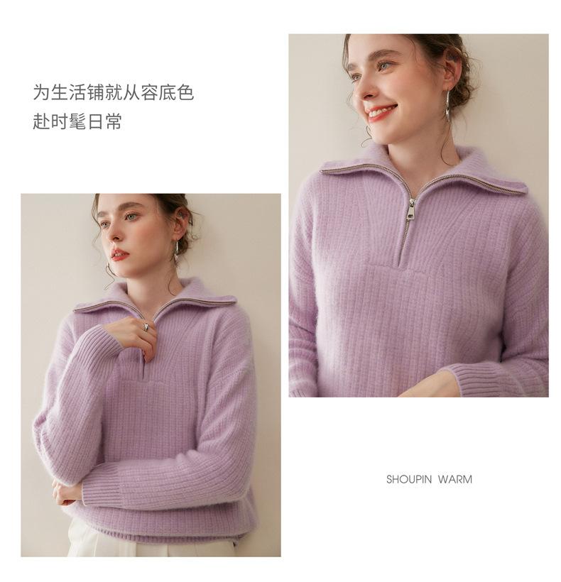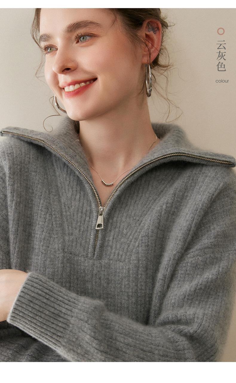 Cuello Alto Otoño e Invierno Nuevo 100% Cachemira Pura Tejido Camiseta Base para Mujer Manga Larga Suelta Versátil Suéter de Moda