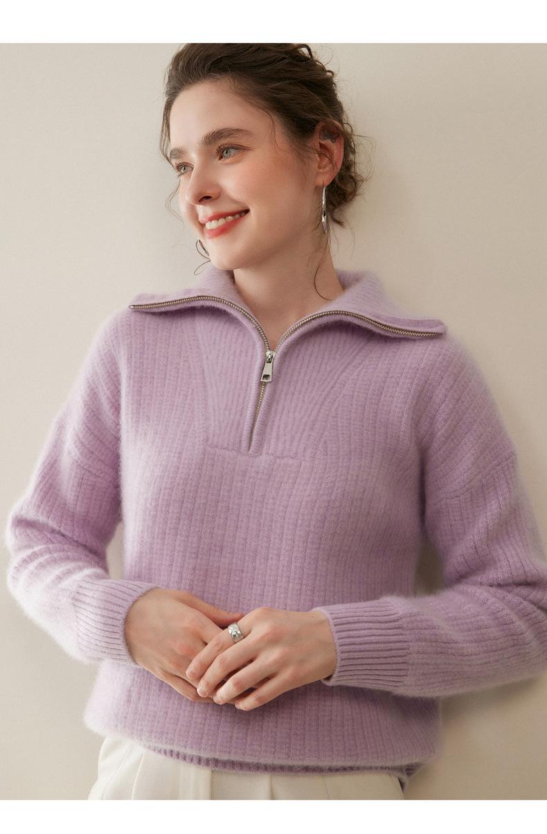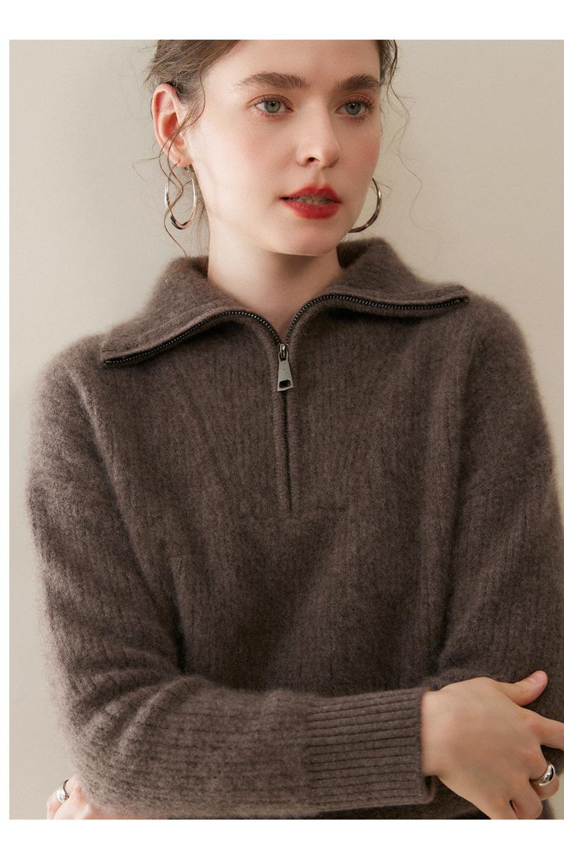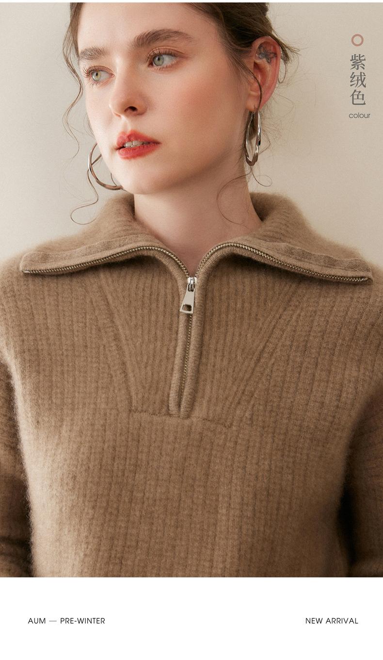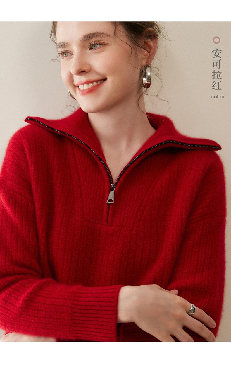 Cuello Alto Otoño e Invierno Nuevo 100% Cachemira Pura Tejido Camiseta Base para Mujer Manga Larga Suelta Versátil Suéter de Moda