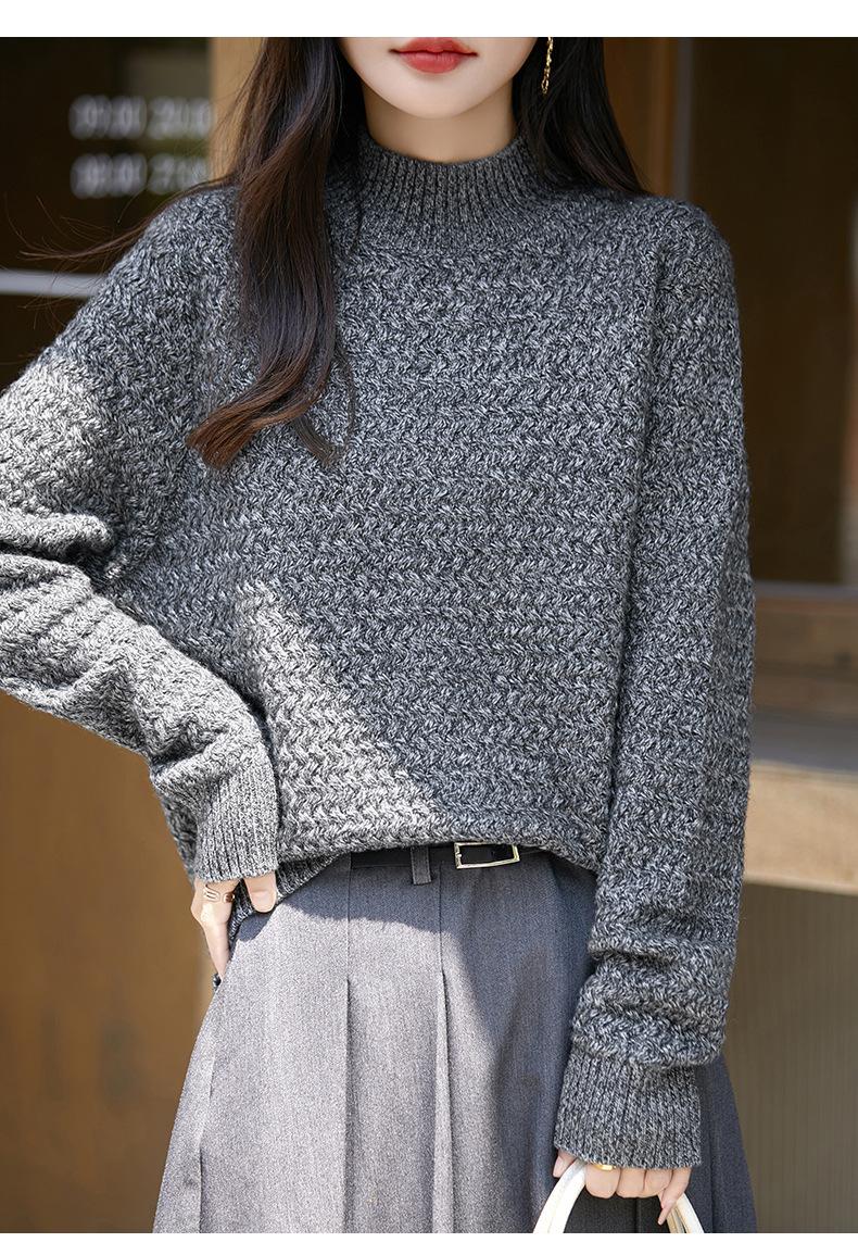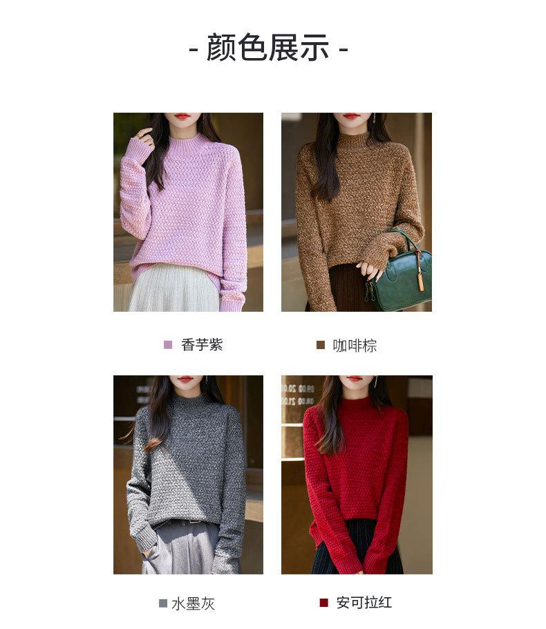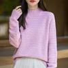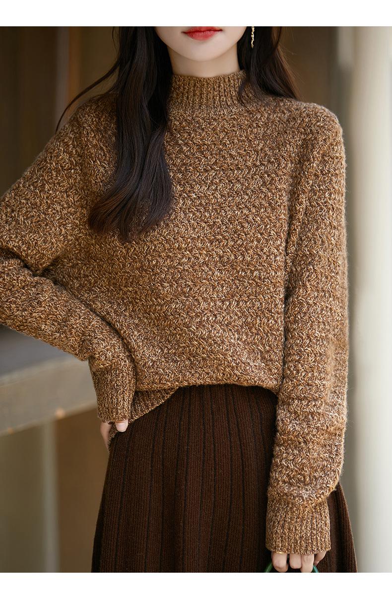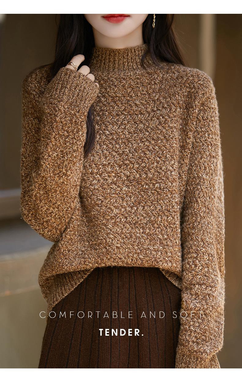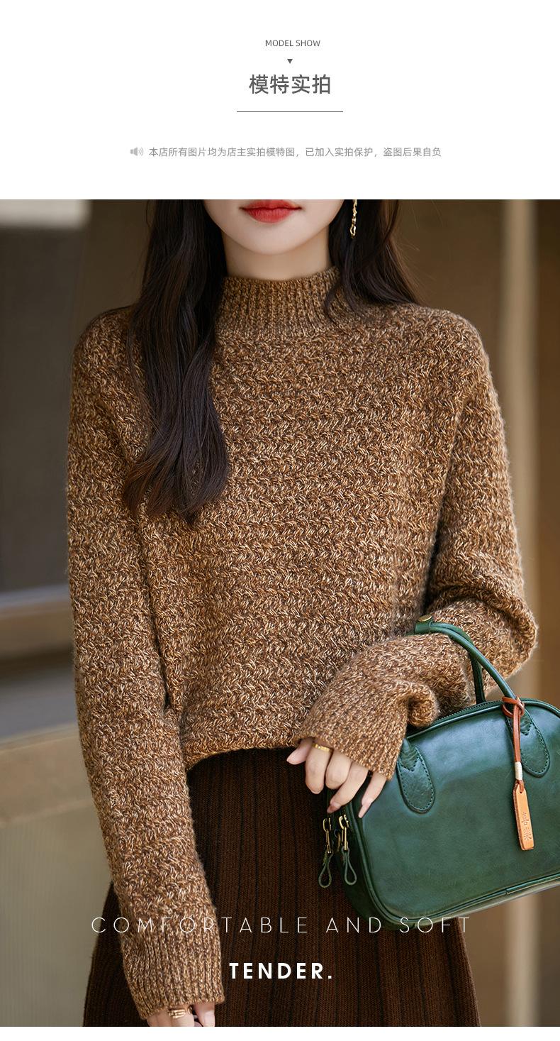 Otoño/Invierno 2025 Nueva Ropa de Punto de Lana para Mujer Marl Tejido Cesta Jersey de Cuello Semi-Alto Color Sólido Casual Suelto Suéter Base