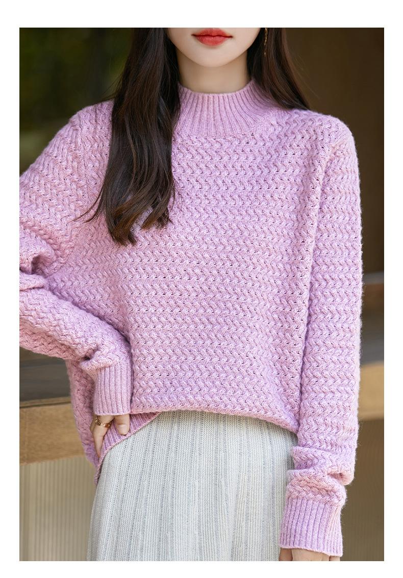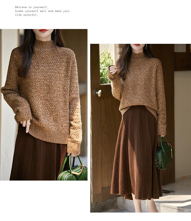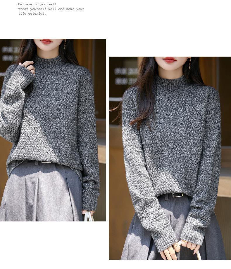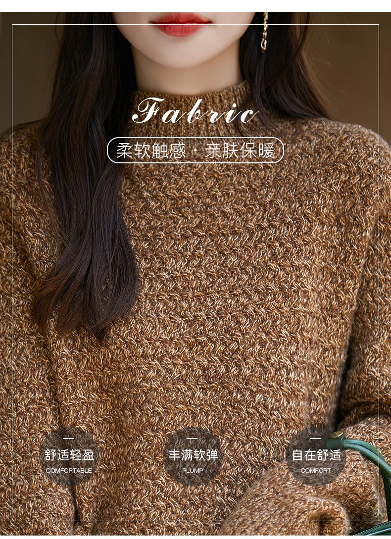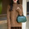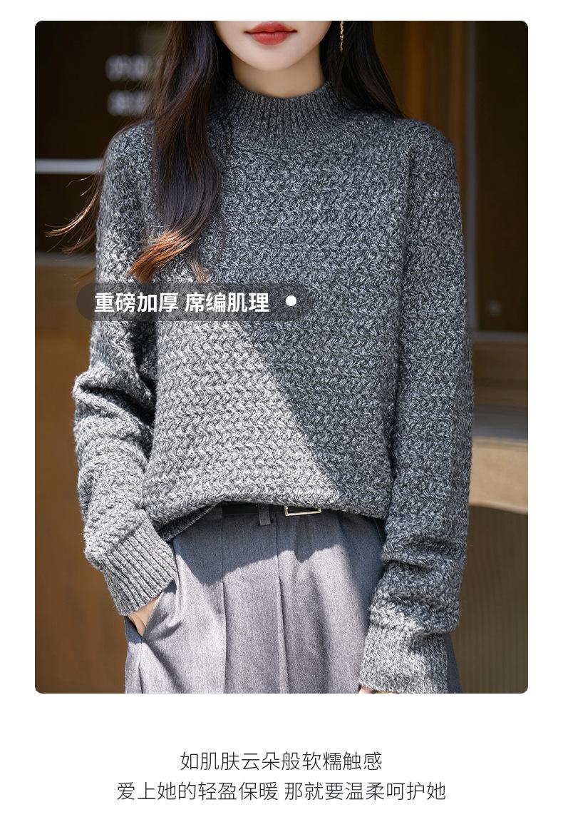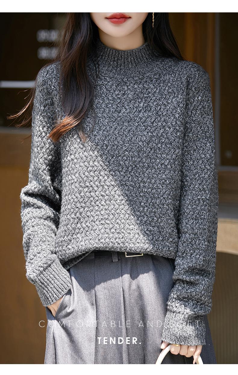 Otoño/Invierno 2025 Nueva Ropa de Punto de Lana para Mujer Marl Tejido Cesta Jersey de Cuello Semi-Alto Color Sólido Casual Suelto Suéter Base