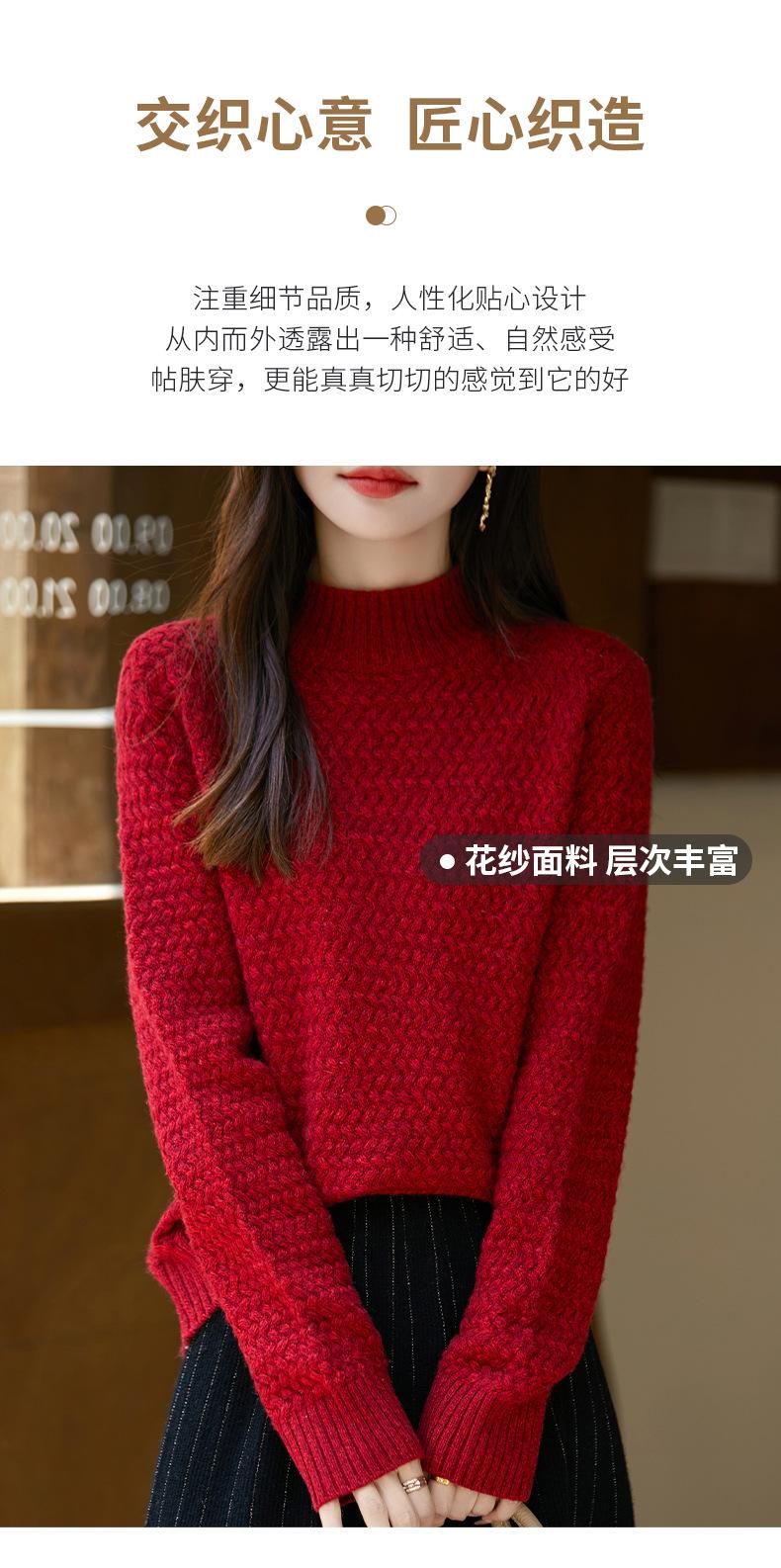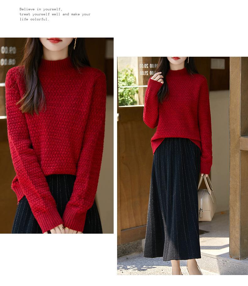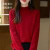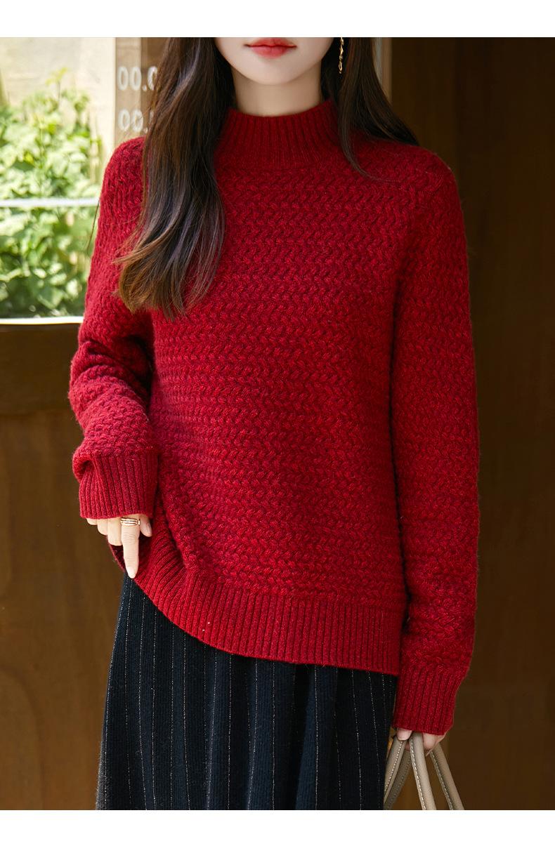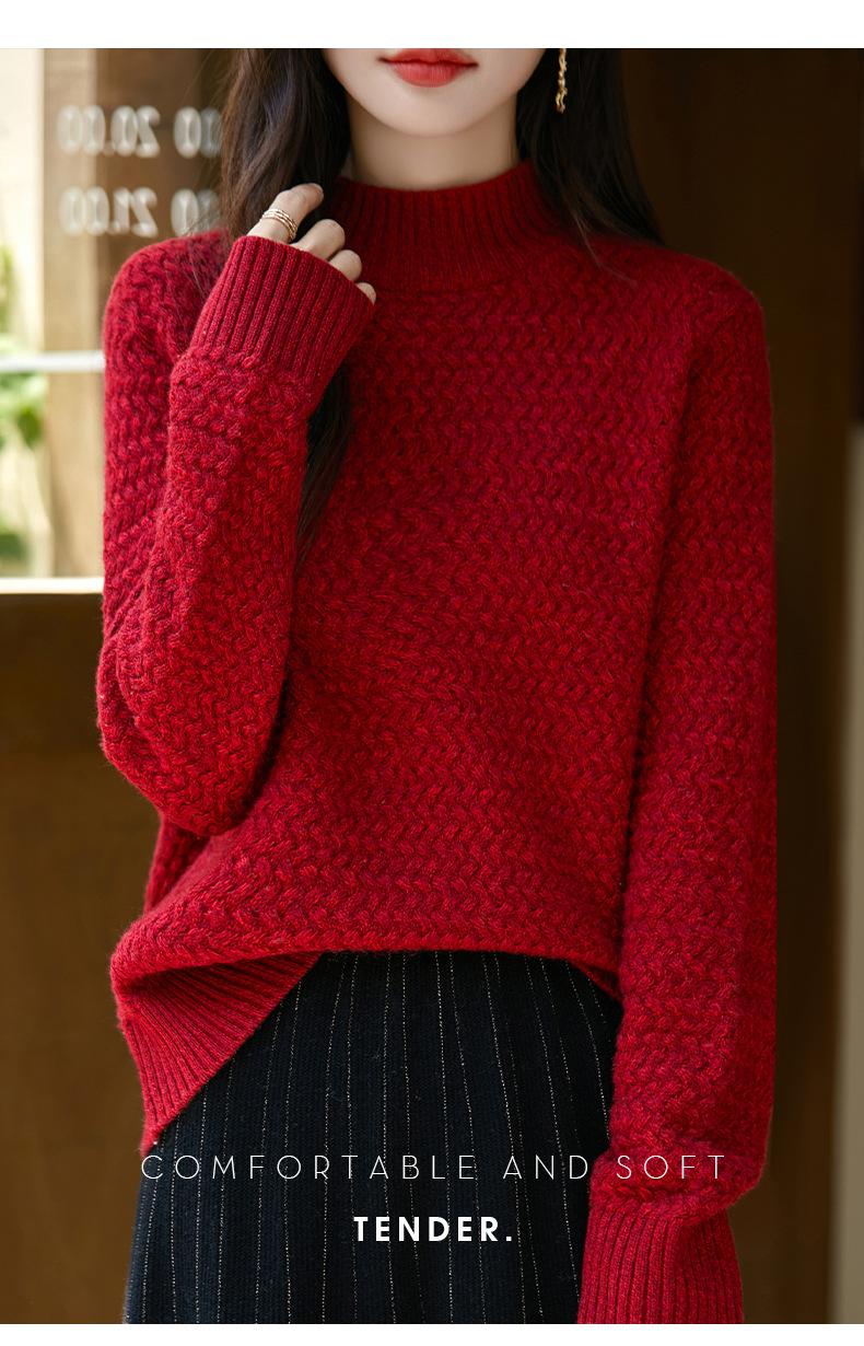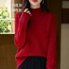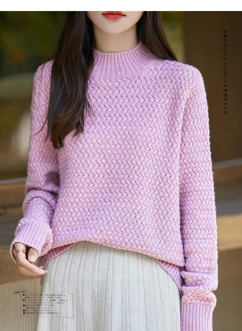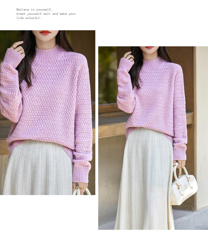 Otoño/Invierno 2025 Nueva Ropa de Punto de Lana para Mujer Marl Tejido Cesta Jersey de Cuello Semi-Alto Color Sólido Casual Suelto Suéter Base