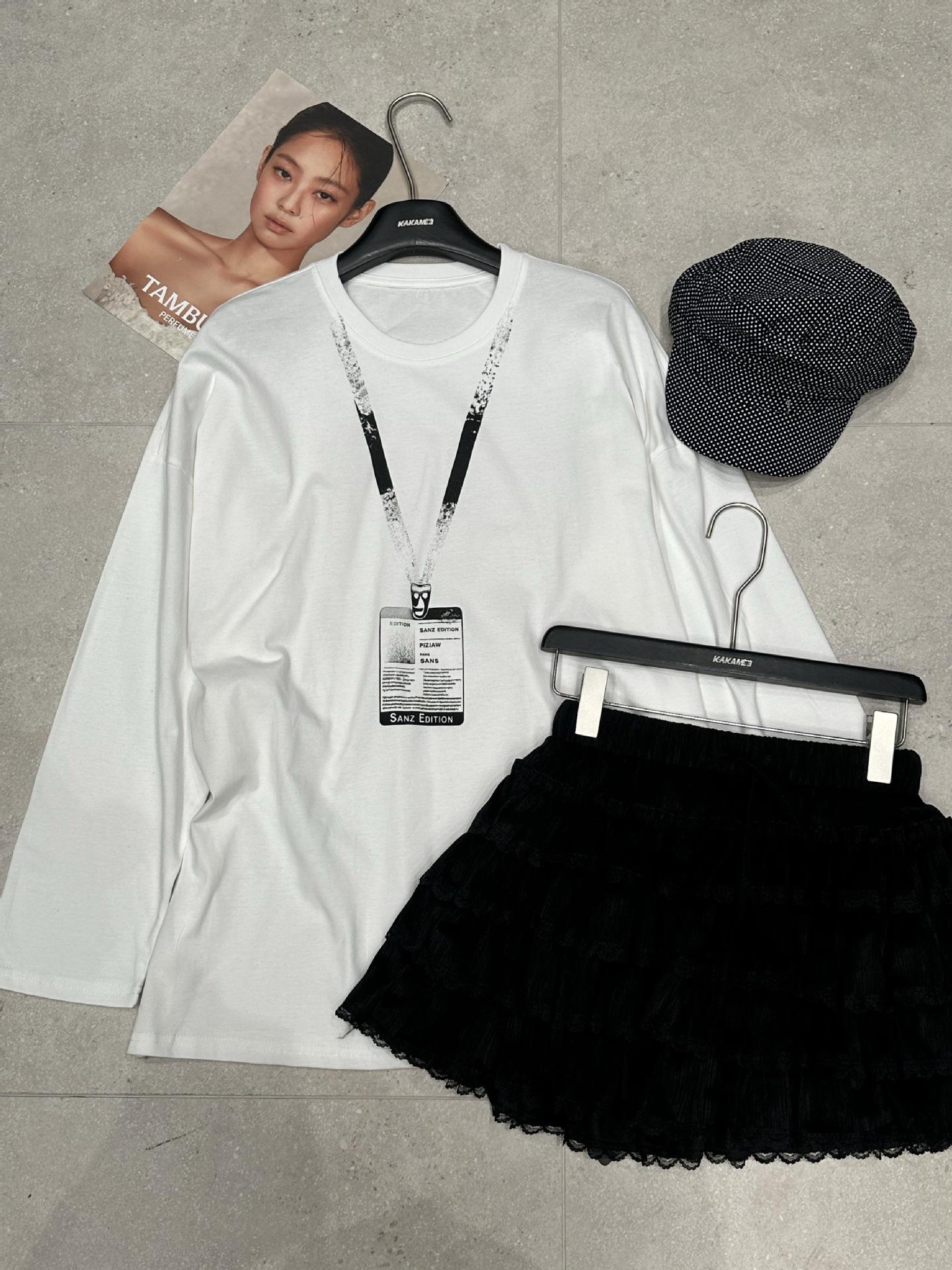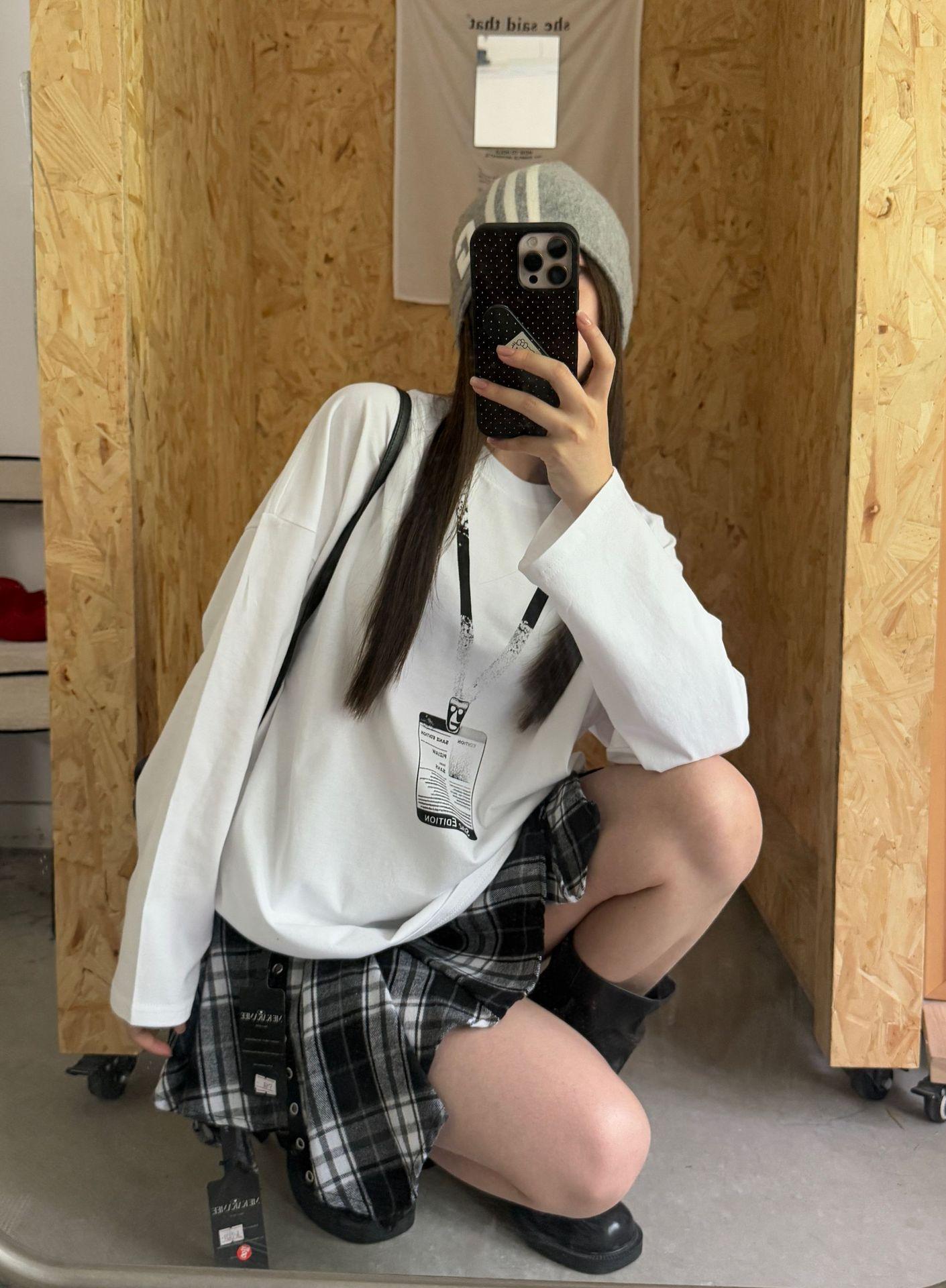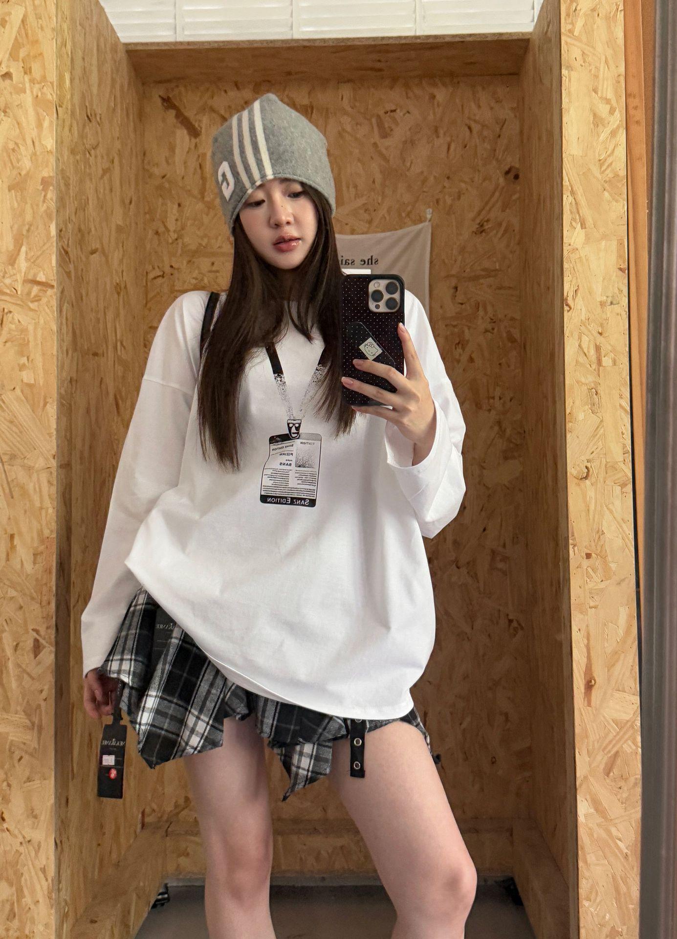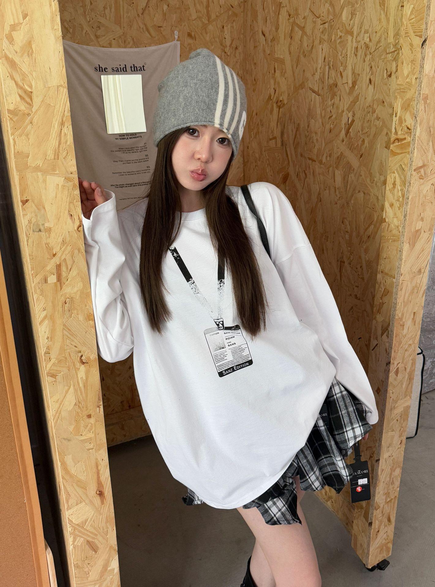 ME KAKAMEE trece líneas otoño americano boceto etiqueta con nombre pintura en aerosol casual simple oversized camiseta de manga larga mujer 8906