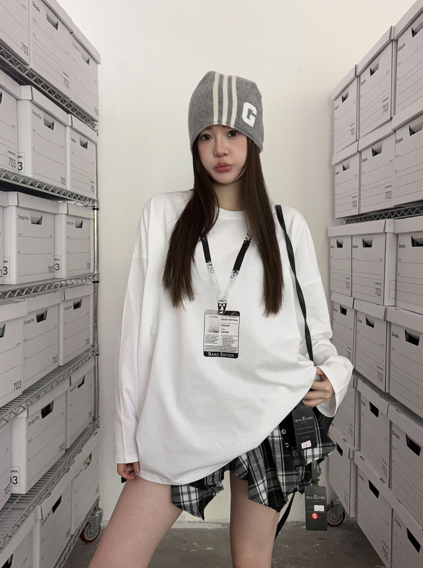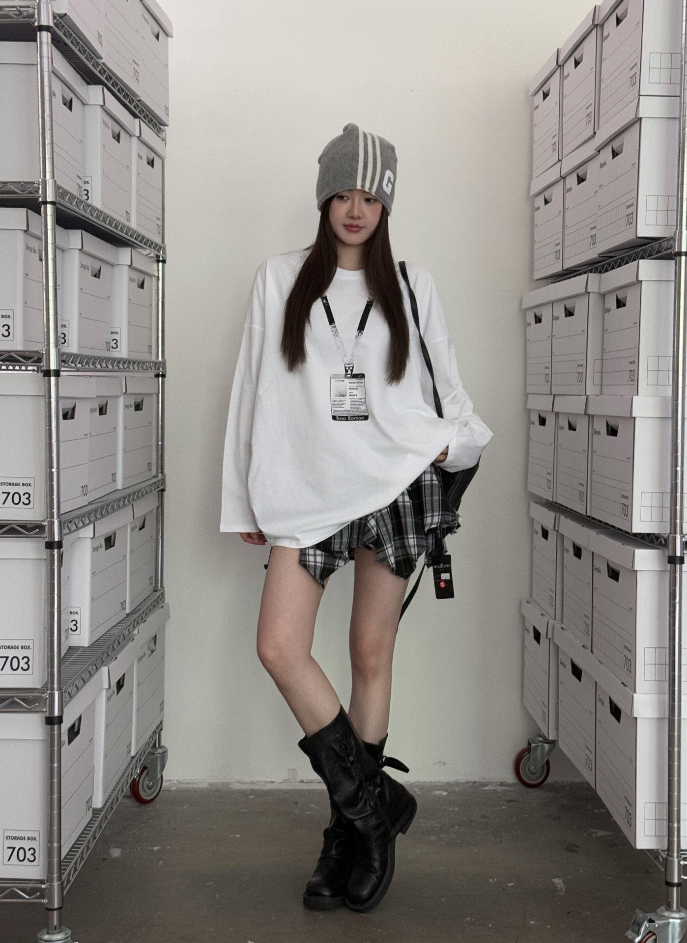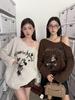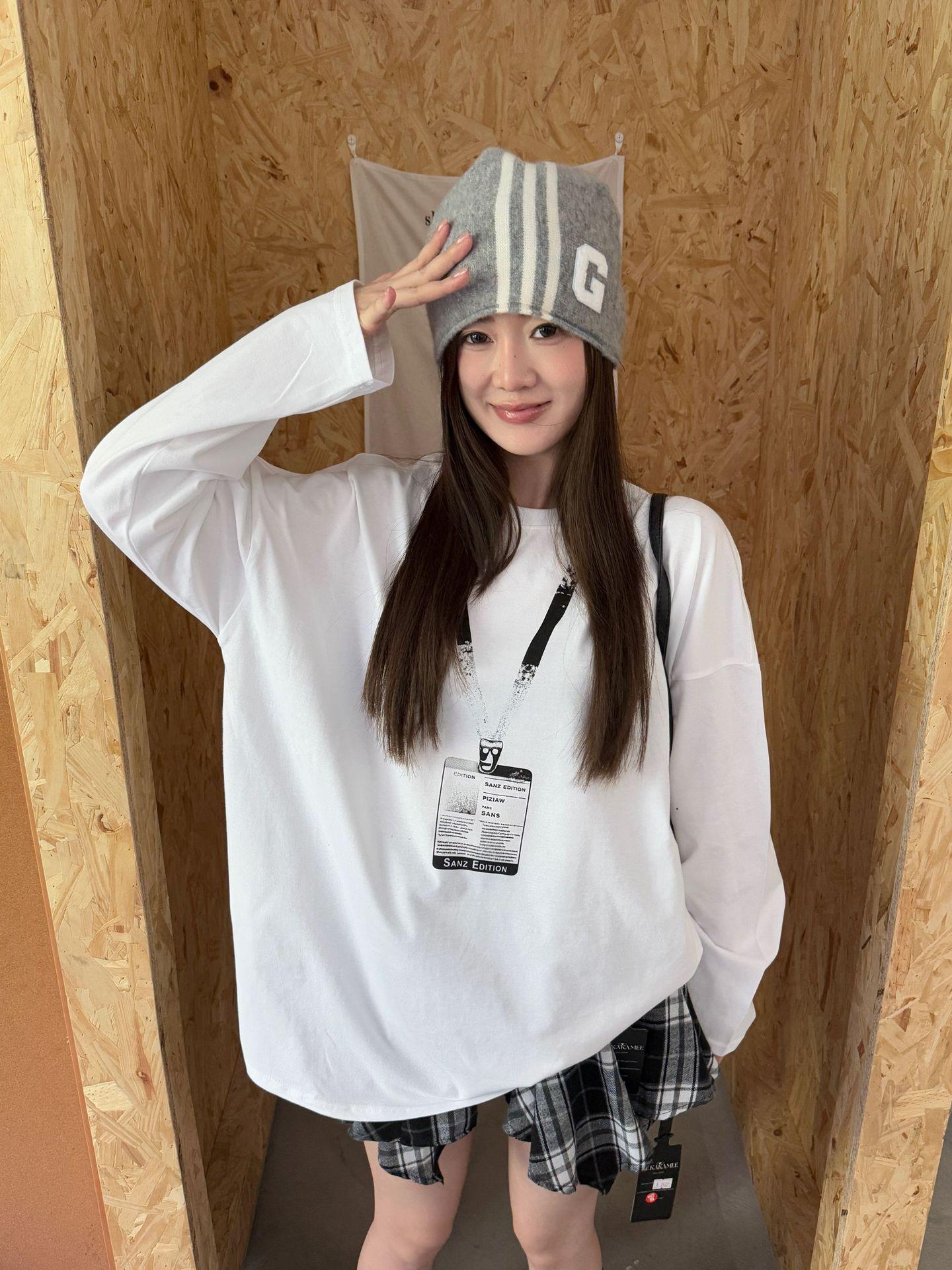 ME KAKAMEE trece líneas otoño americano boceto etiqueta con nombre pintura en aerosol casual simple oversized camiseta de manga larga mujer 8906