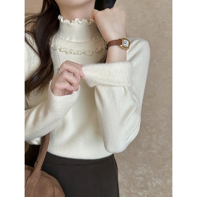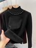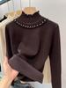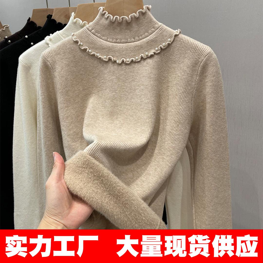 Suéter de Terciopelo de Cuello Alto Medio para Mujer Terciopelo Todo en Uno Invierno 2025 Nuevo Estilo Encaje Tejido Grueso Estilo Interior Camisa Básica