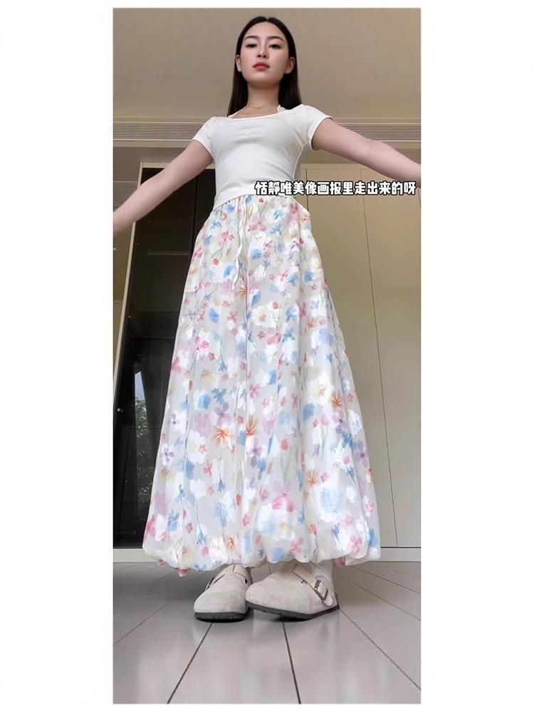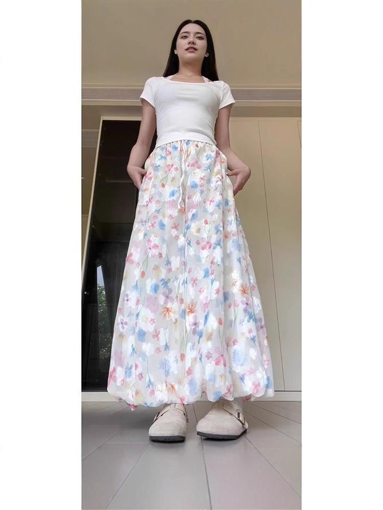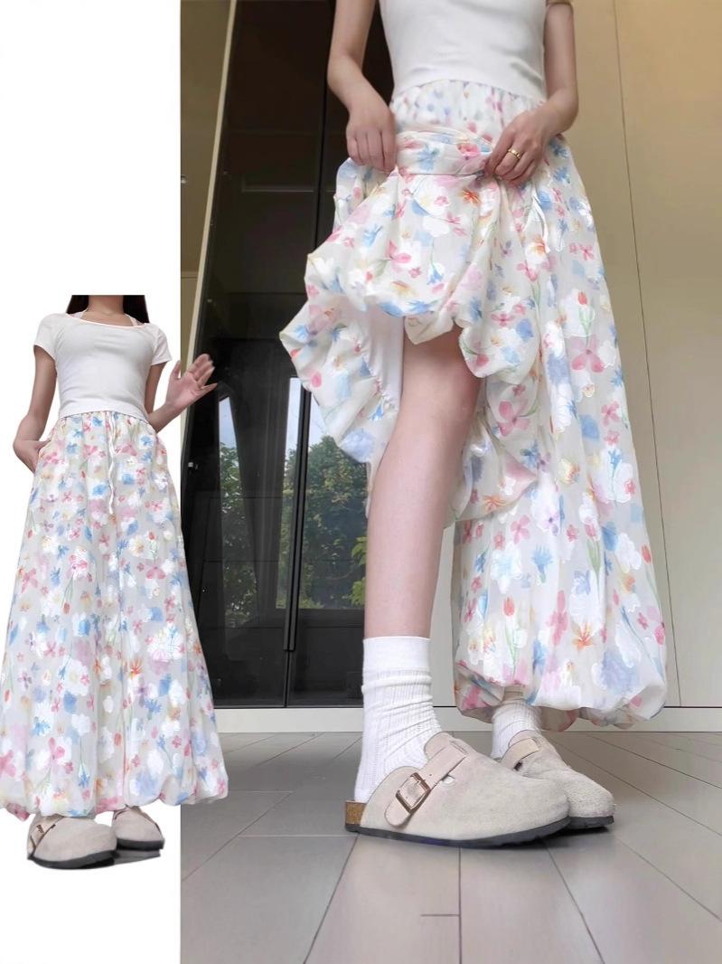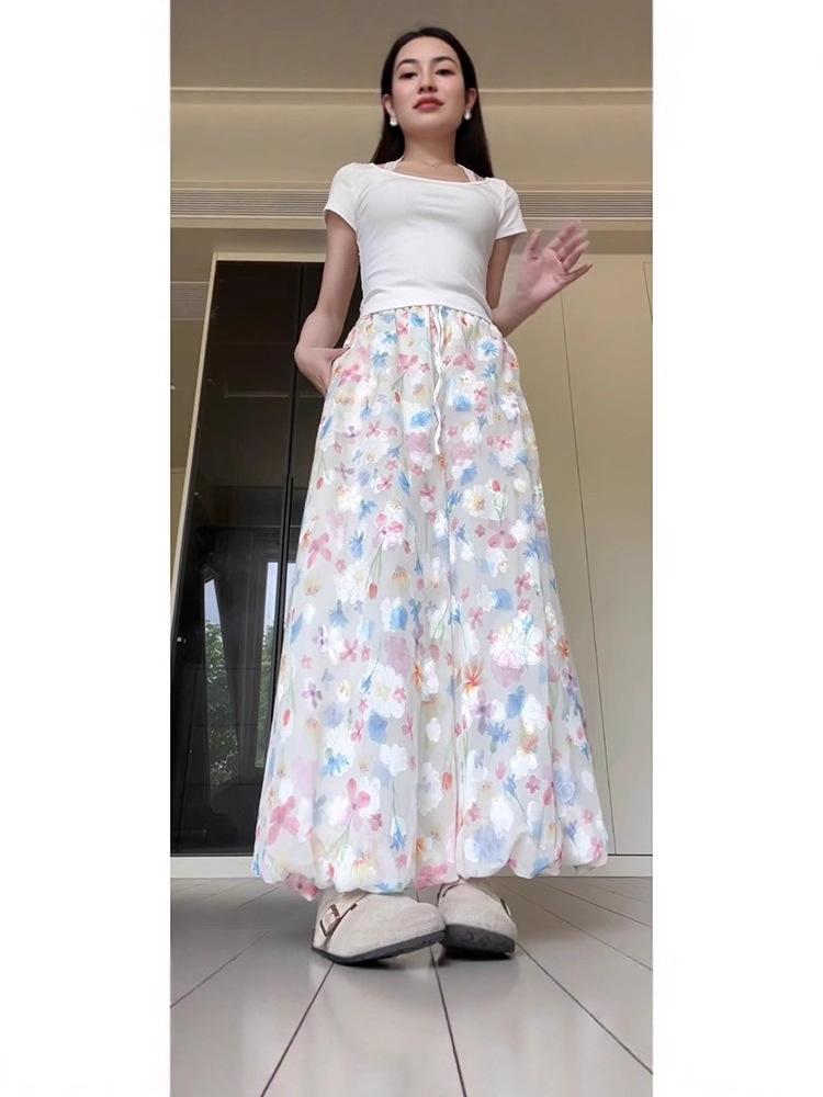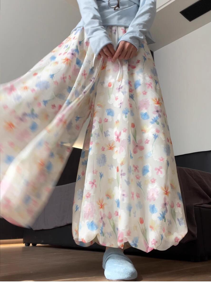Pantalones florales tipo tulipán estilo coreano para mujer 2025 verano nuevo diseño para persona pequeña sentido suelto drapeado casual pantalones de pierna ancha