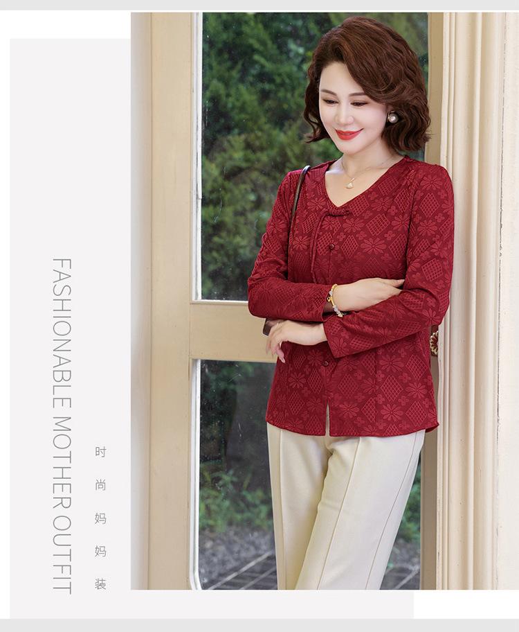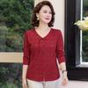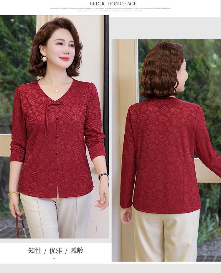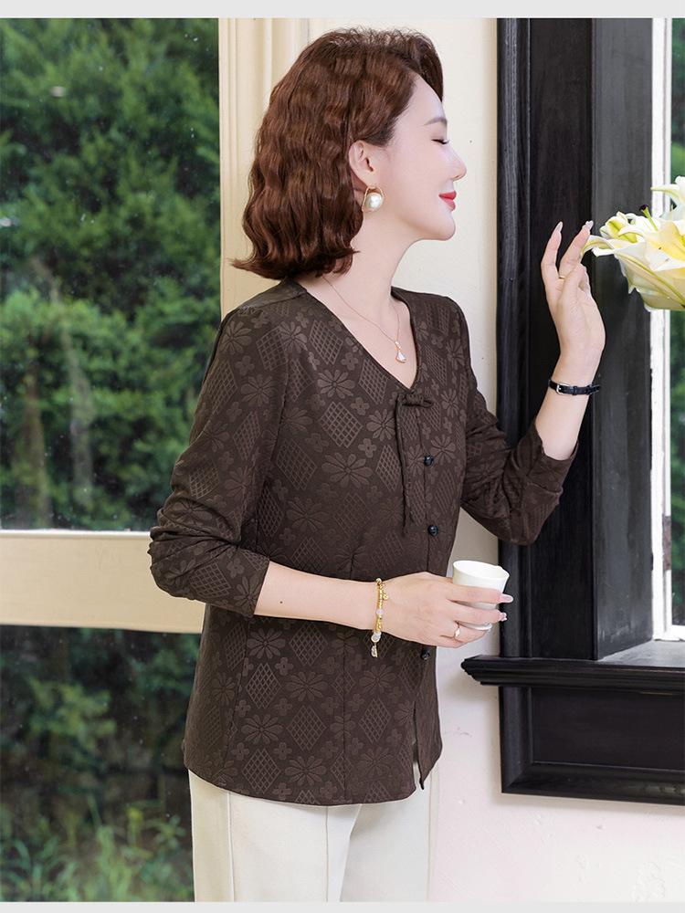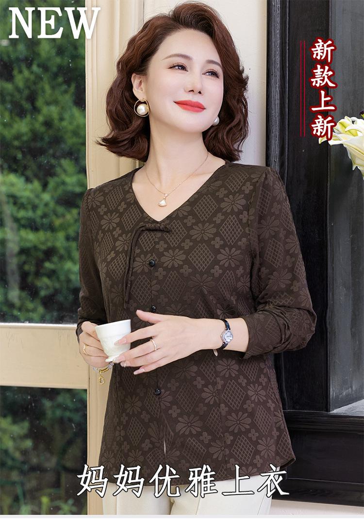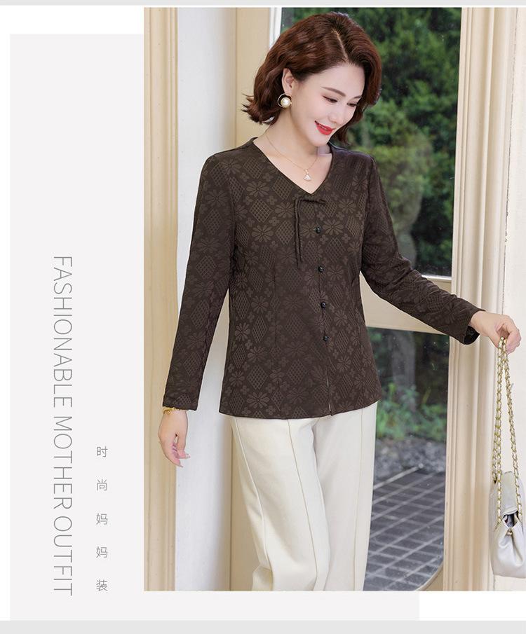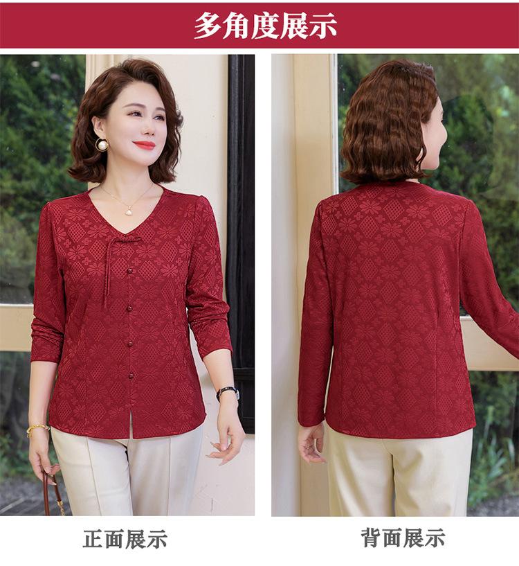 Moda Otoñal para Mamá Camiseta de Manga Larga Top 2025 Nuevo Blusa Jacquard Elegante de Capa Base para Mujeres de Mediana Edad y Mayores
