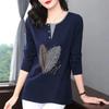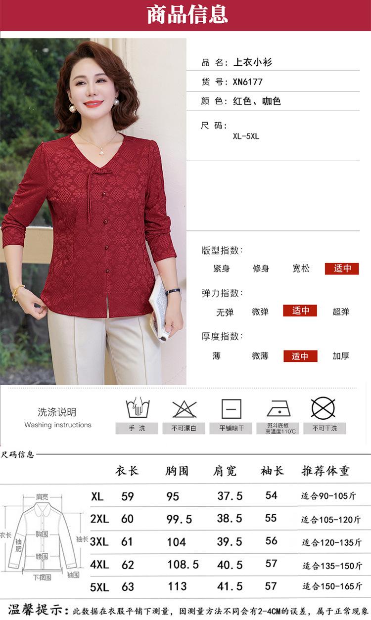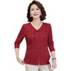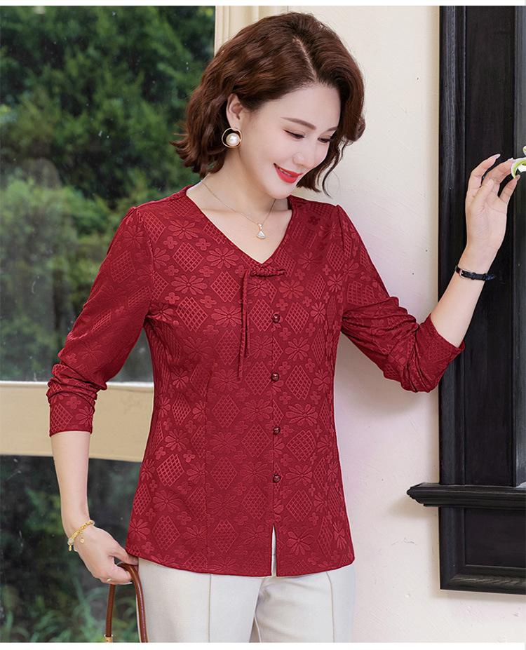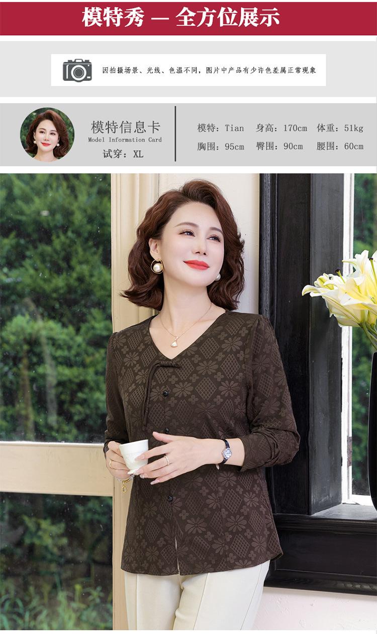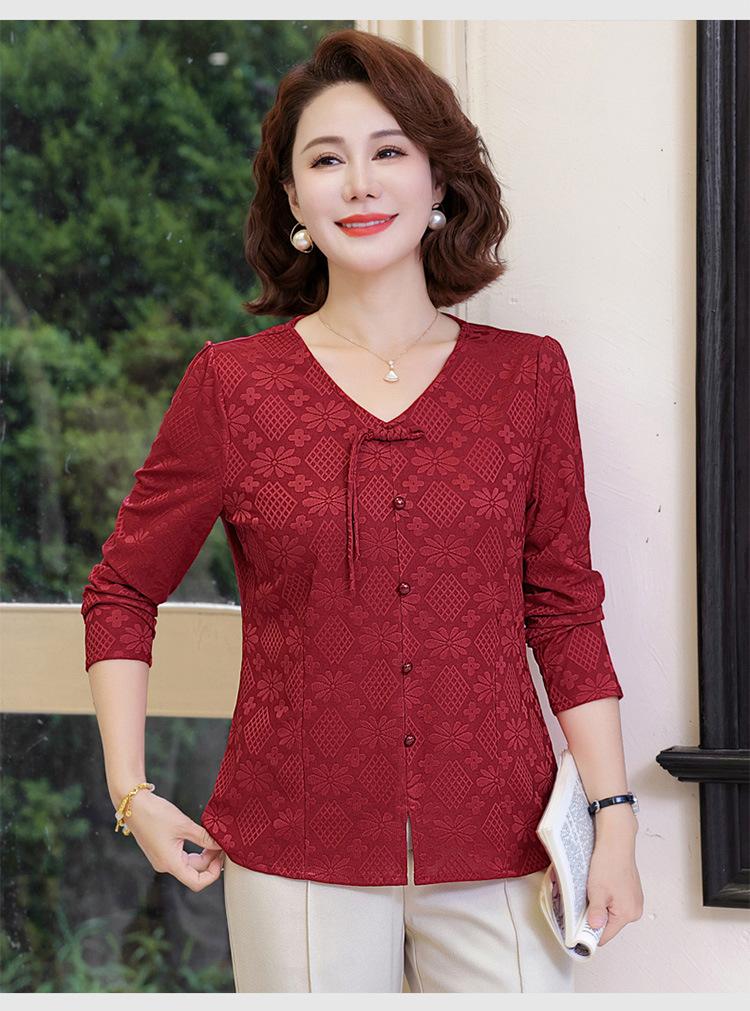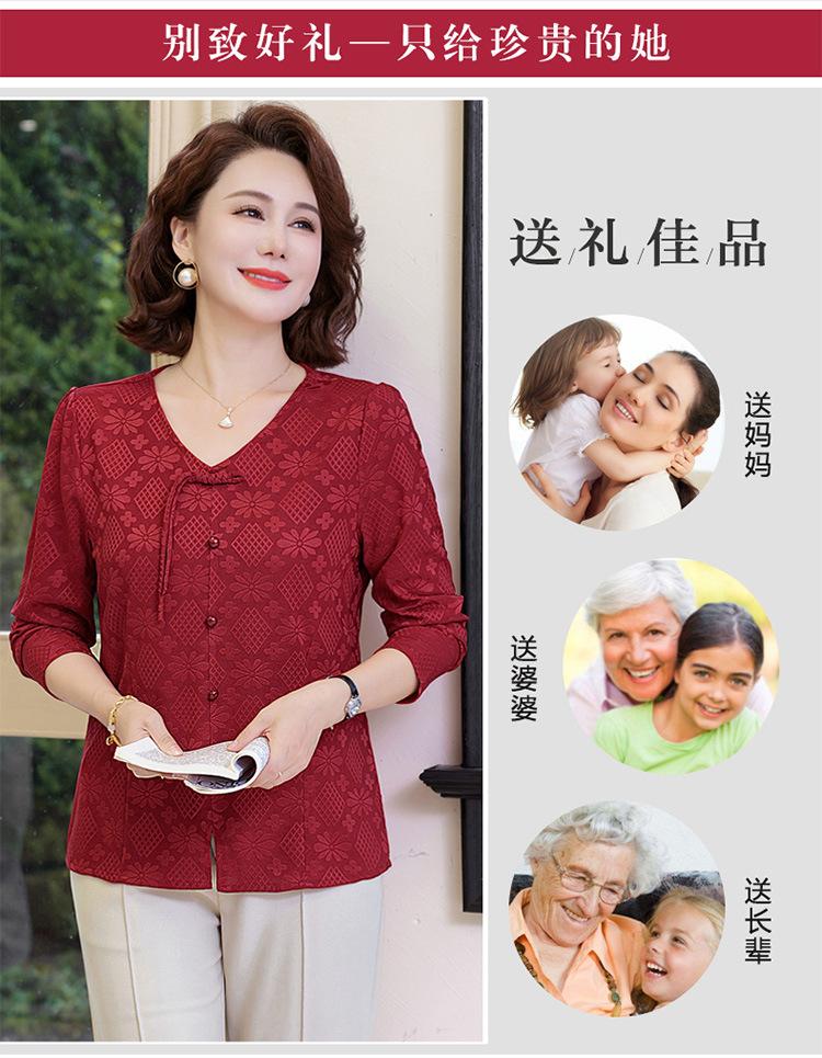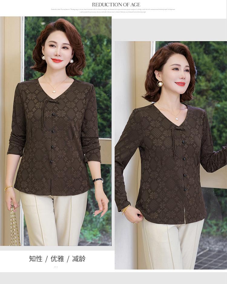Moda Otoñal para Mamá Camiseta de Manga Larga Top 2025 Nuevo Blusa Jacquard Elegante de Capa Base para Mujeres de Mediana Edad y Mayores