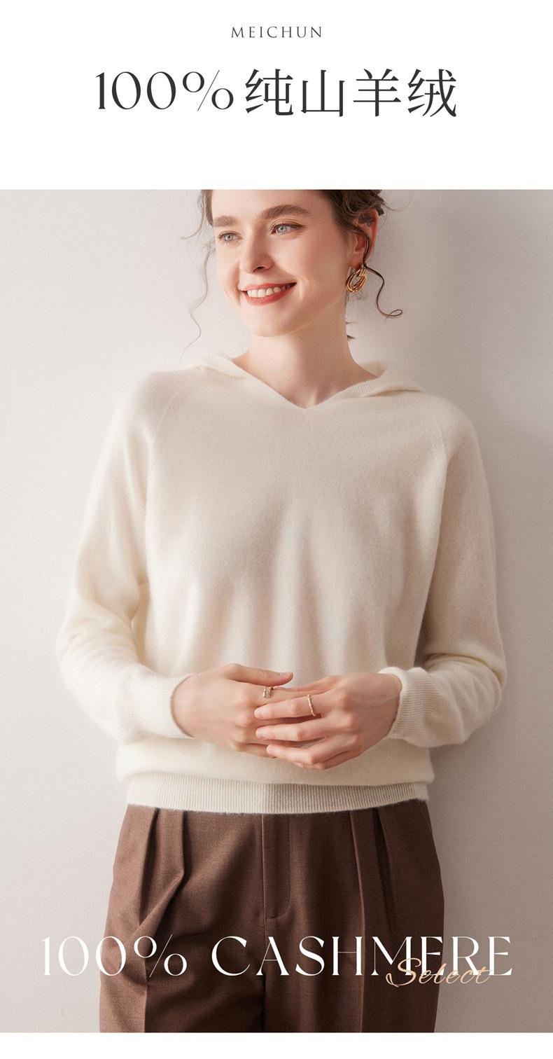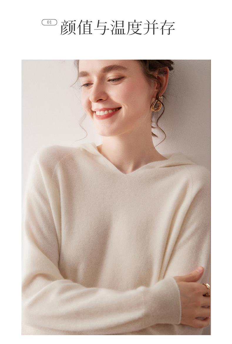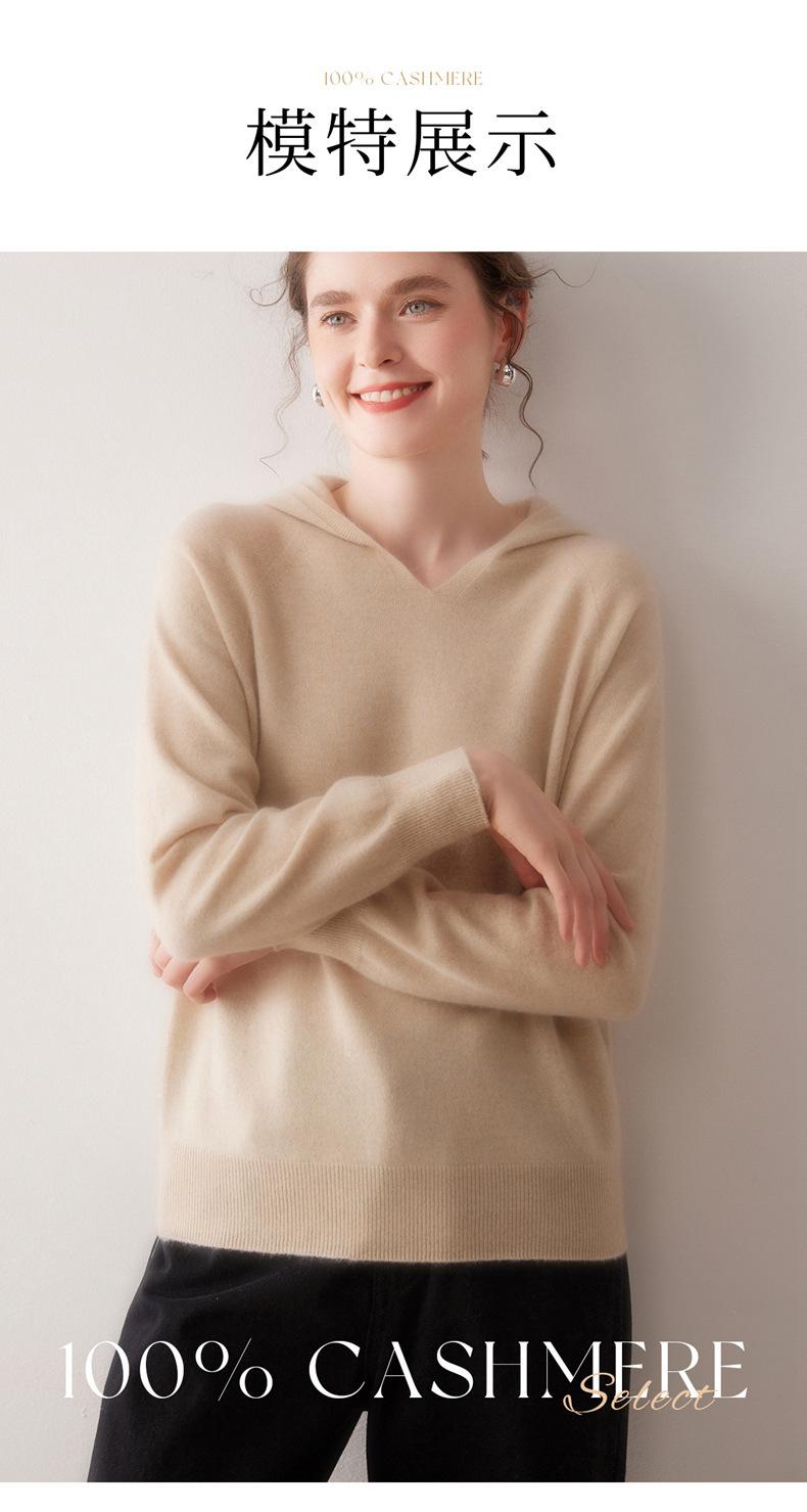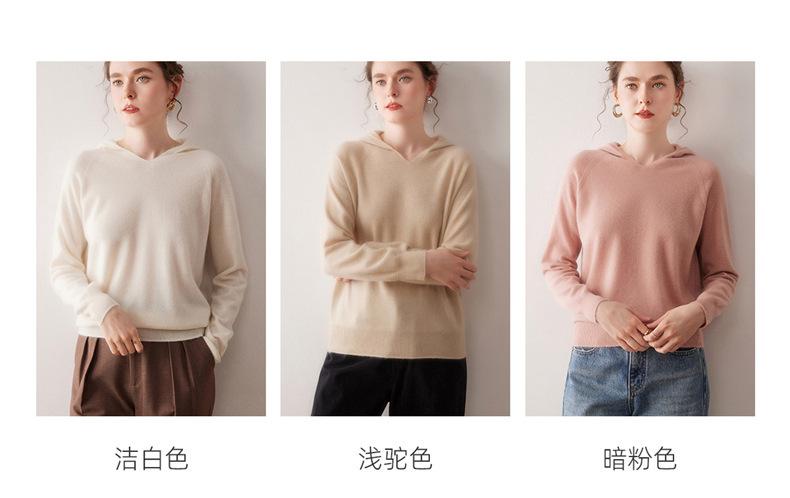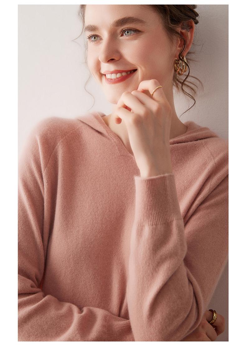 Suéter de Cachemira Mujer 100% Cachemira Pura Otoño e Invierno Nueva Sudadera con Capucha Manga Larga Jersey Tejido Camiseta Base Suéter