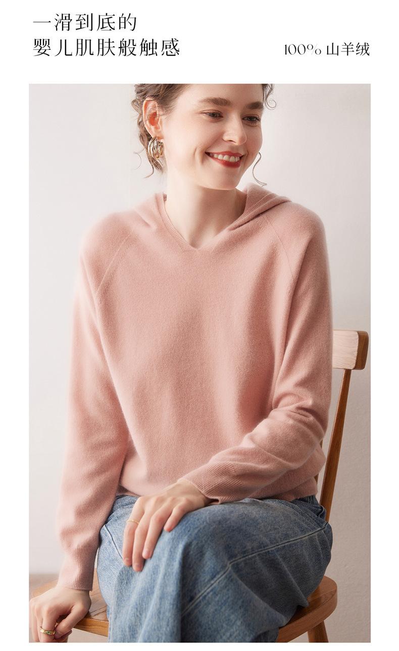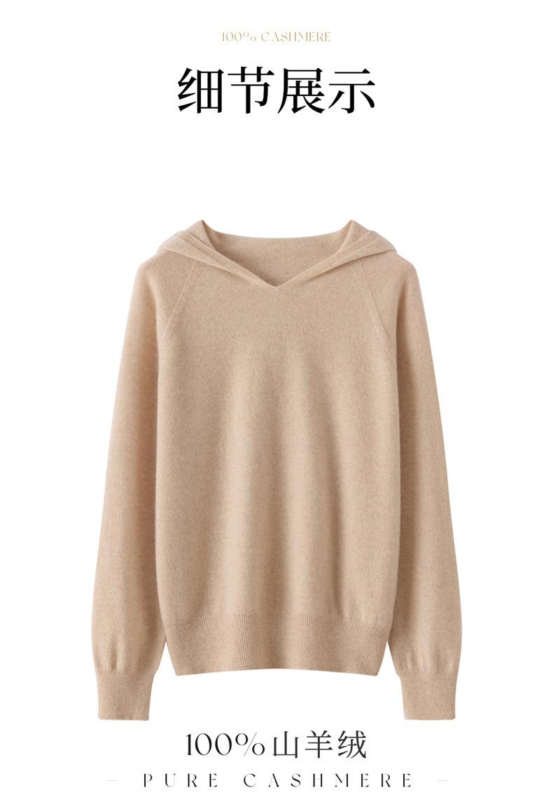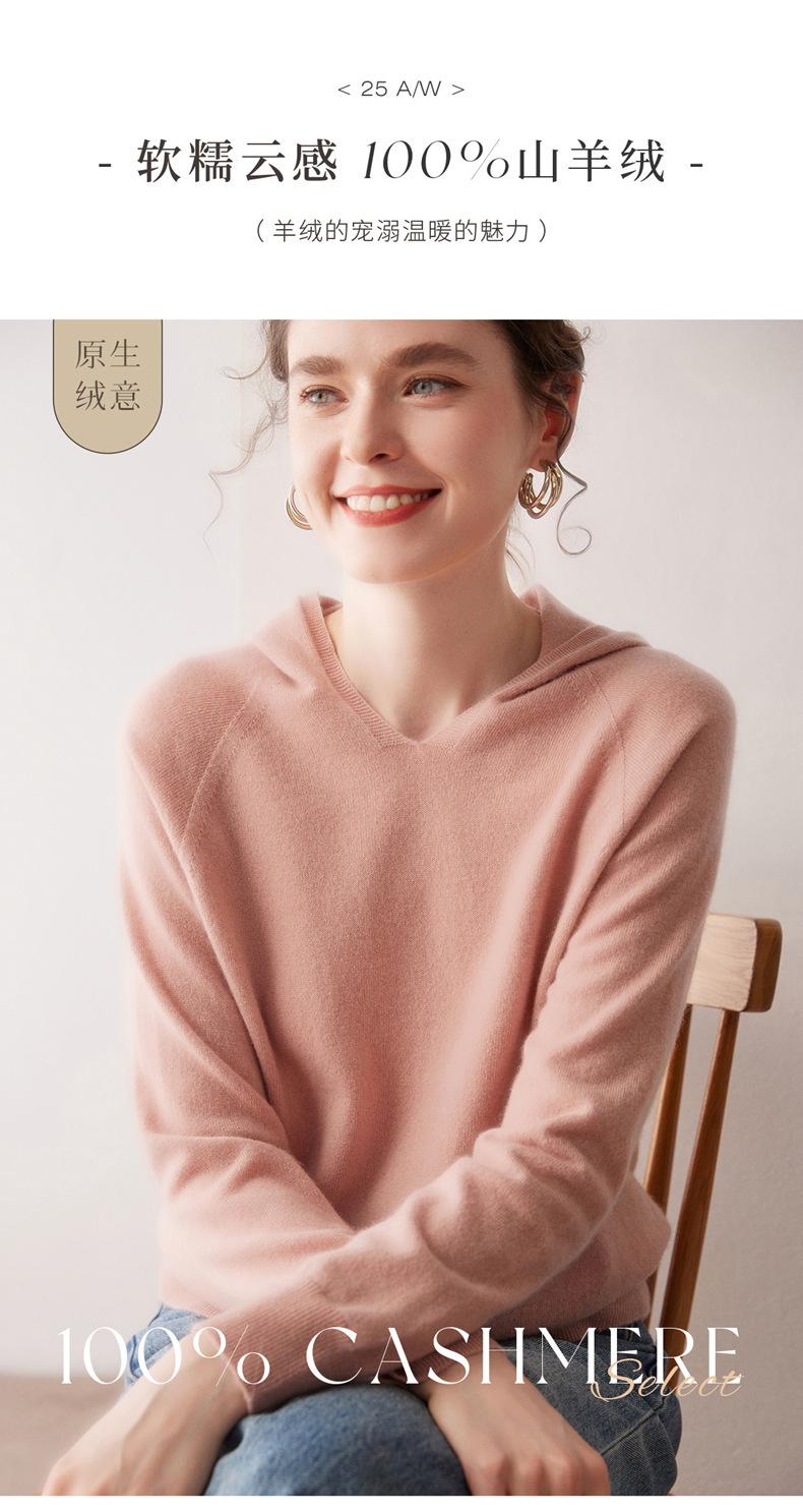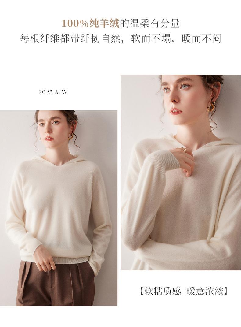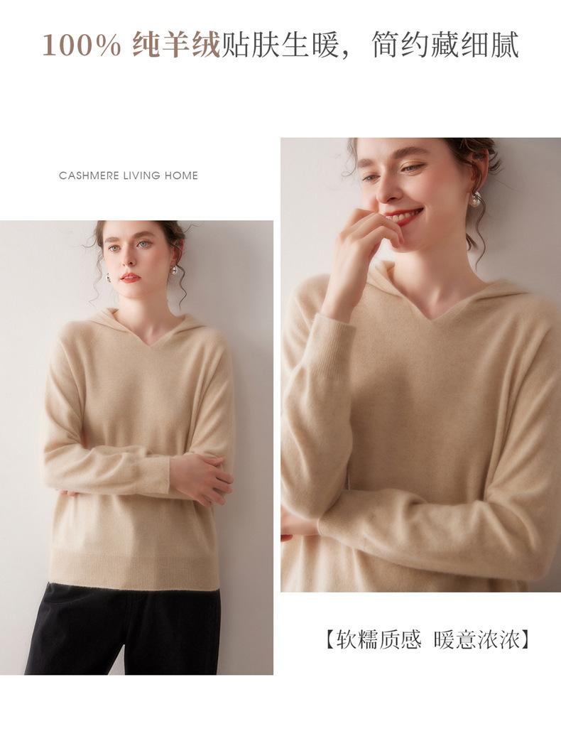 Suéter de Cachemira Mujer 100% Cachemira Pura Otoño e Invierno Nueva Sudadera con Capucha Manga Larga Jersey Tejido Camiseta Base Suéter