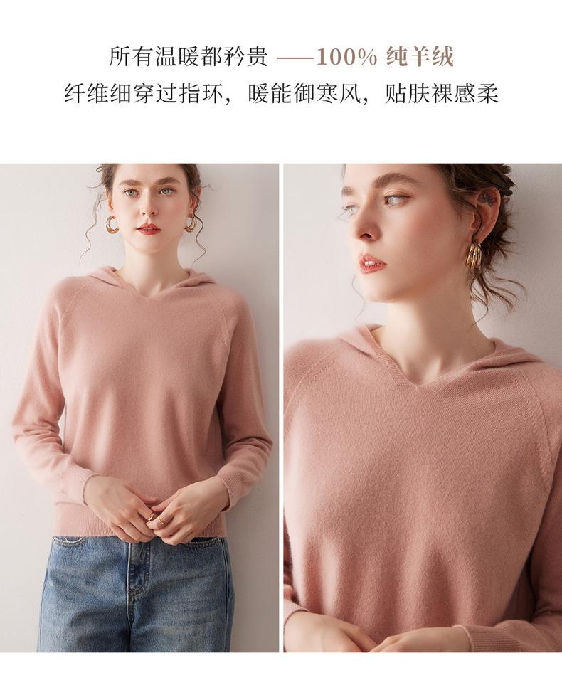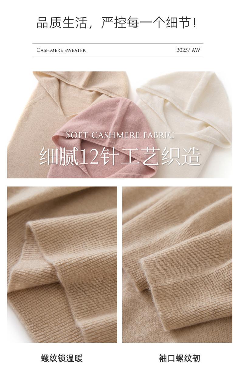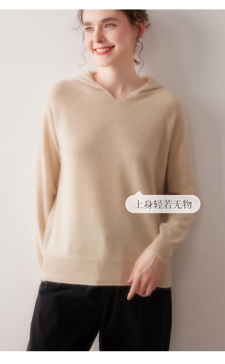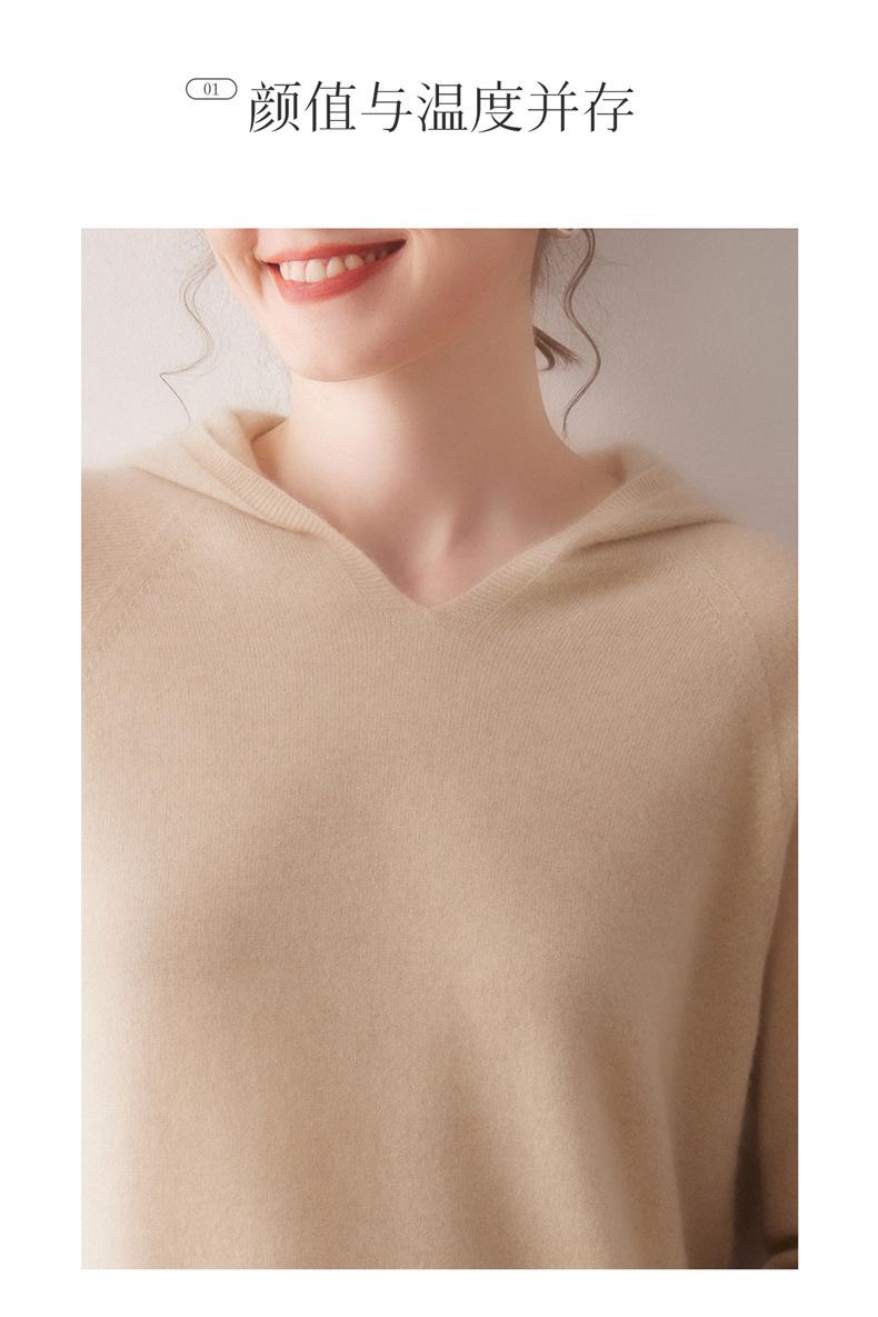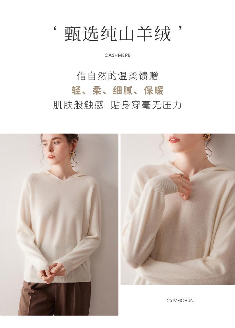 Suéter de Cachemira Mujer 100% Cachemira Pura Otoño e Invierno Nueva Sudadera con Capucha Manga Larga Jersey Tejido Camiseta Base Suéter