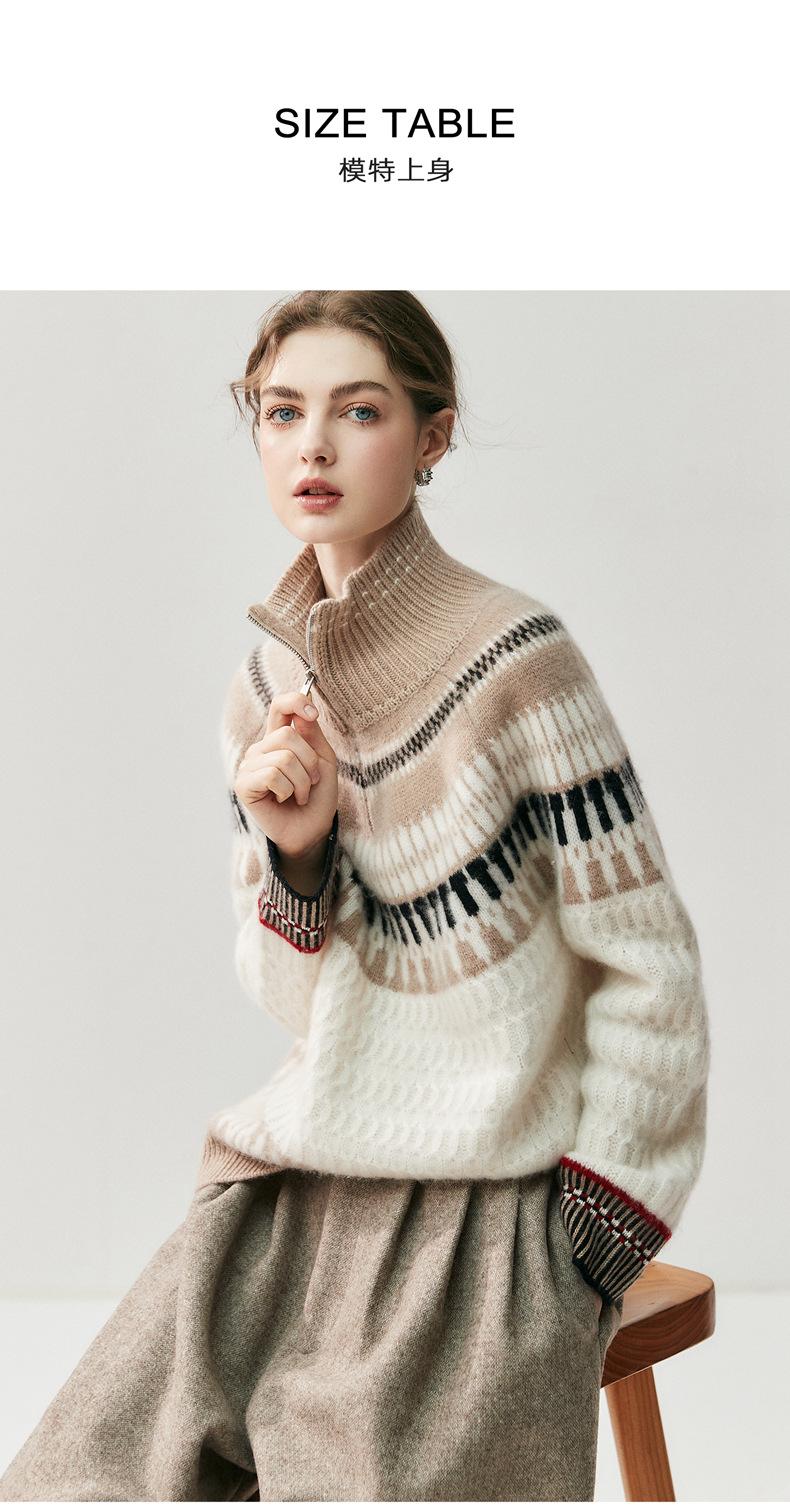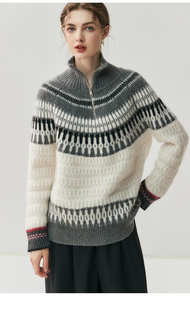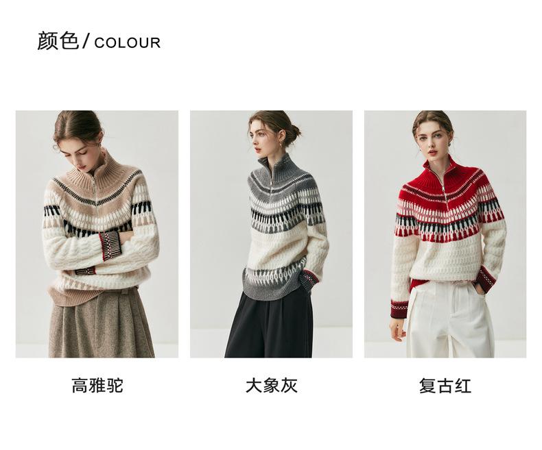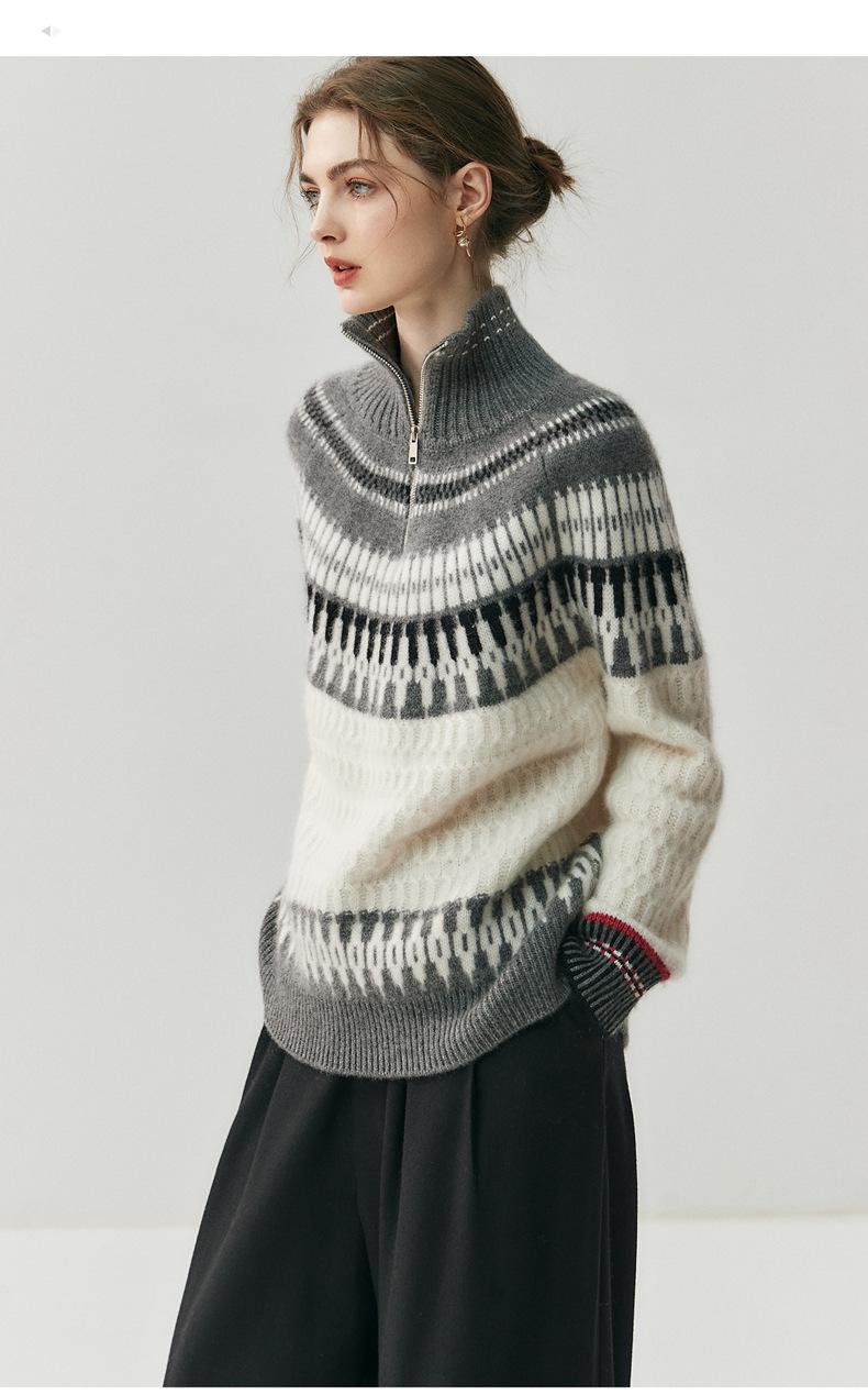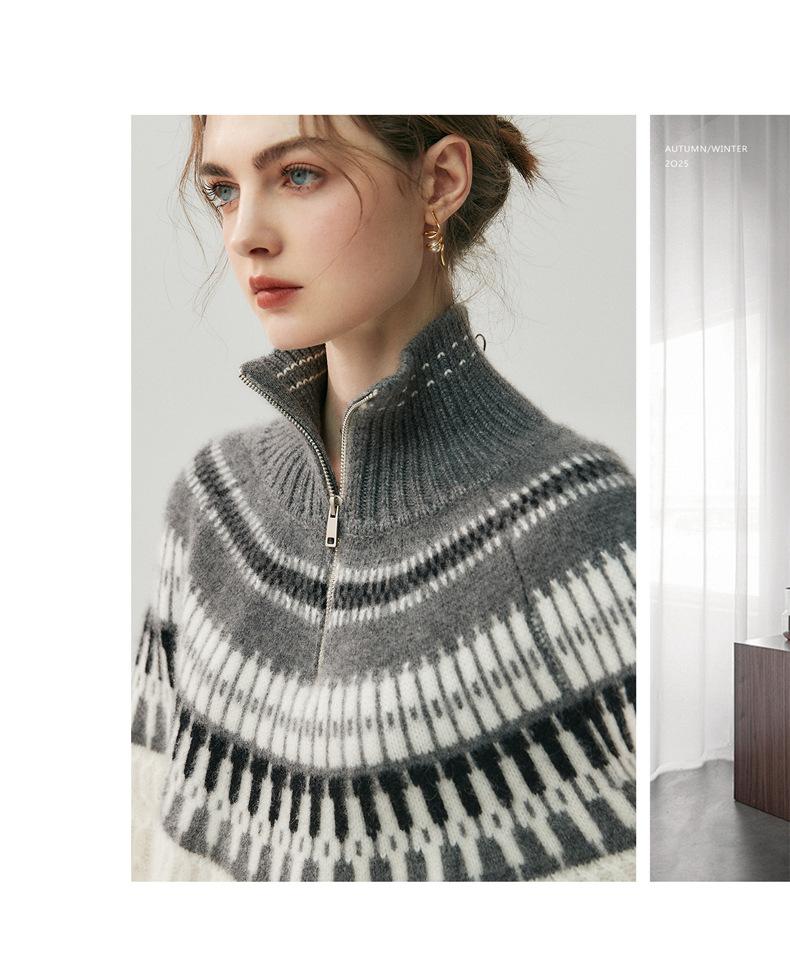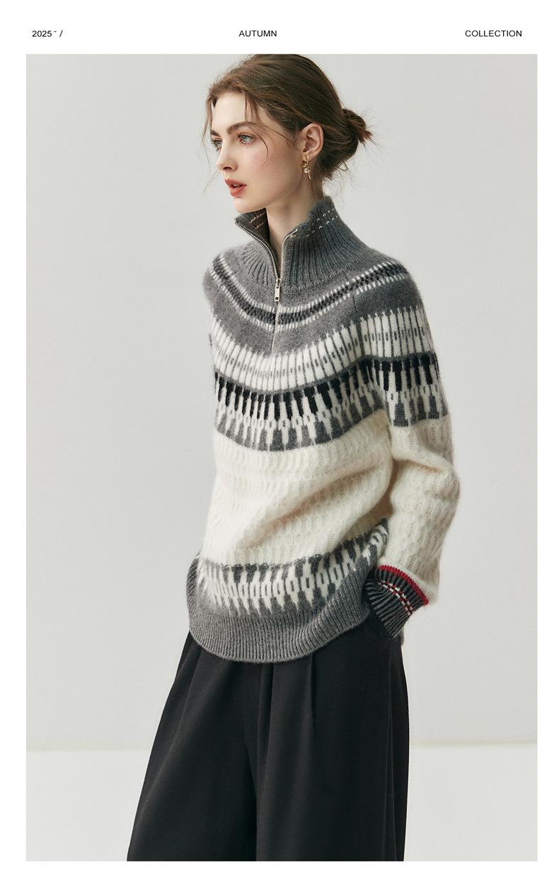 550g~Suéter de Cachemira Jacquard Temperamento Suéter Grueso Holgado para Mujer con Media Cremallera 2025 Otoño/Invierno Nuevo Suéter Tejido