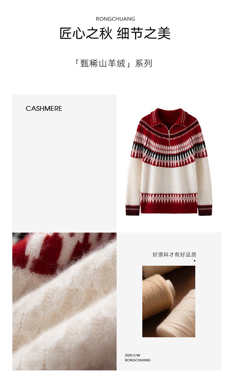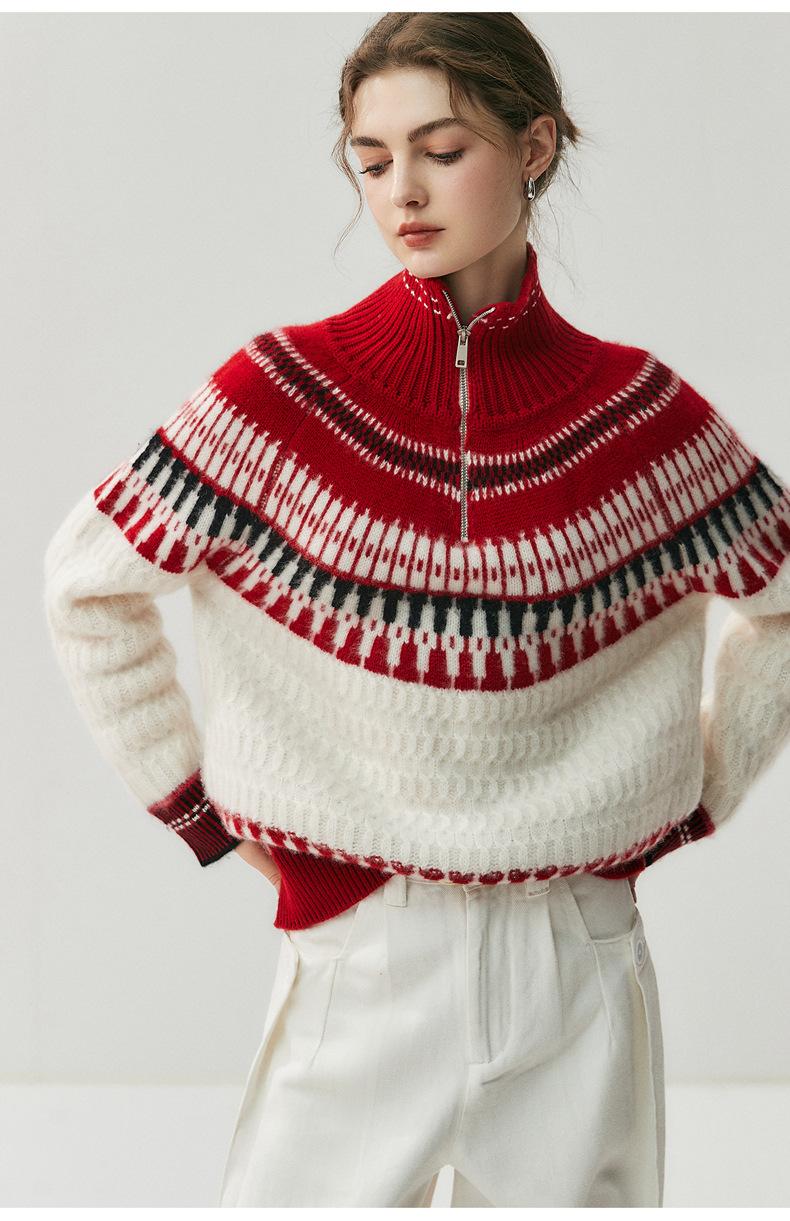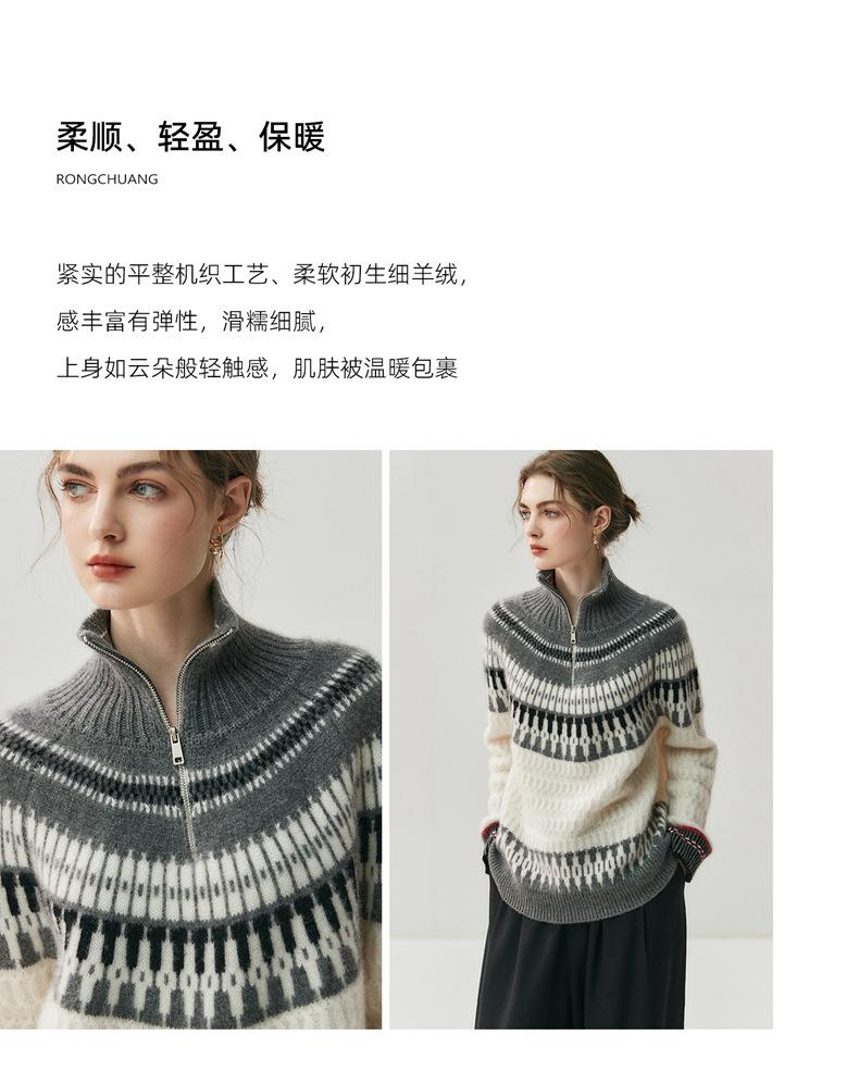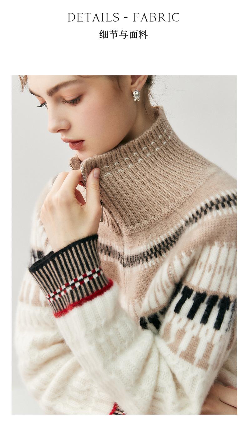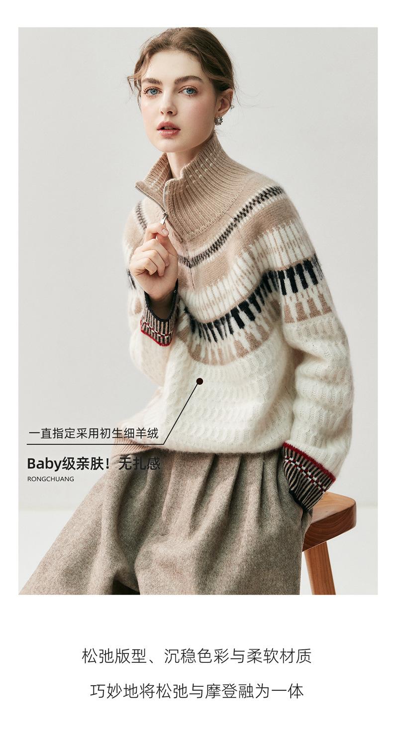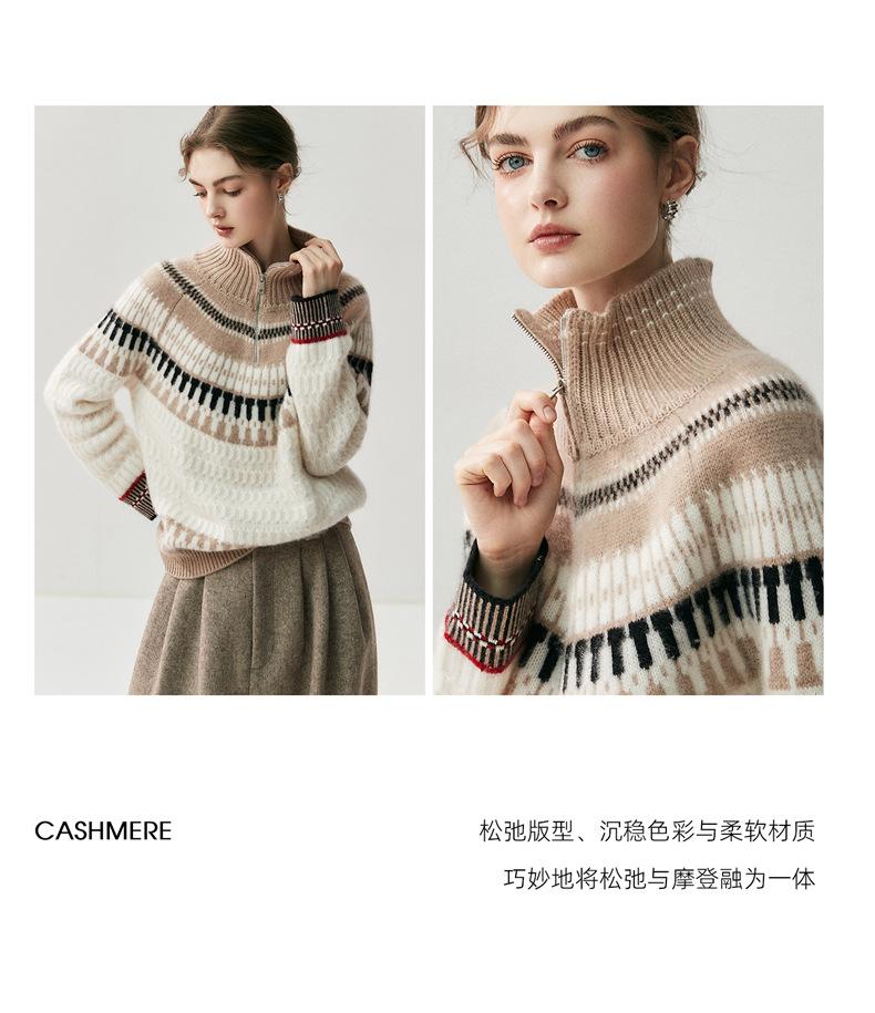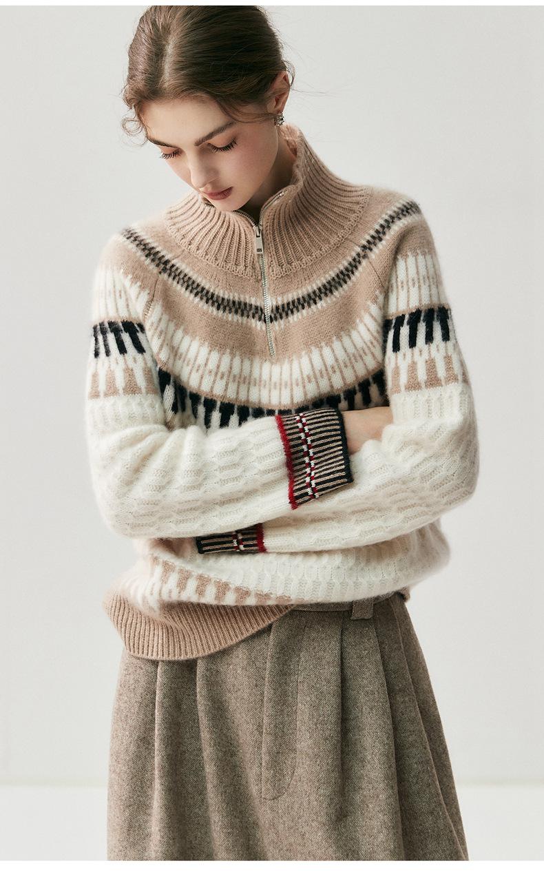 550g~Suéter de Cachemira Jacquard Temperamento Suéter Grueso Holgado para Mujer con Media Cremallera 2025 Otoño/Invierno Nuevo Suéter Tejido