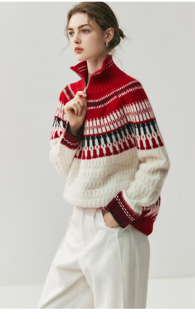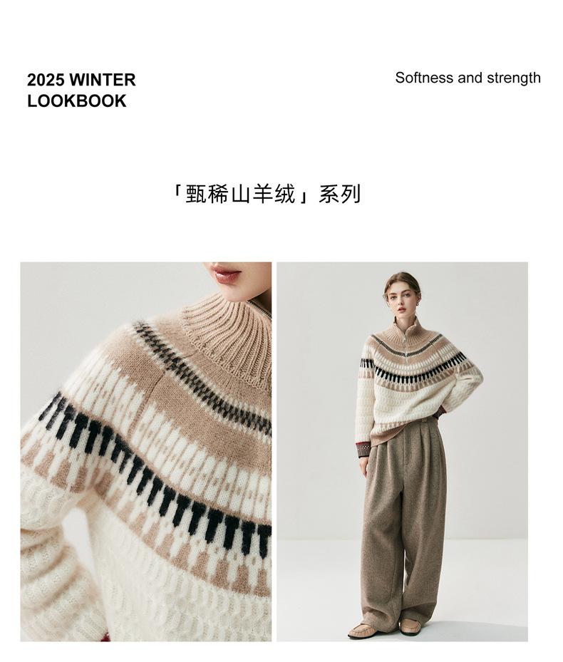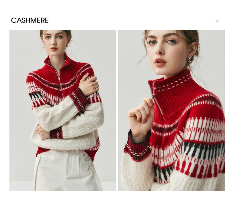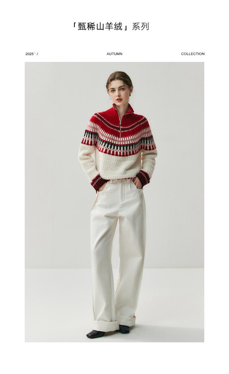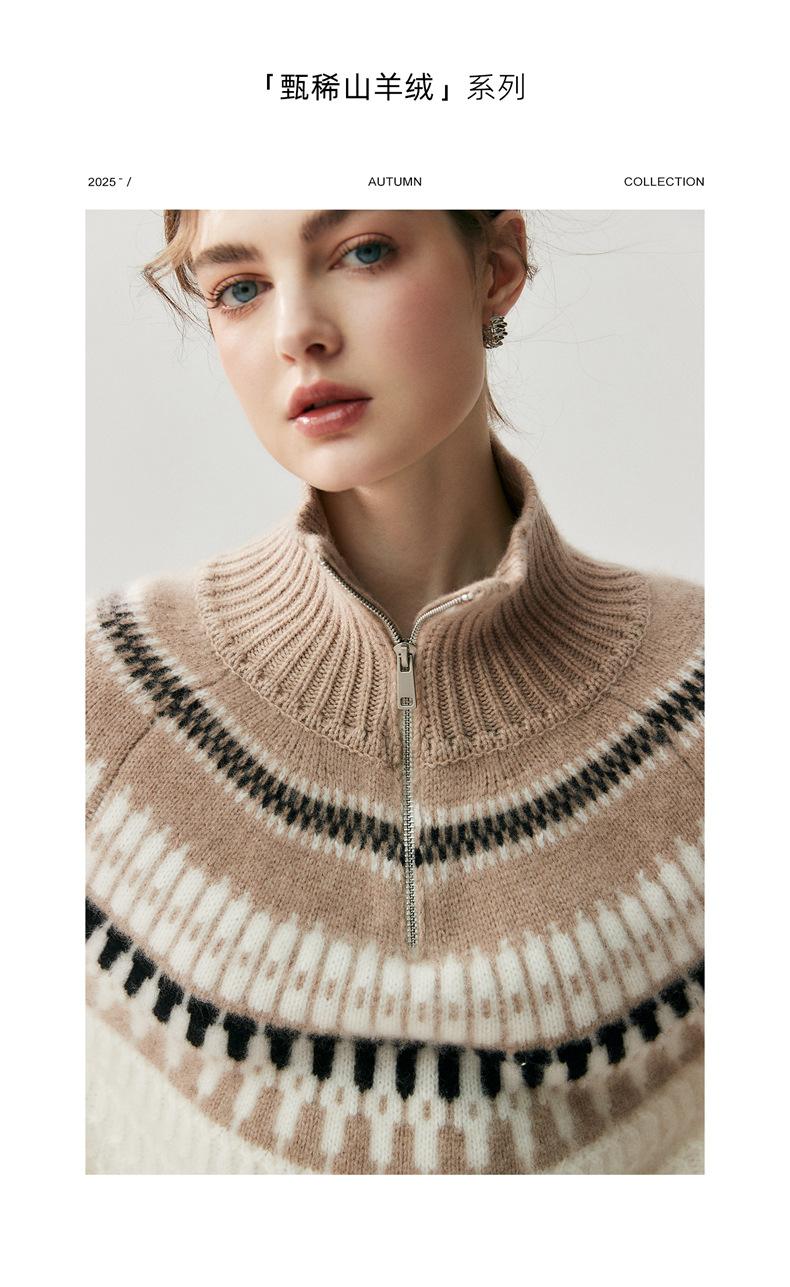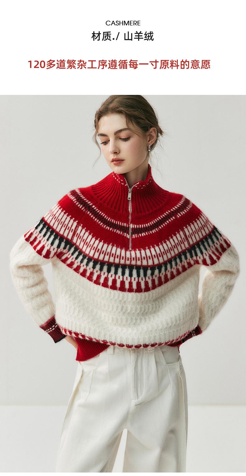 550g~Suéter de Cachemira Jacquard Temperamento Suéter Grueso Holgado para Mujer con Media Cremallera 2025 Otoño/Invierno Nuevo Suéter Tejido