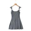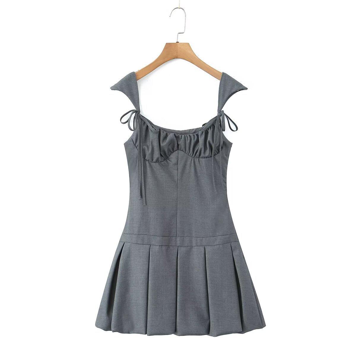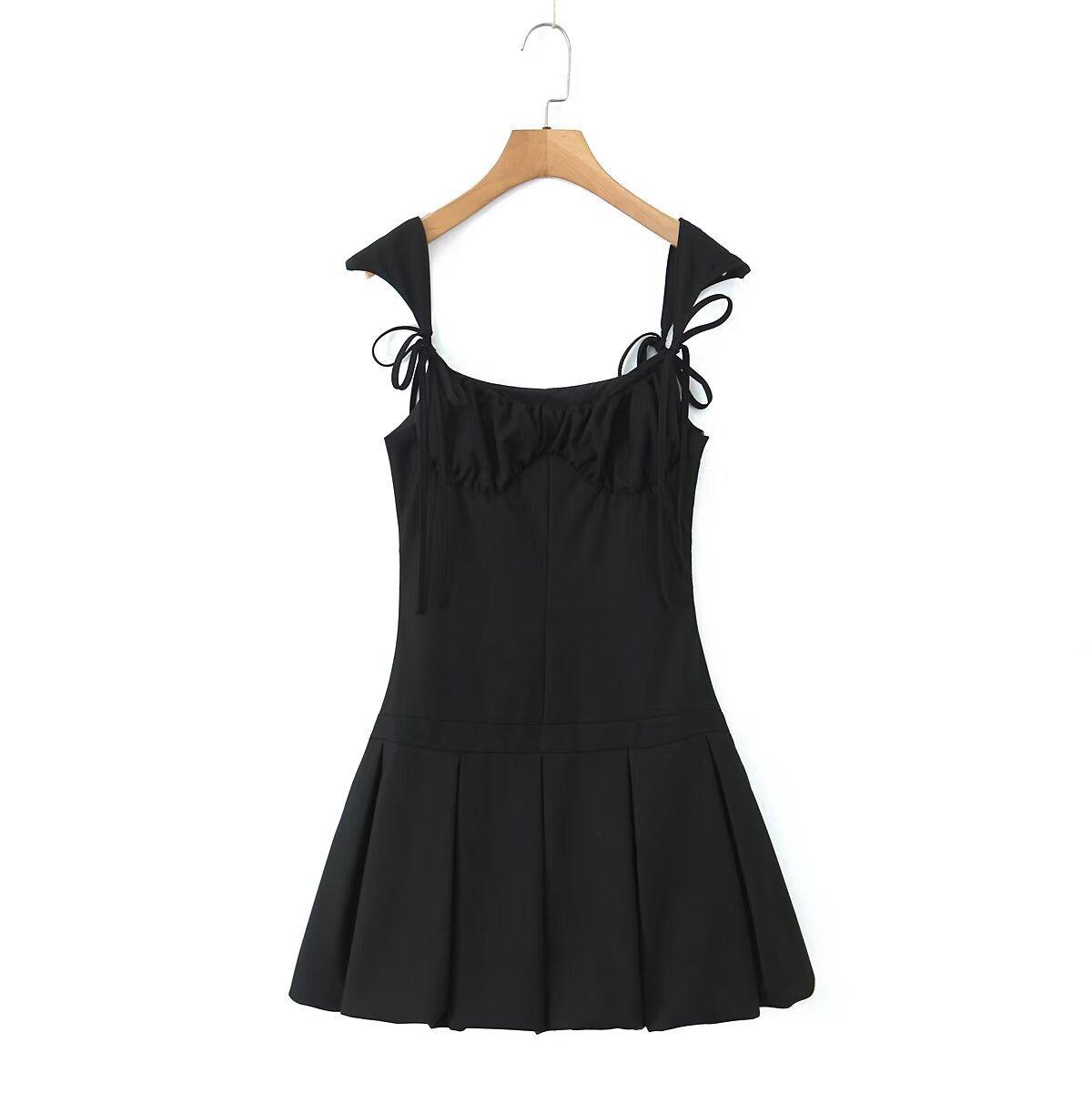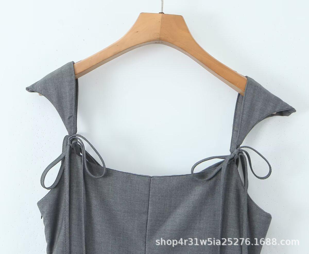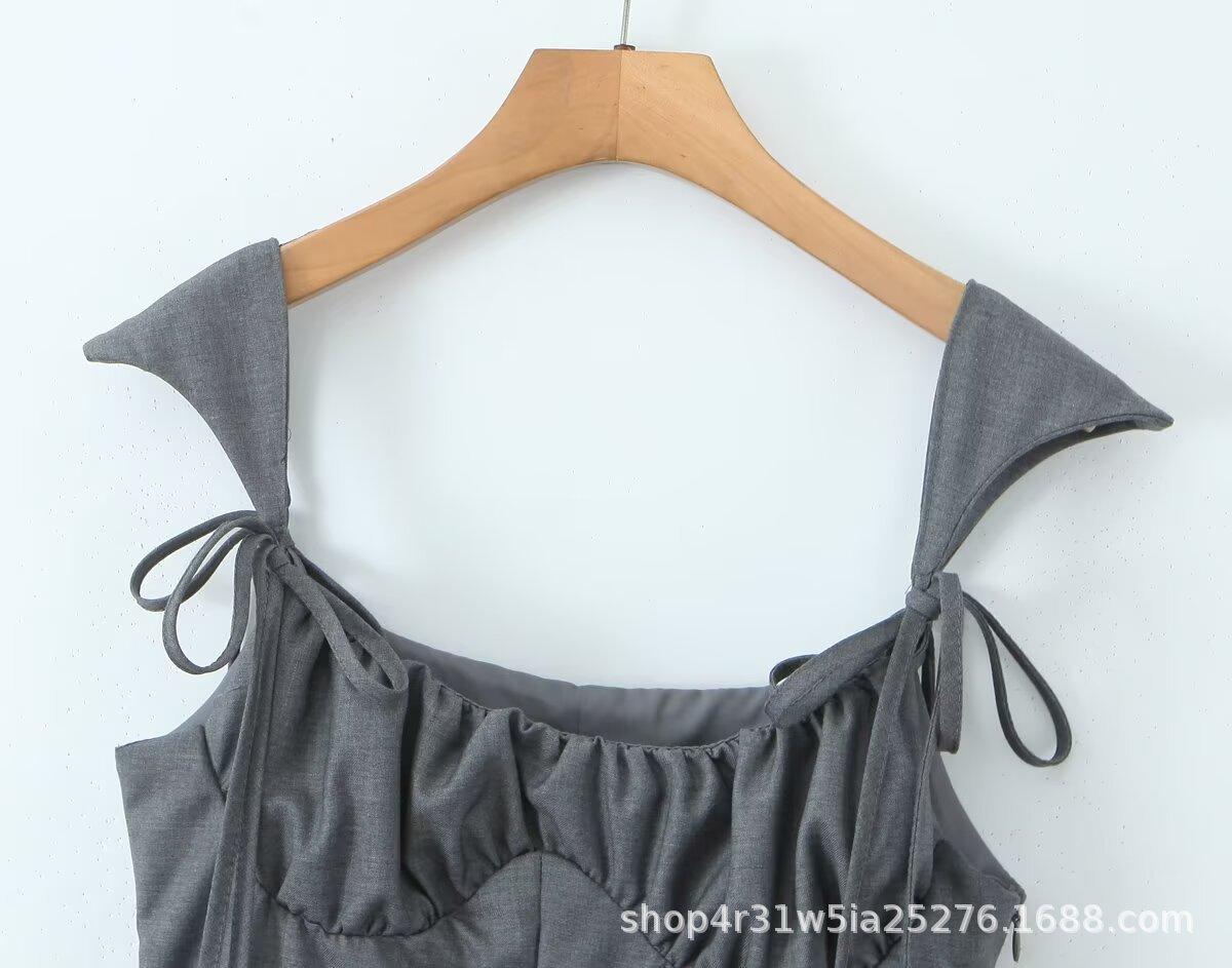 Moda Europea y Americana 2025 Nuevo Verano para Mujer Sexy Chica Caliente Vestido de Tirantes con Cinturón de Flor de Capullo