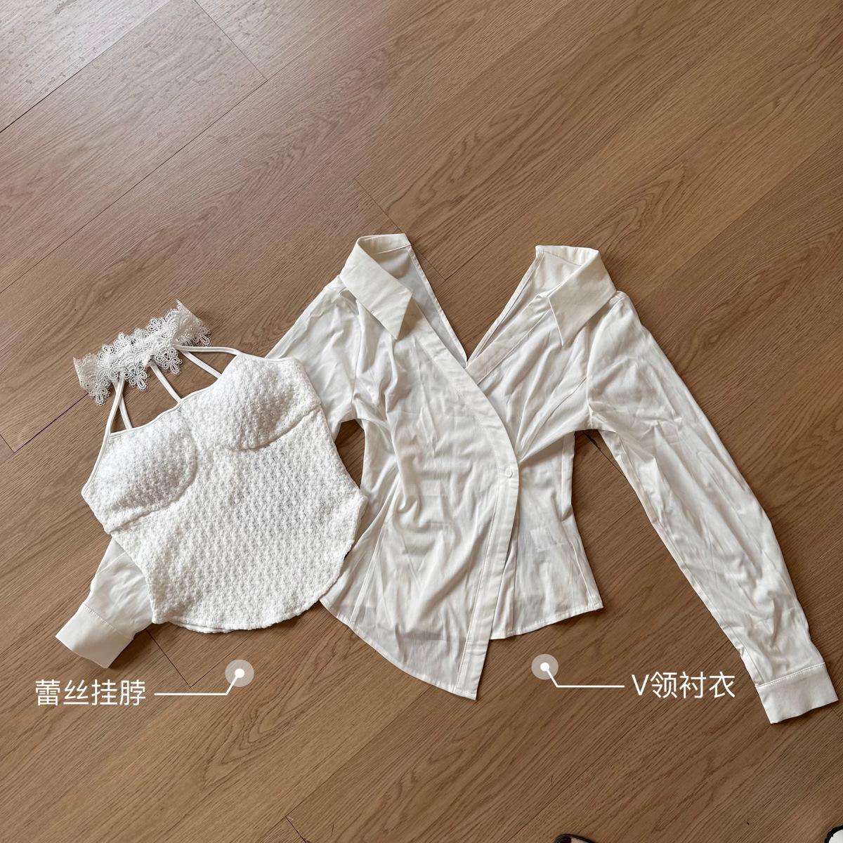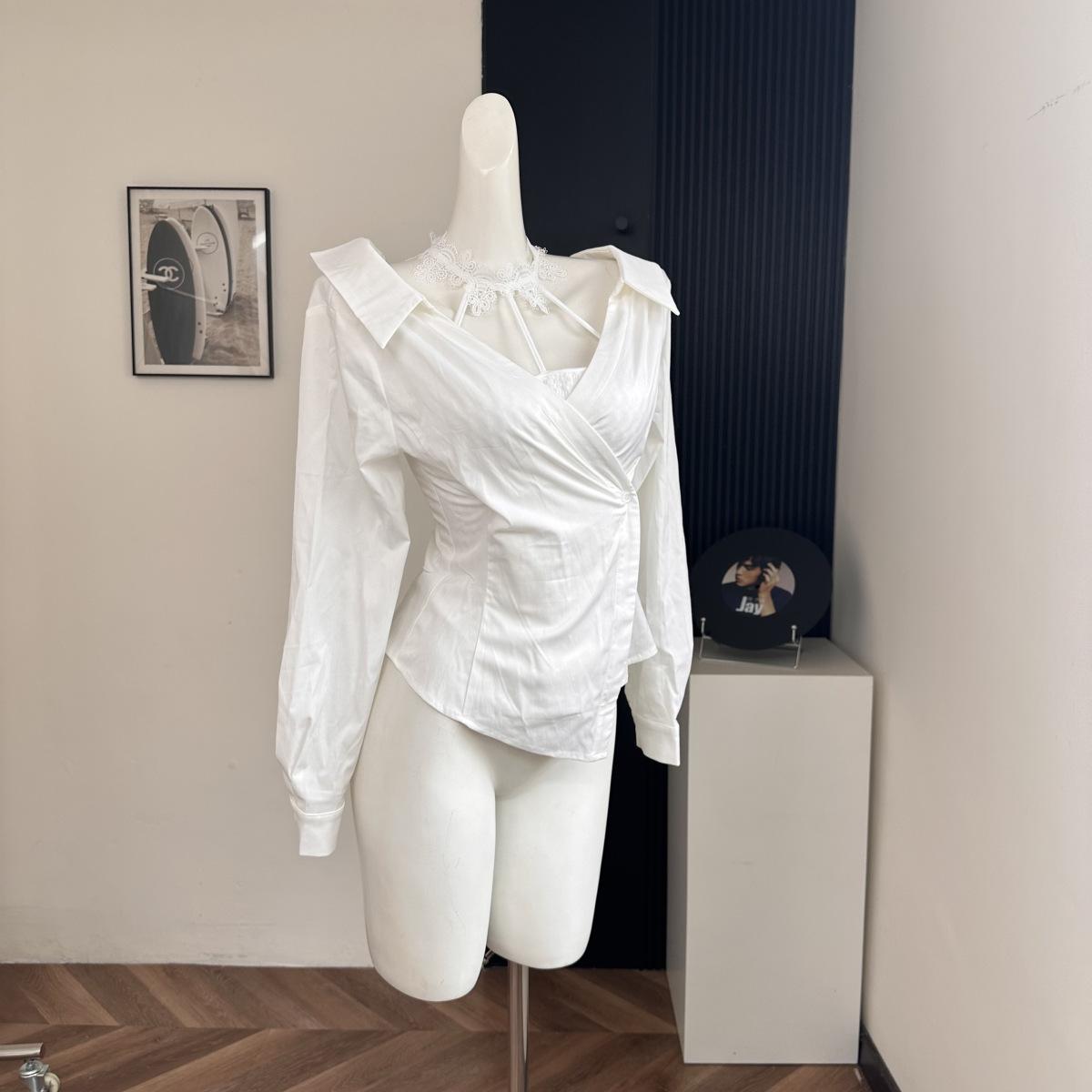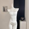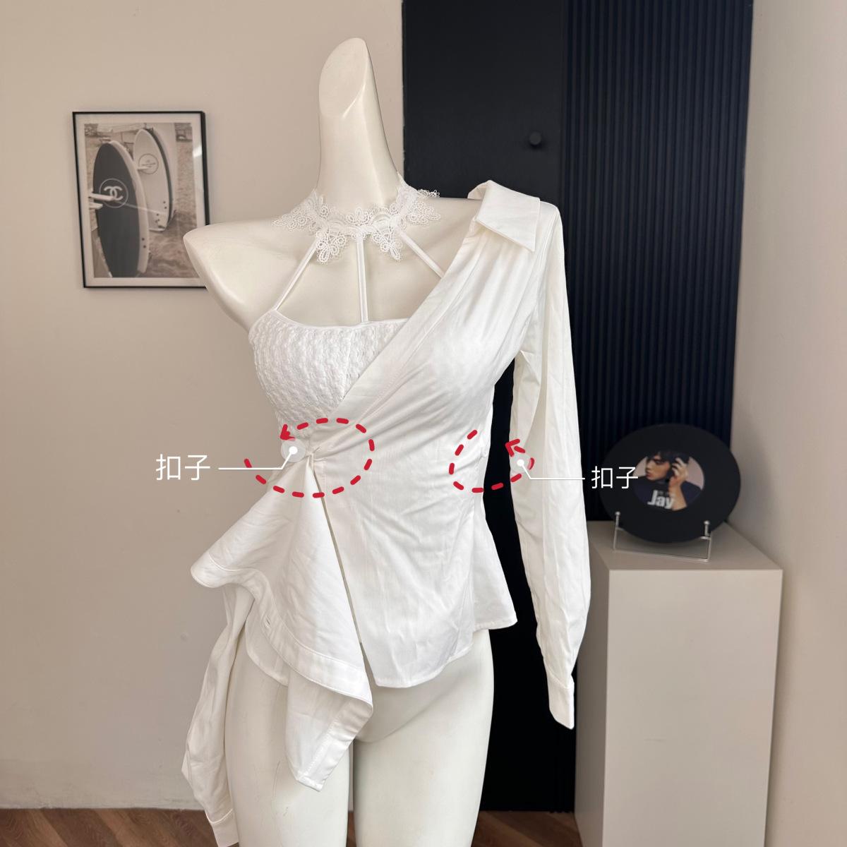 Top halter blanco con hombros descubiertos para mujer primavera y otoño 2025 estilo princesa de un hombro camisa de temperamento conjunto de dos piezas en capas para mujer