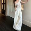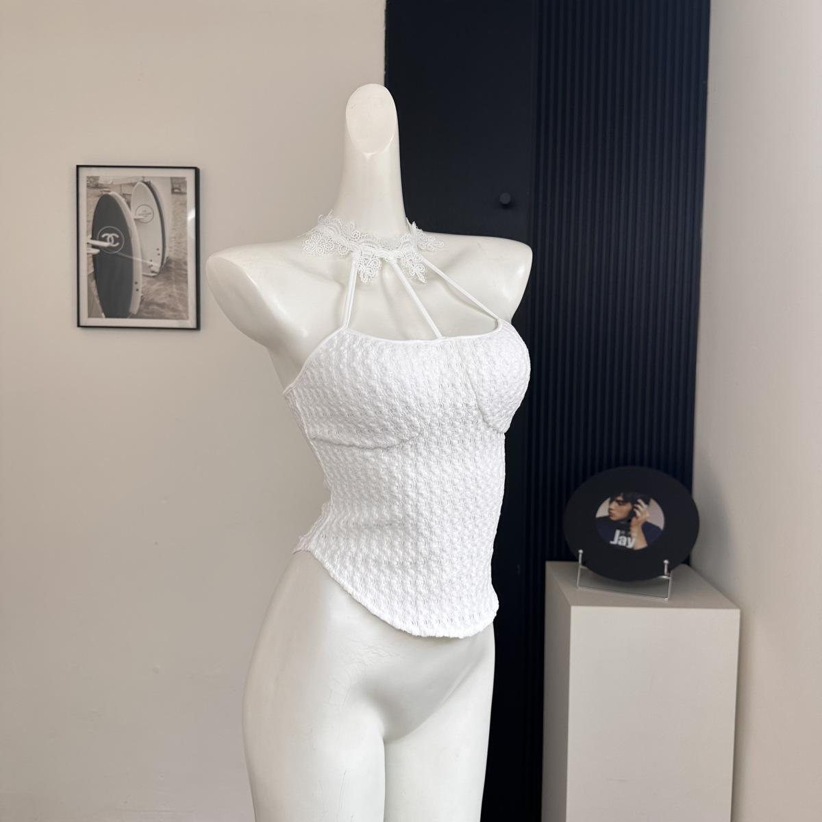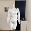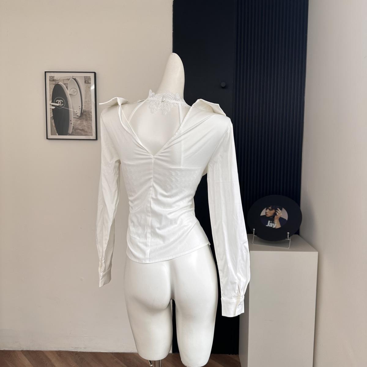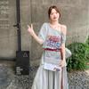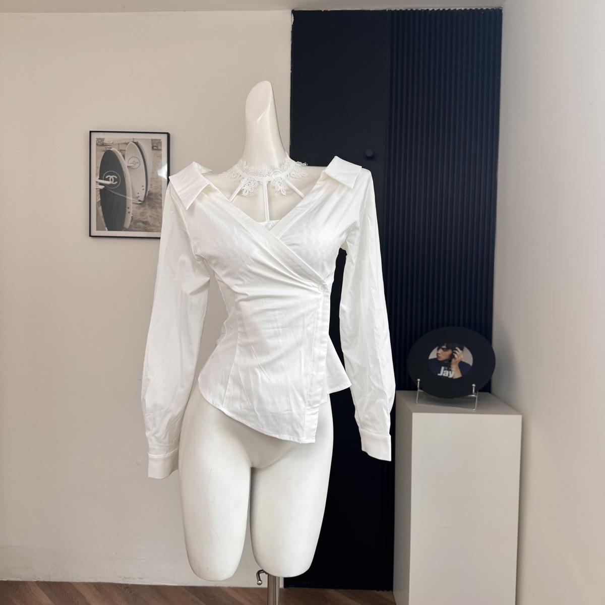 Top halter blanco con hombros descubiertos para mujer primavera y otoño 2025 estilo princesa de un hombro camisa de temperamento conjunto de dos piezas en capas para mujer
