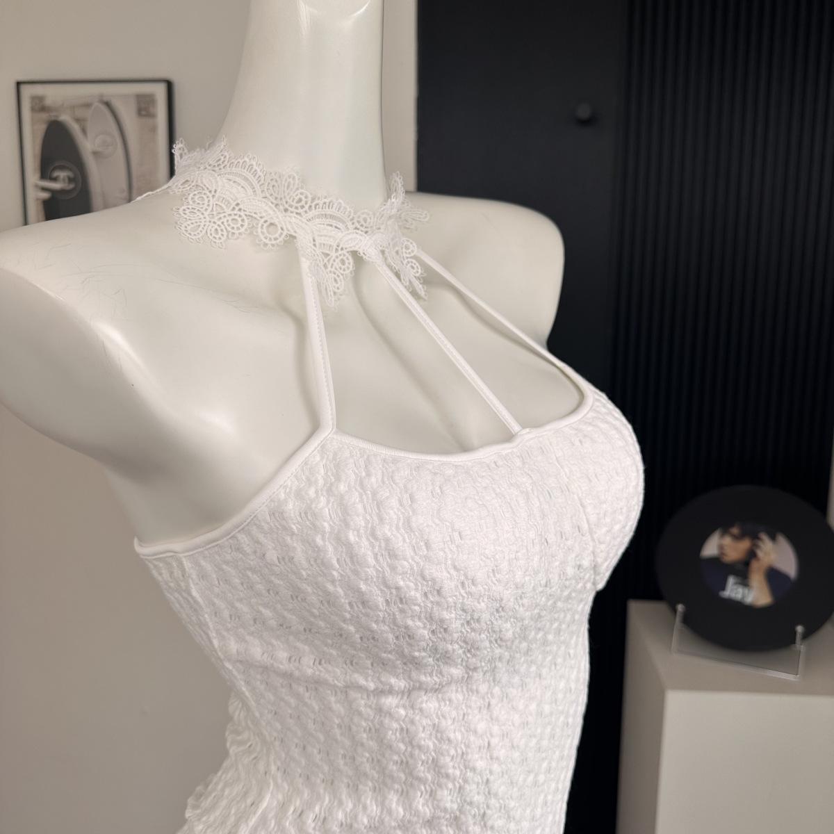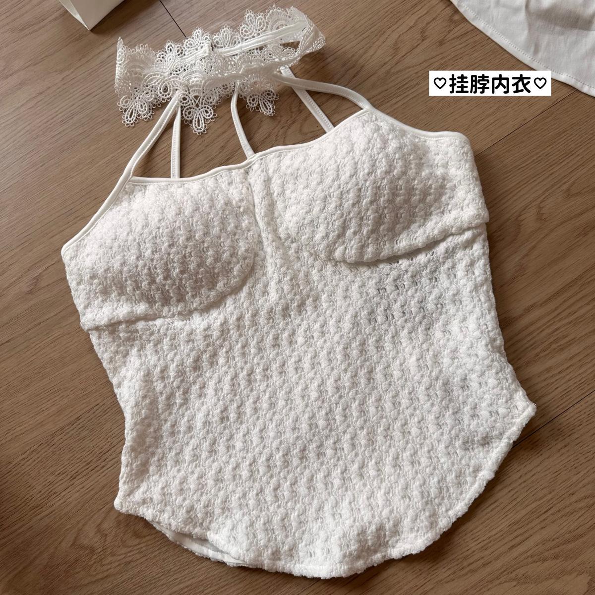 Off-white suspenders, off-white shirt, Off-white shirt + off-white camisole