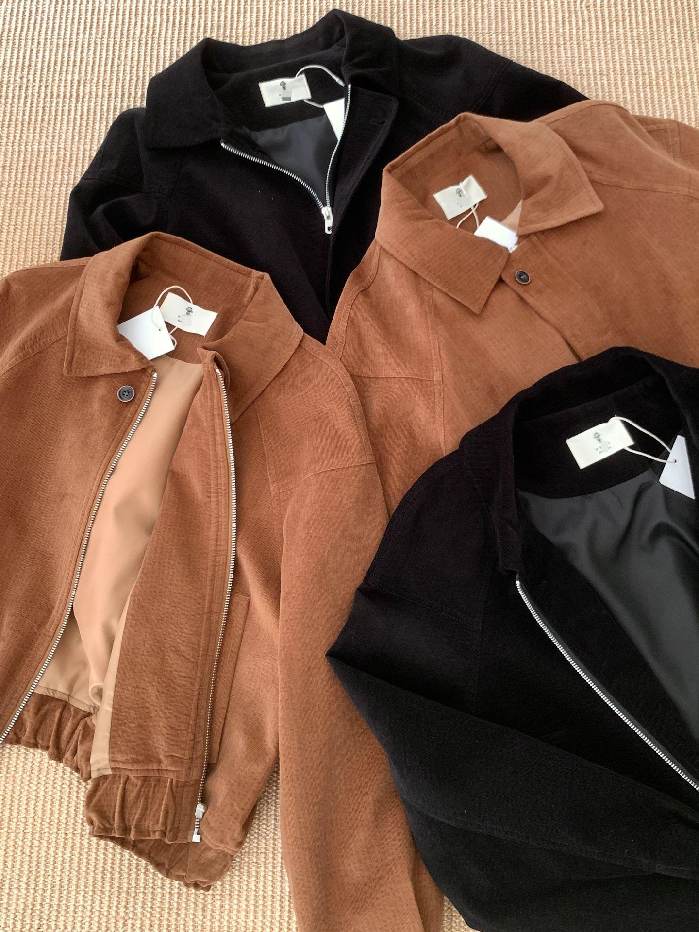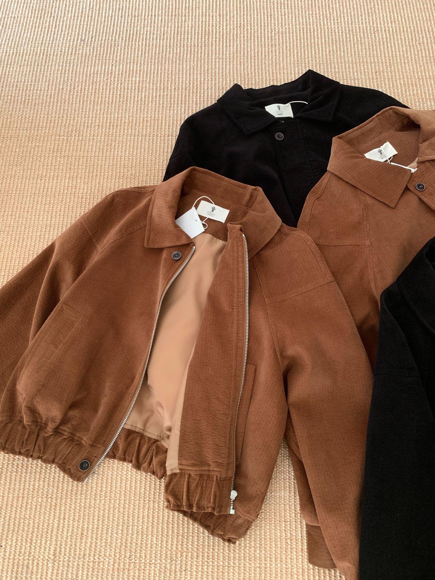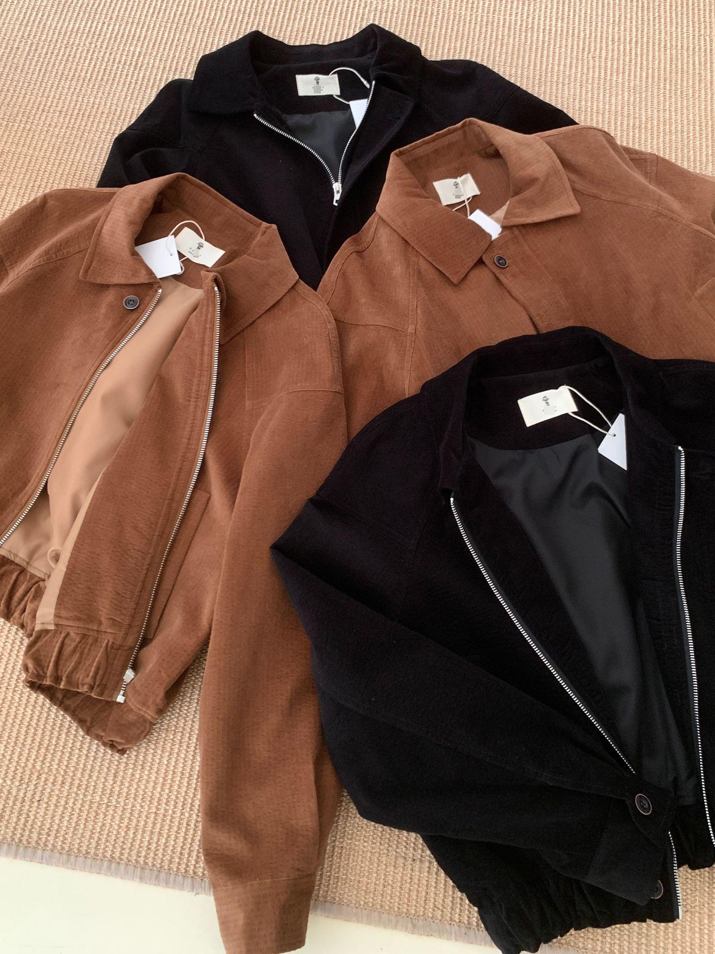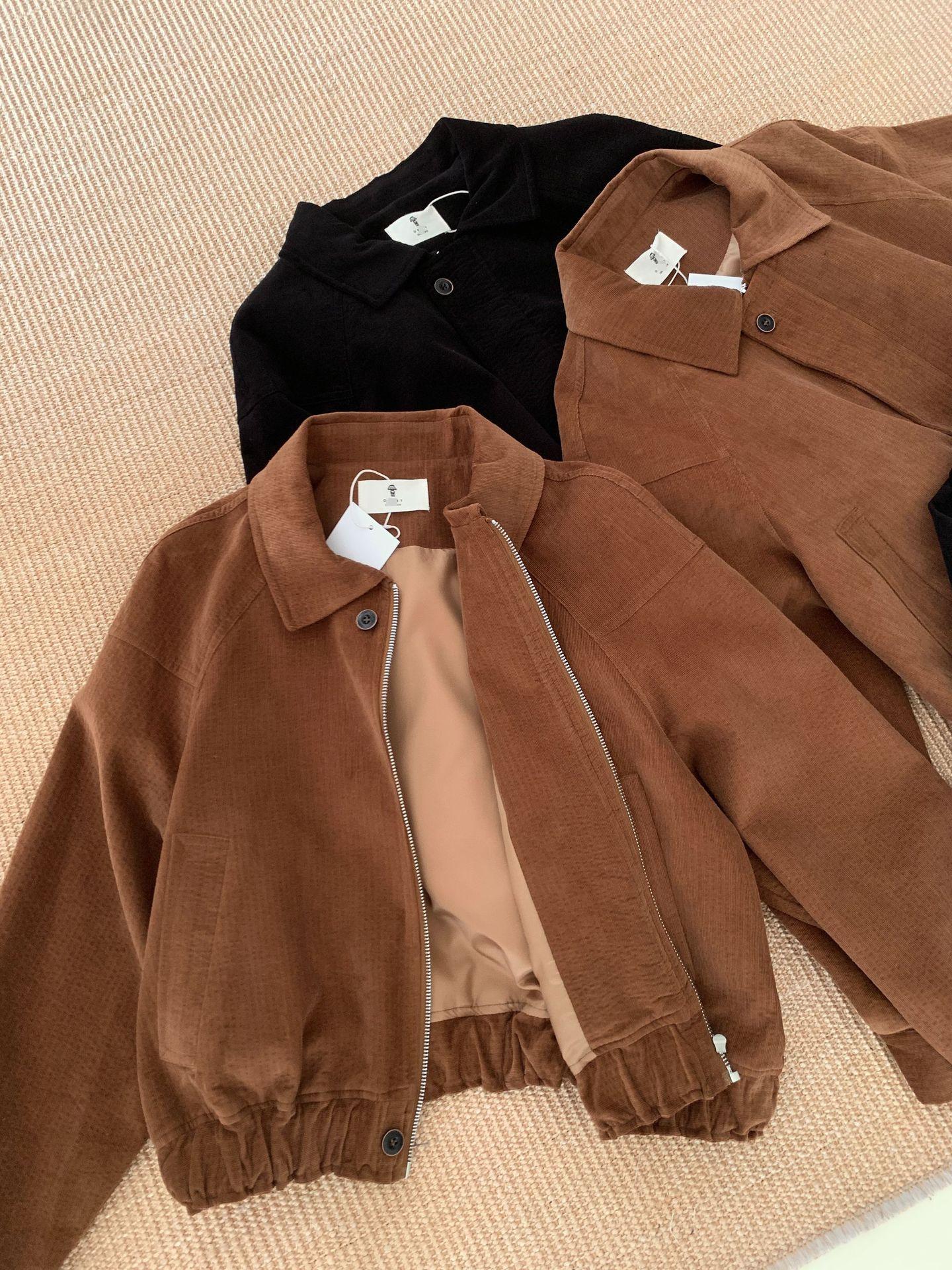 En stock Otoño 2025 Nuevo Coreano Dongdaemun OB*ET Retro Solapa Cremallera Chaqueta de Pana Abrigo Mujer