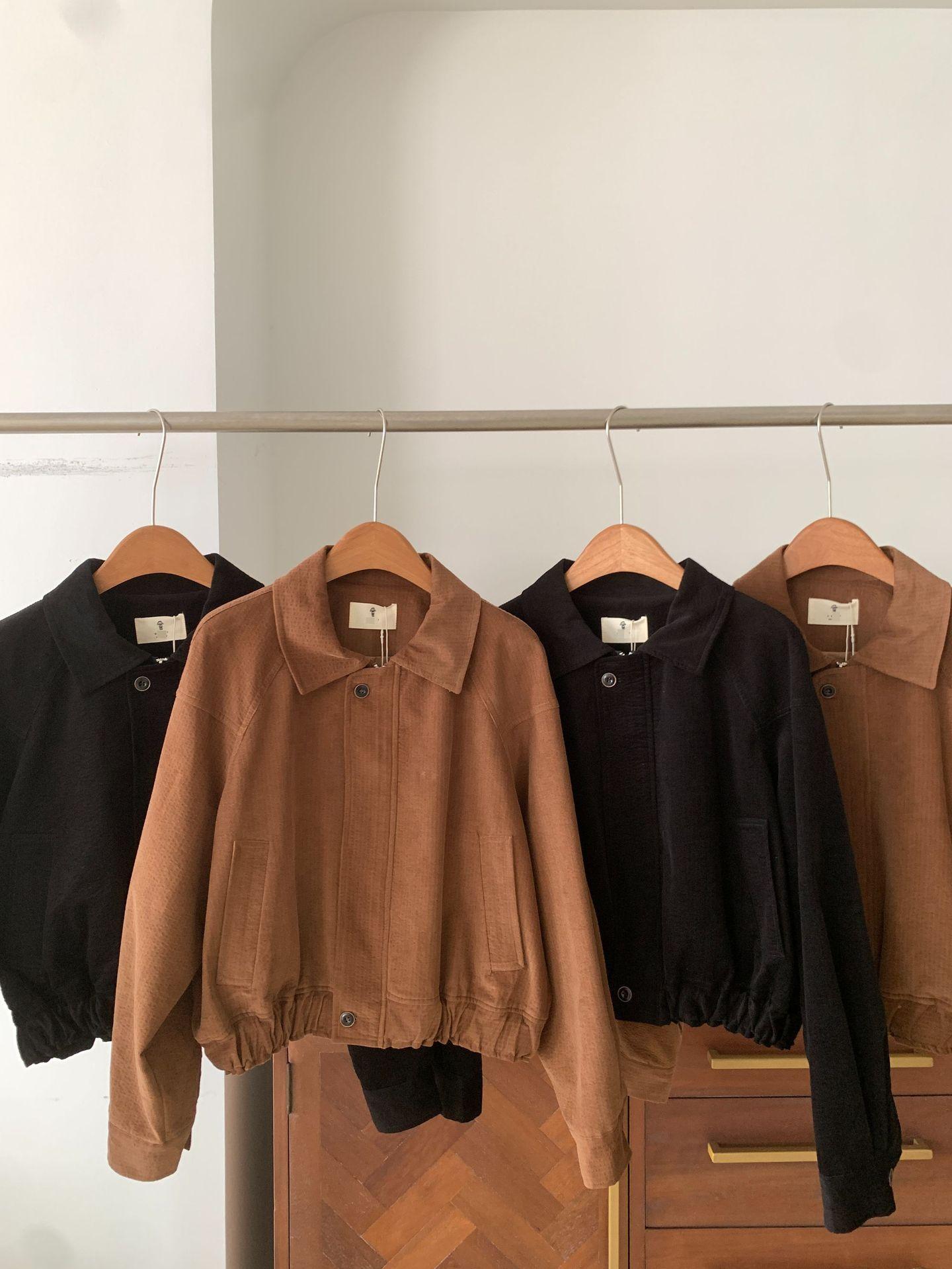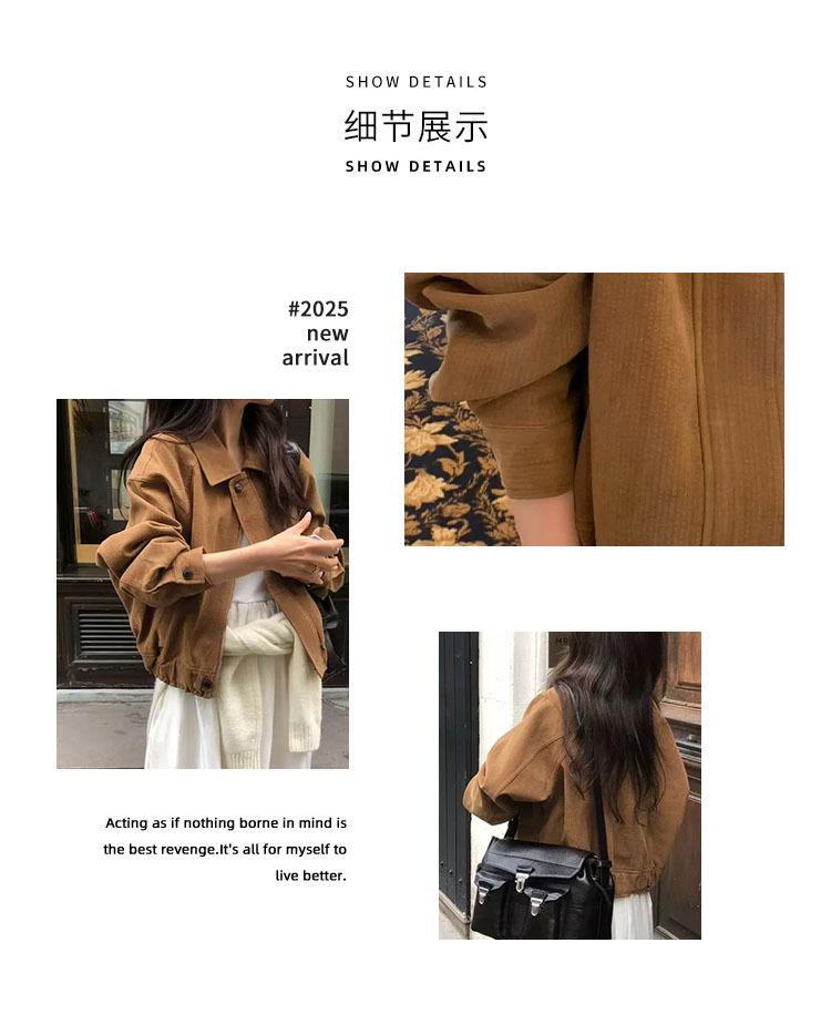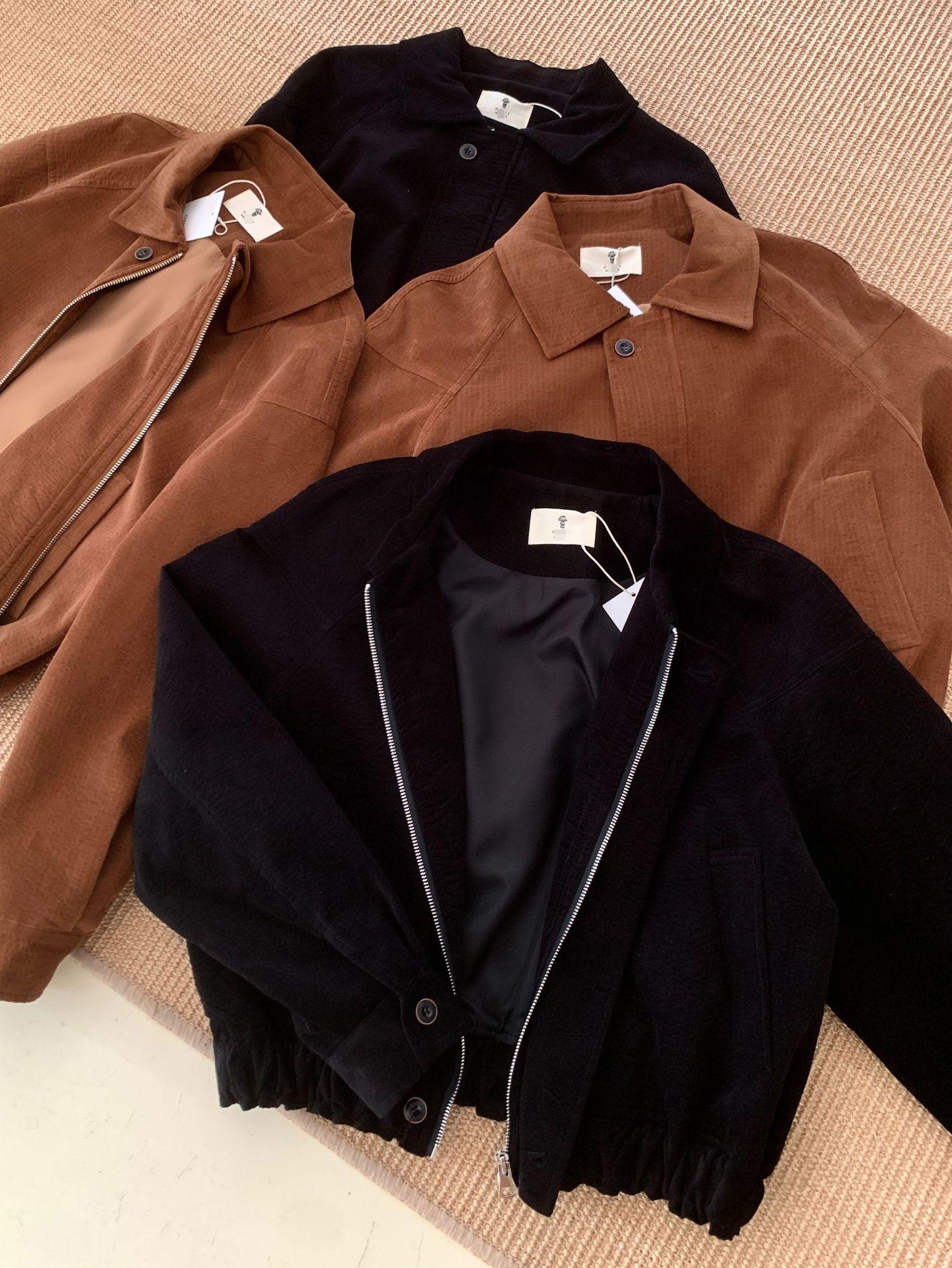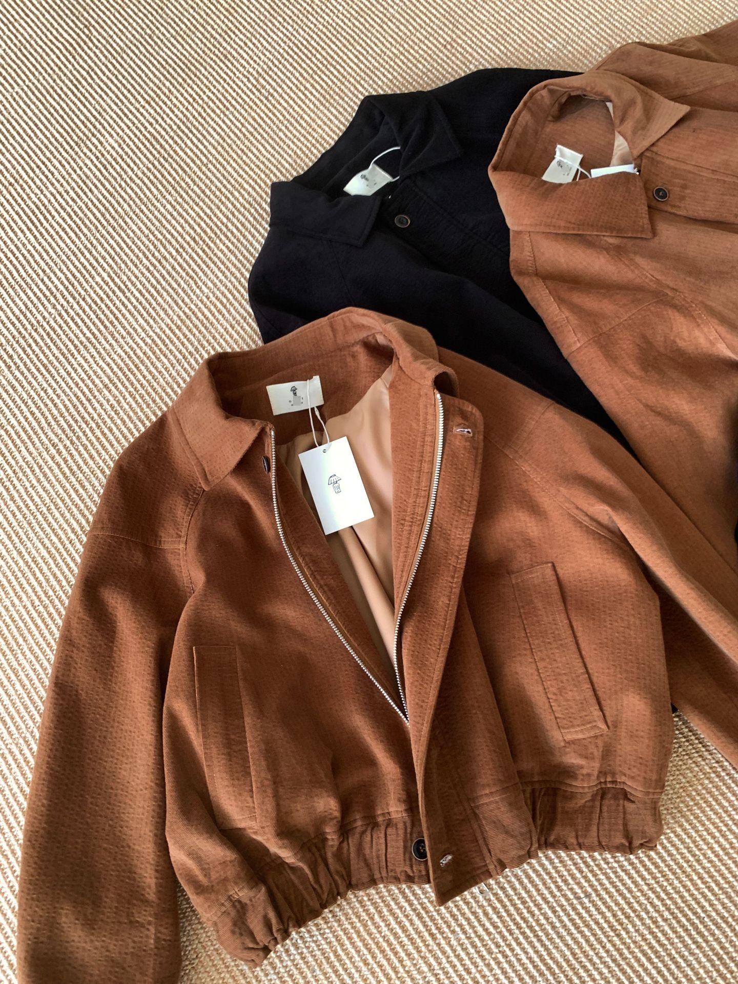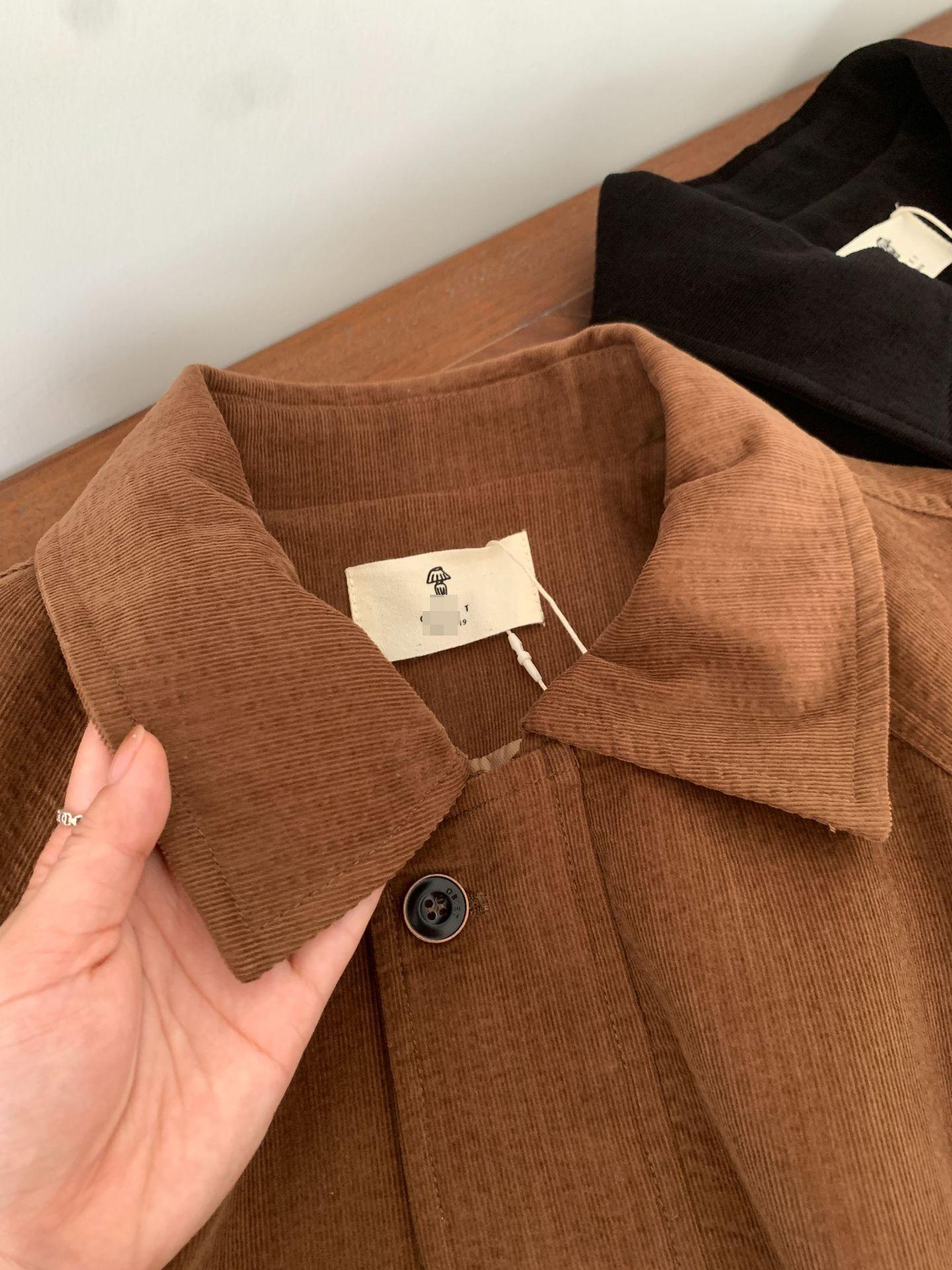 En stock Otoño 2025 Nuevo Coreano Dongdaemun OB*ET Retro Solapa Cremallera Chaqueta de Pana Abrigo Mujer