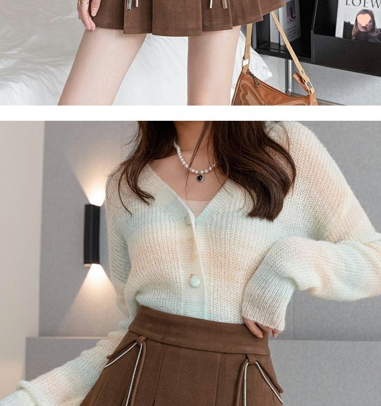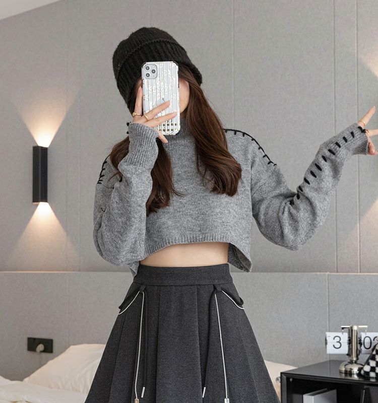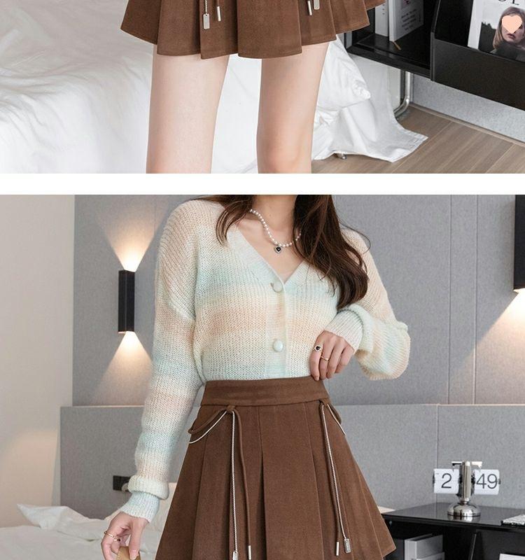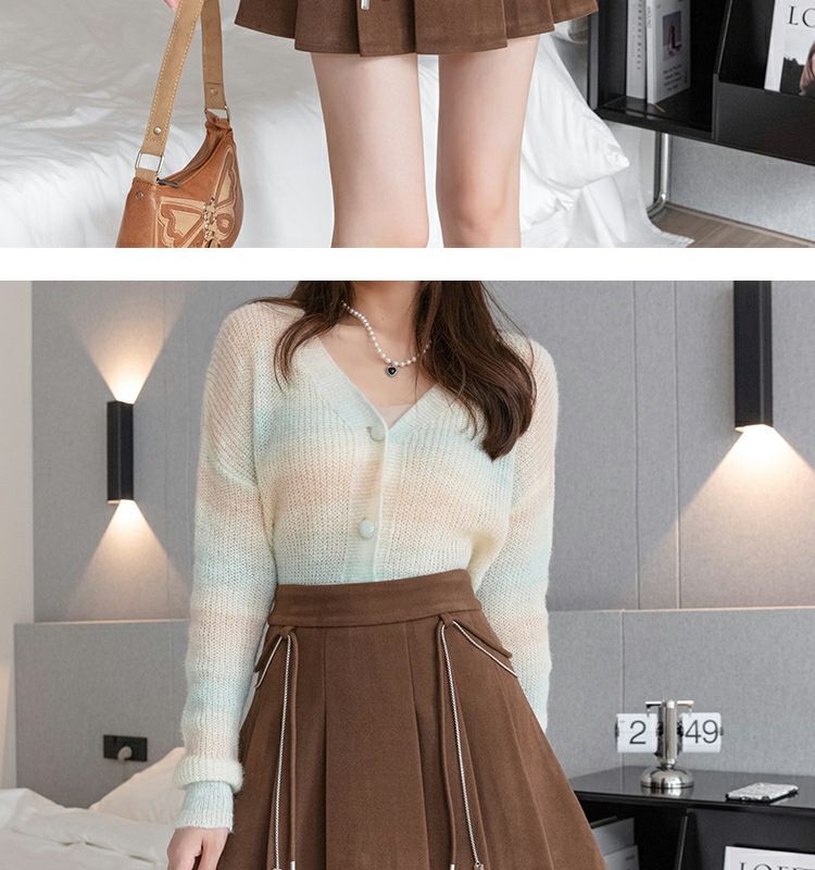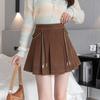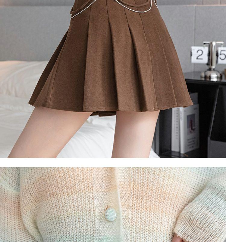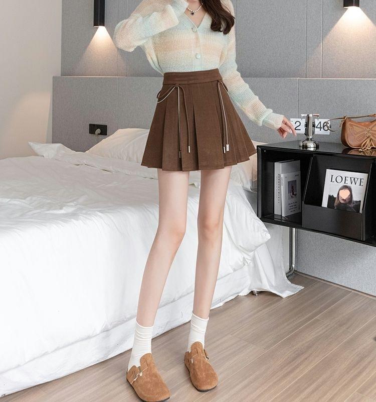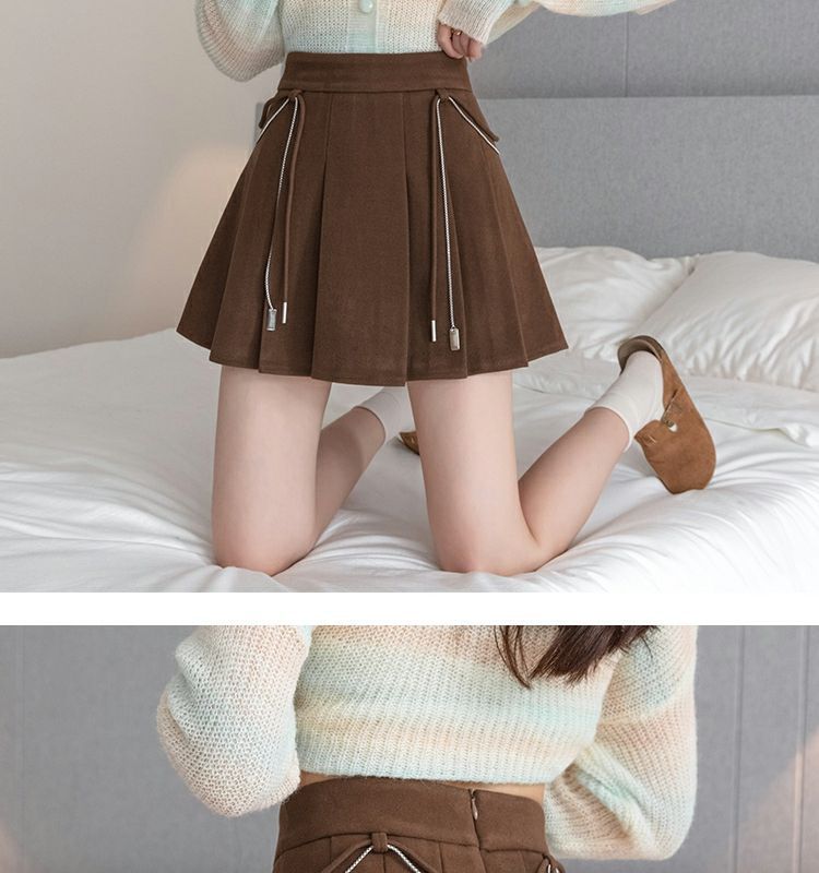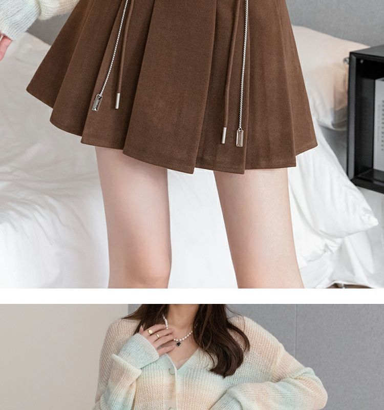 Falda Plisada Gruesa Gris Oscuro para Mujer Primavera y Verano Cadena Cintura Alta Falda Línea A Falda Pequeña Ajustada de Lana