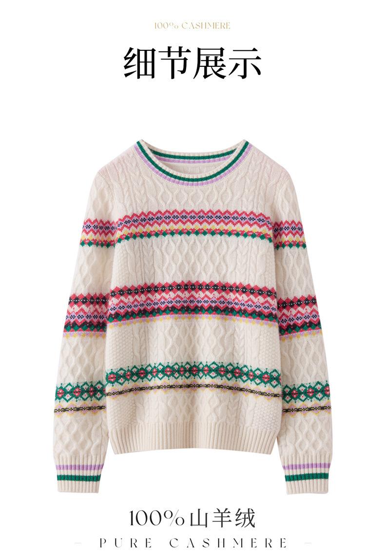 Suéter de Cachemira para Mujer 100% Cachemira Pura Suéter Jersey Otoño e Invierno Nuevo Artesanía de Incrustación Personalidad Estilo de Moda Camisa de Manga Larga