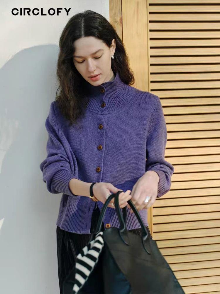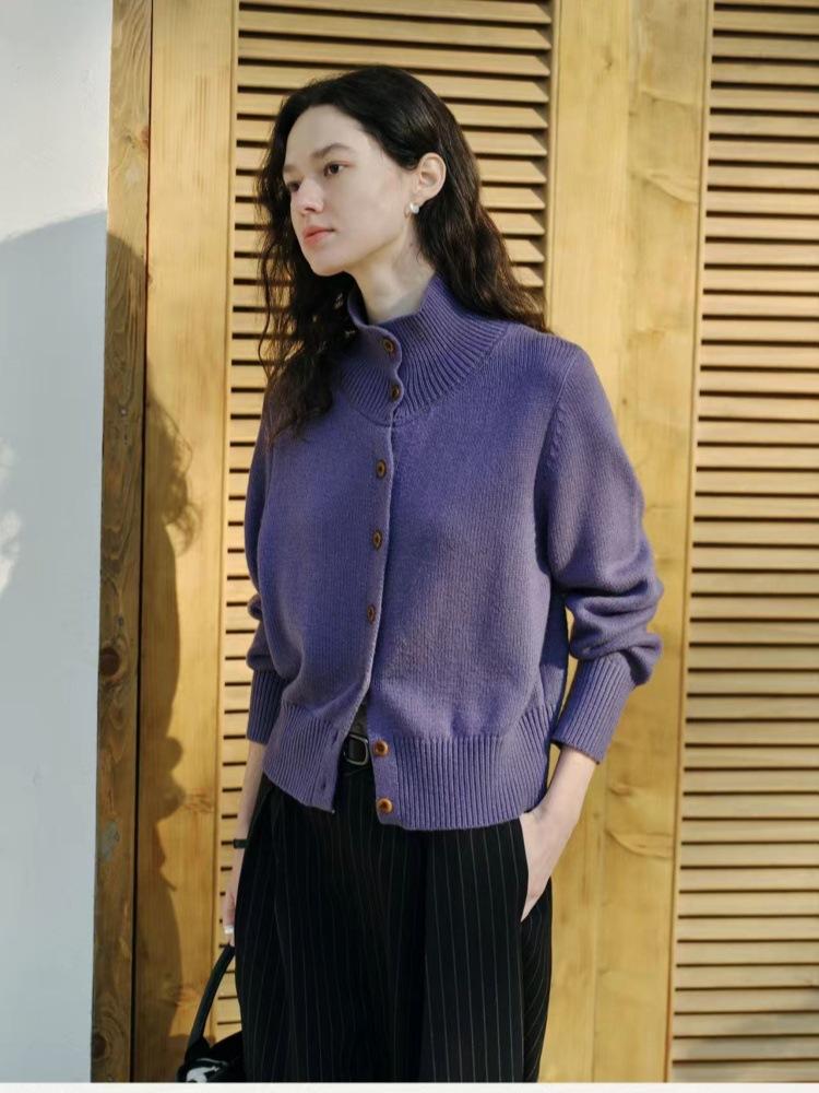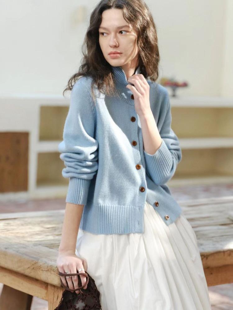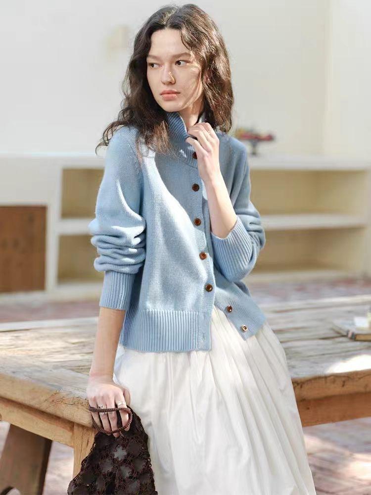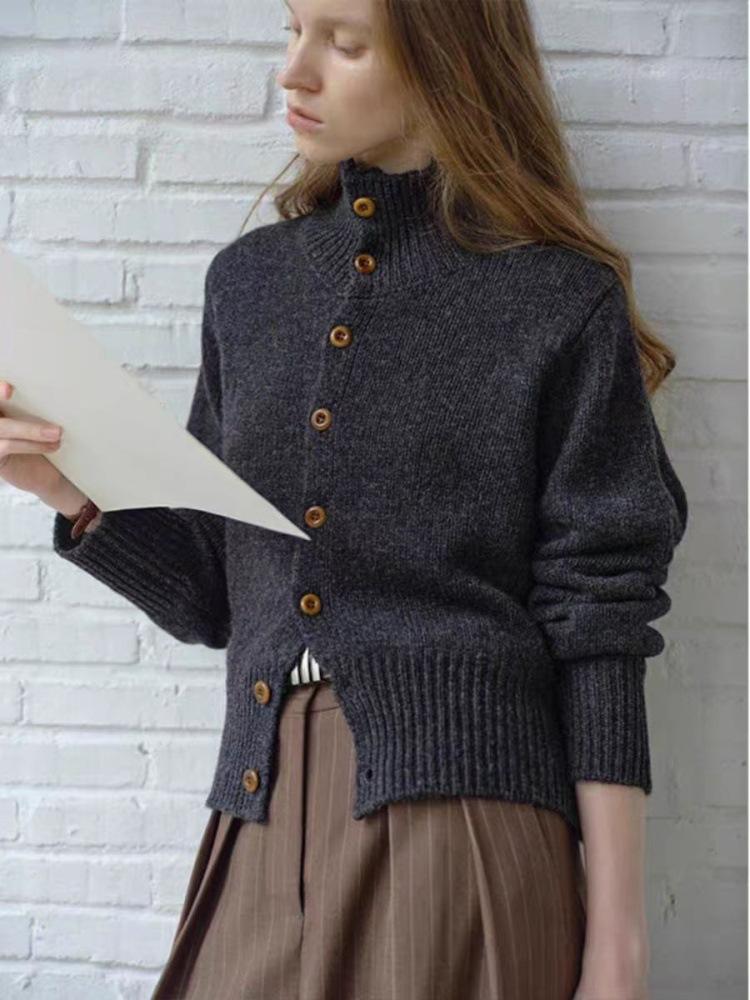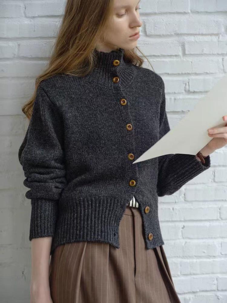 Suéter de Lana de Cuello Alto de Lujo Ligero de Otoño e Invierno Abrigo Cárdigan para Mujer de Punto de Cachemira de Manga Larga Holgado Adelgazante Color Sólido