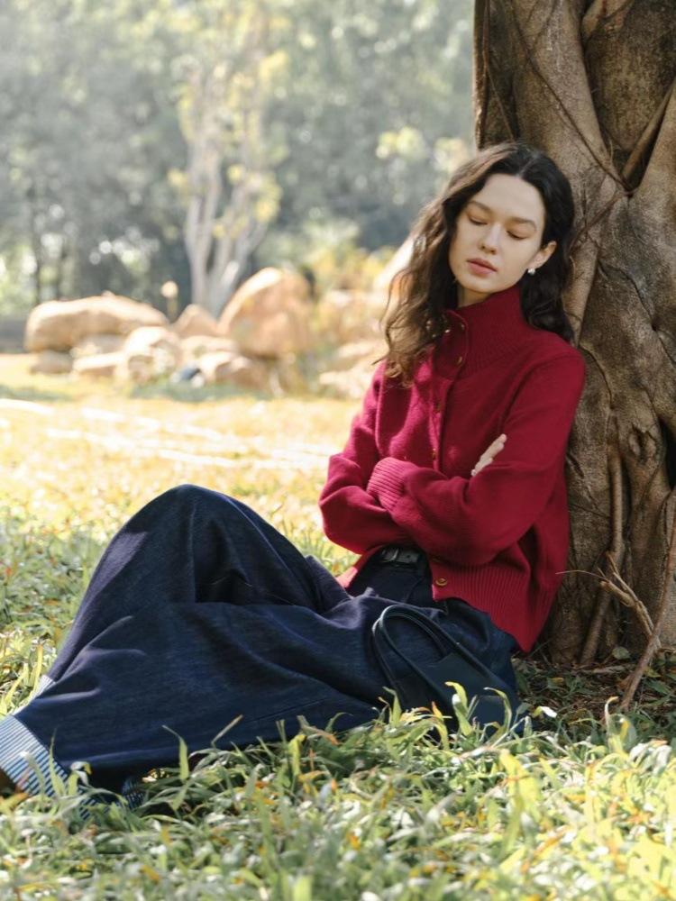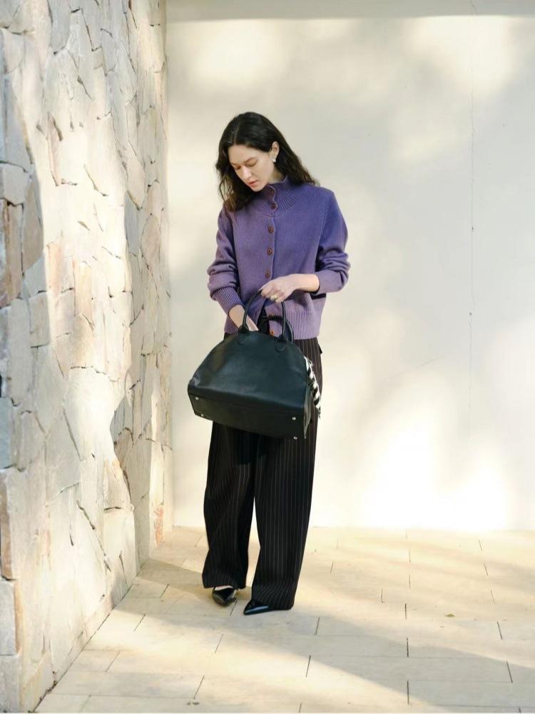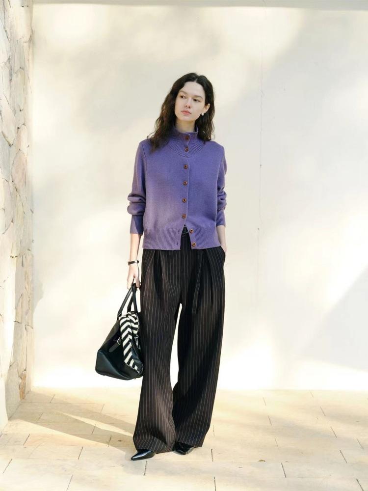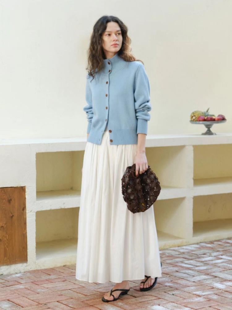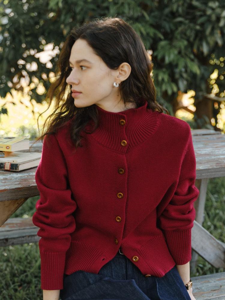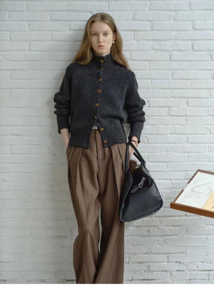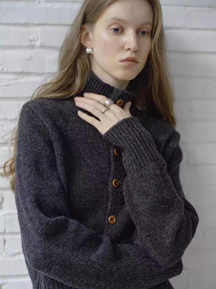 Suéter de Lana de Cuello Alto de Lujo Ligero de Otoño e Invierno Abrigo Cárdigan para Mujer de Punto de Cachemira de Manga Larga Holgado Adelgazante Color Sólido