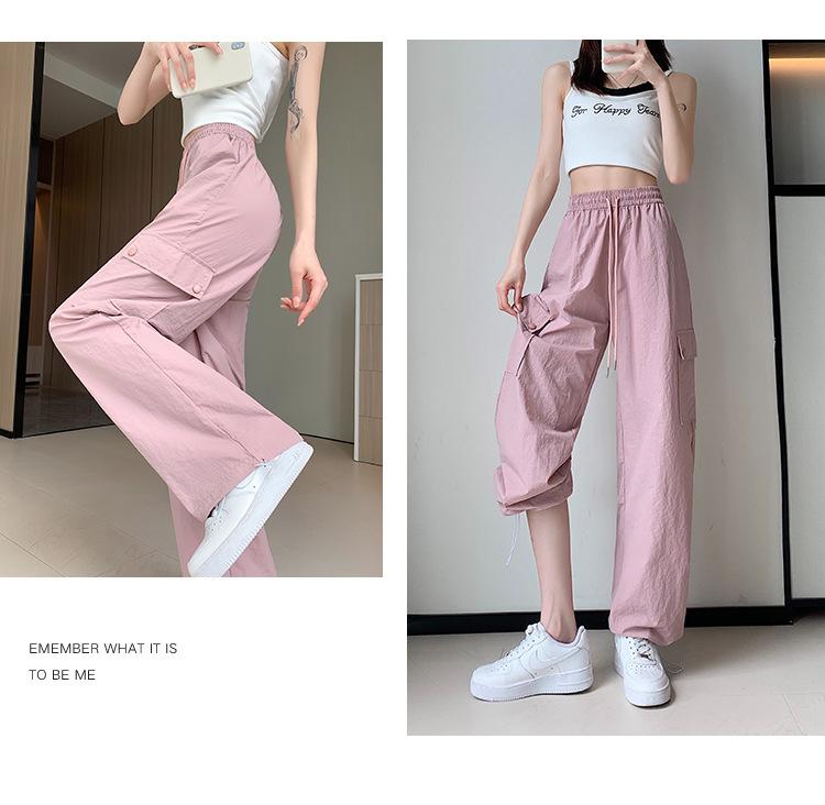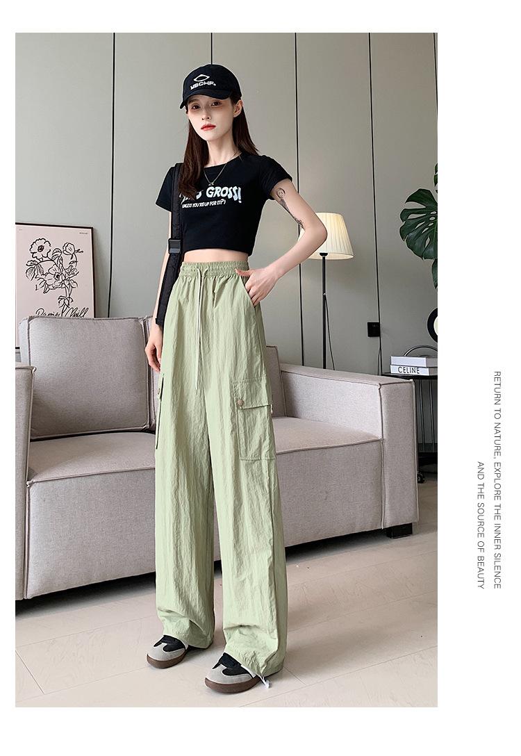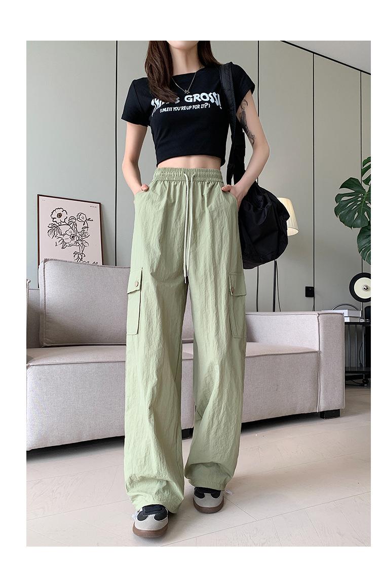 Compra Overol Verde para Mujer Otoño Nuevo Pantalones de Pierna Ancha de Cintura Alta Sueltos Casuales Adelgazantes Spice Girls Pantalones Deportivos Americanos de Secado Rápido al por mayor en Joom.pro