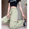 Overol Verde para Mujer Otoño Nuevo Pantalones de Pierna Ancha de Cintura Alta Sueltos Casuales Adelgazantes Spice Girls Pantalones Deportivos Americanos de Secado Rápido
